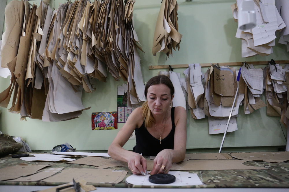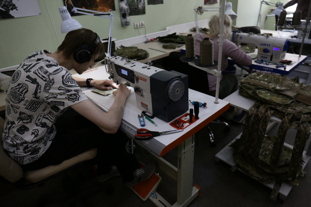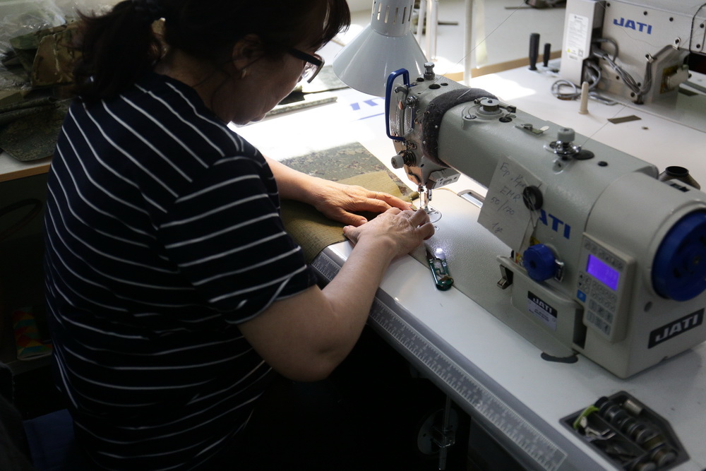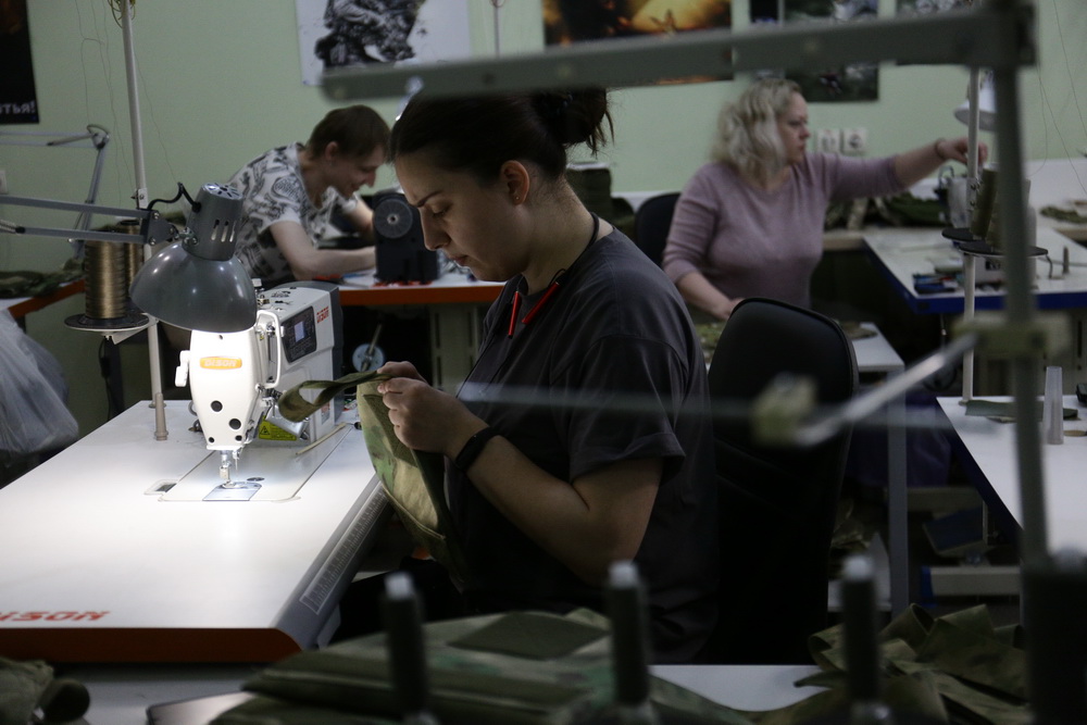 Небольшой швейный цех — строчат здесь не платья и не спецовки. Юлия Кондратенко готовит детали для боевой одежды. «Не каждая швея захочет, потому что это очень сложно», — сообщает специалист.
