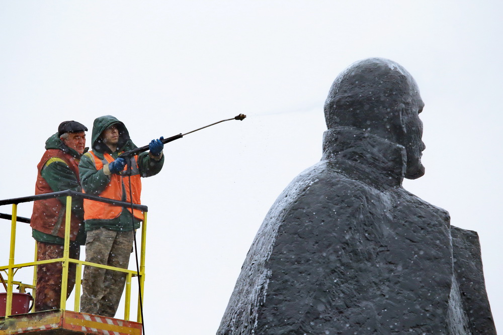 Бронзовое изваяние на главной площади города помыли, как и всегда, накануне дня рождения Ильича.