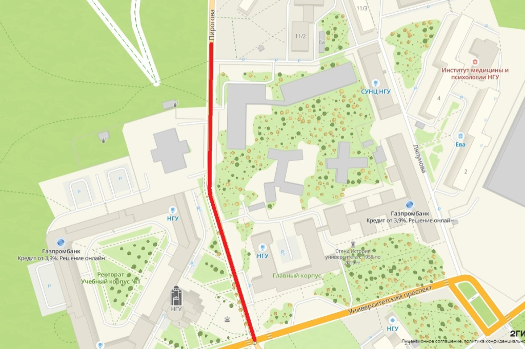 Проезд возле главного корпуса НГУ ограничат на месяц ради прокладки подземных коммуникаций. С 29 сентября до 29 октября транспорт не будут пускать на улицу Пирогова.