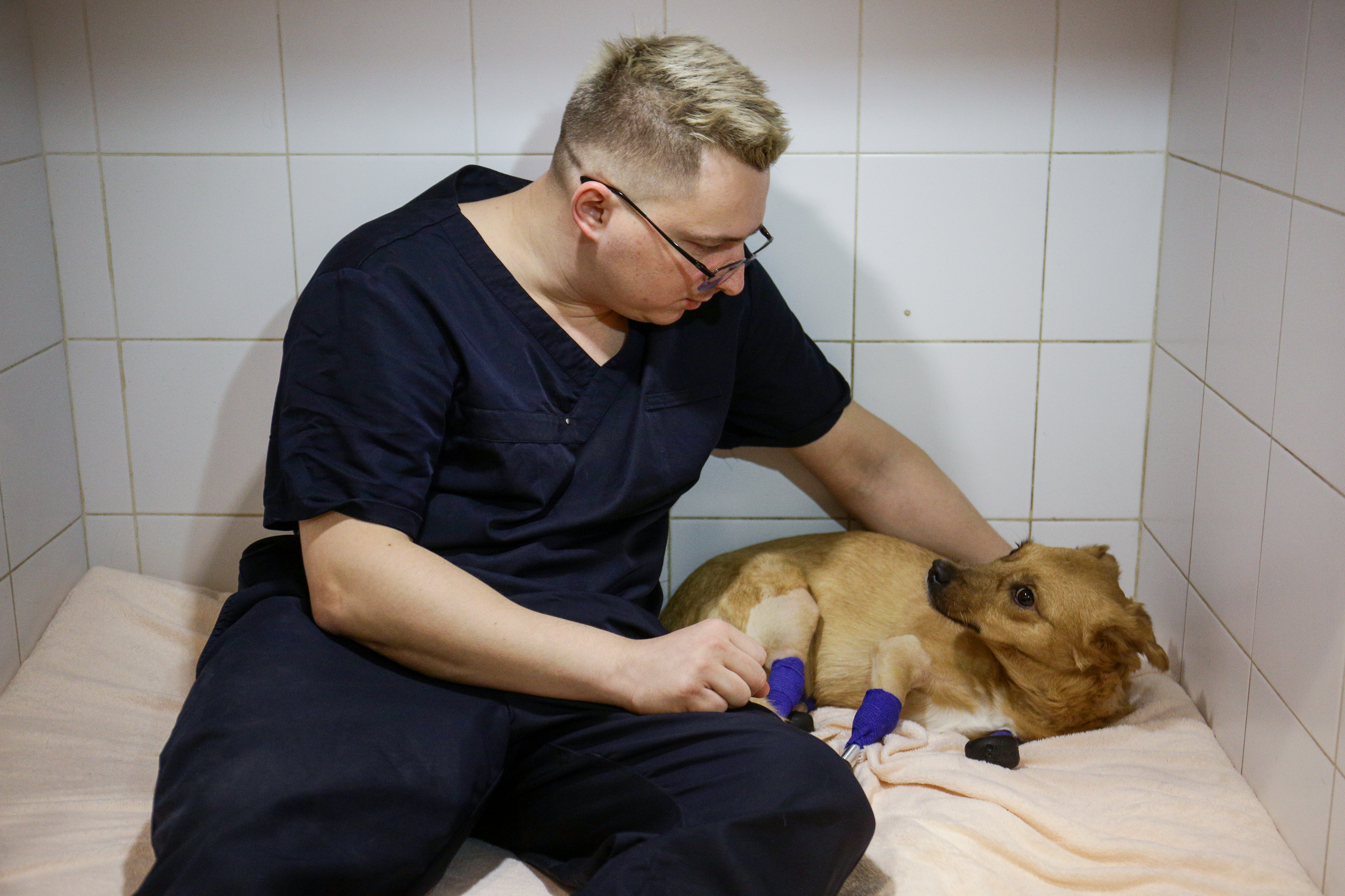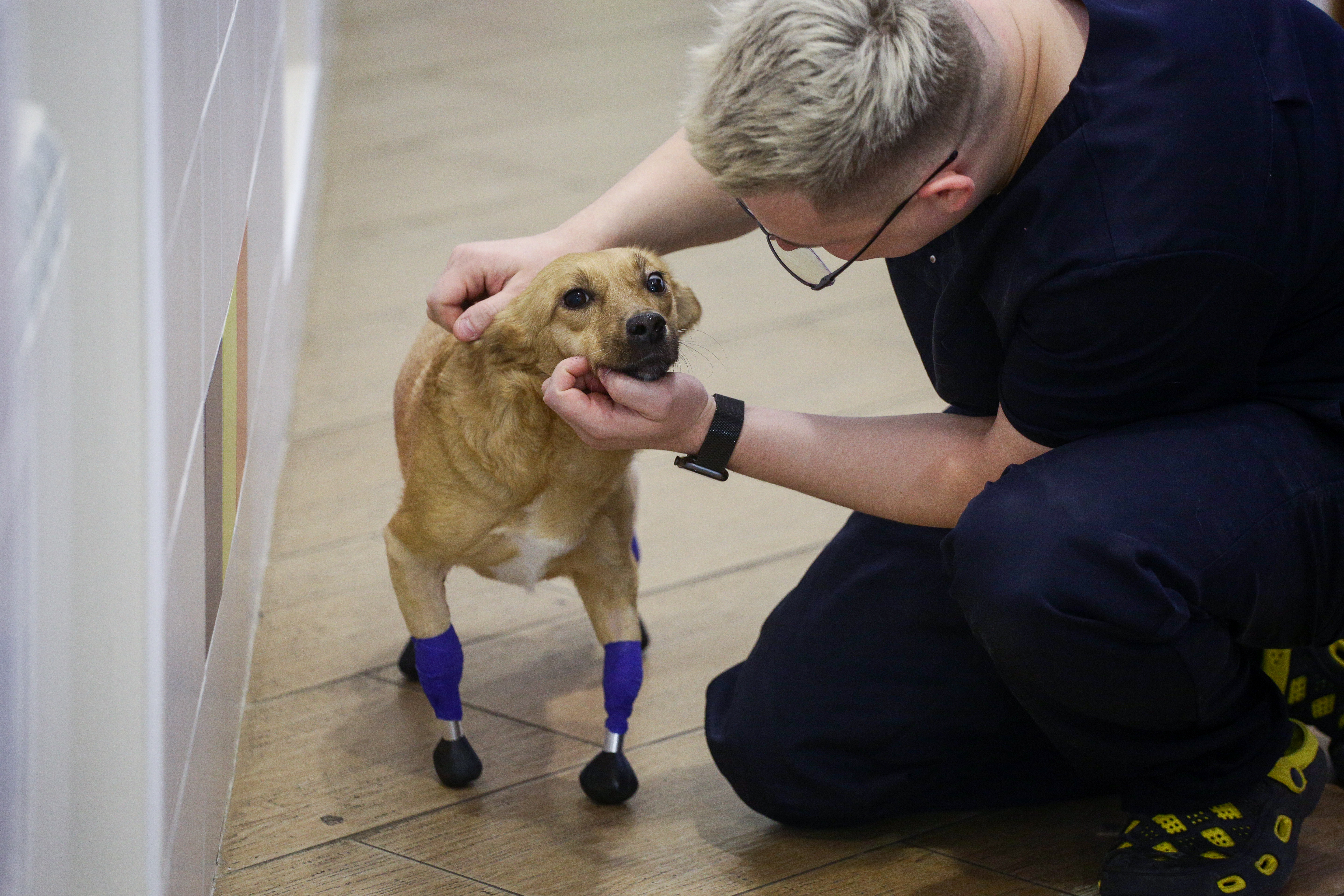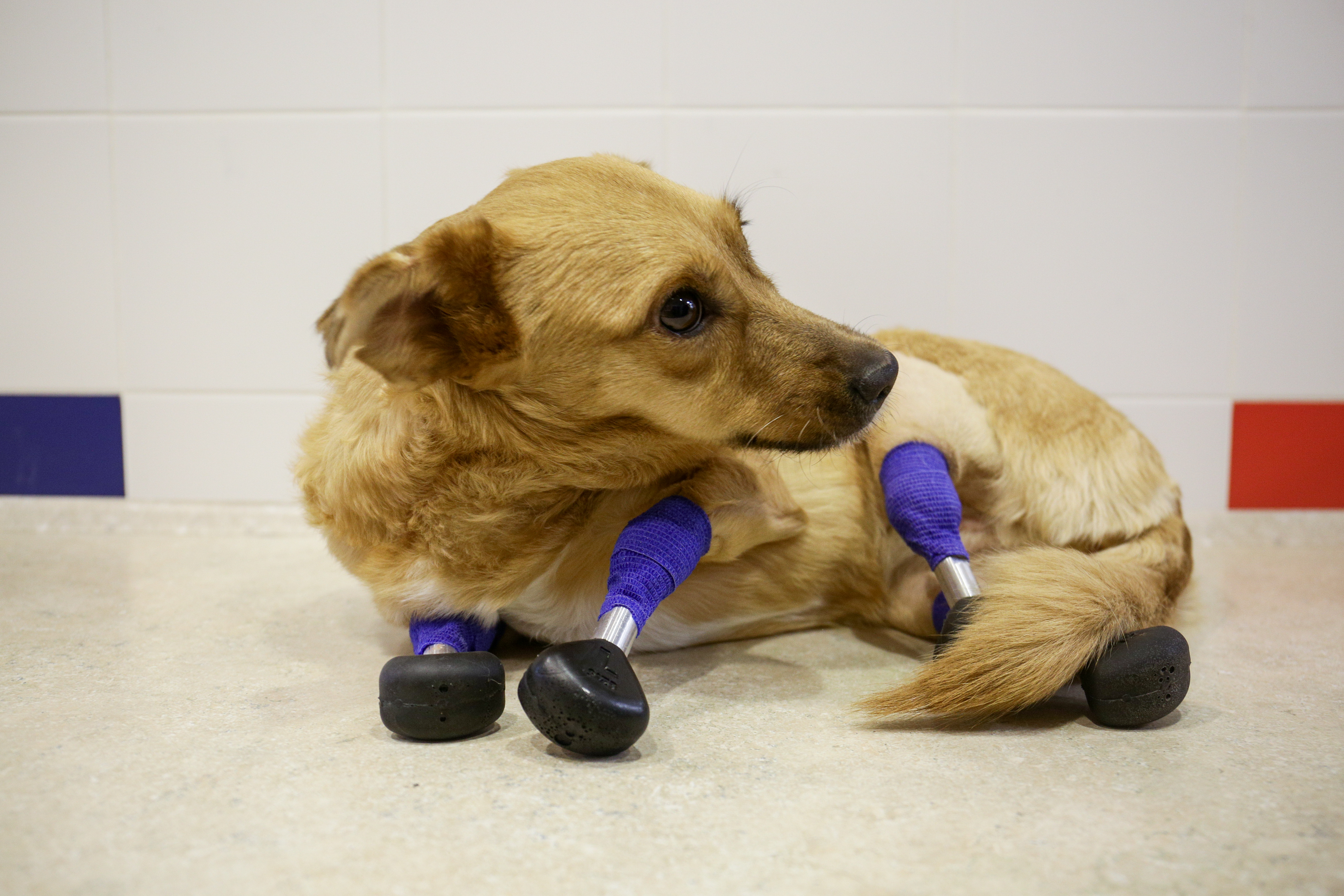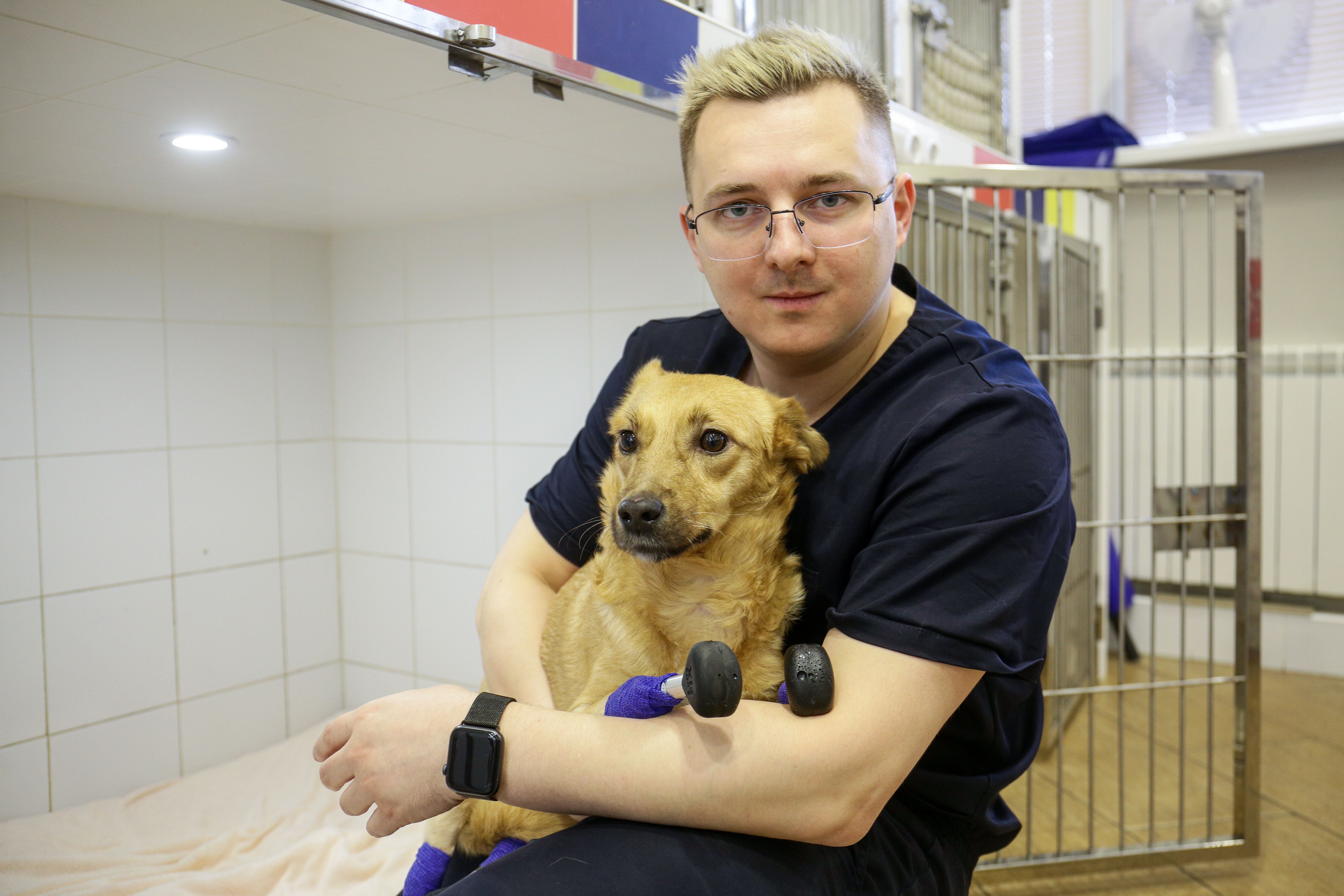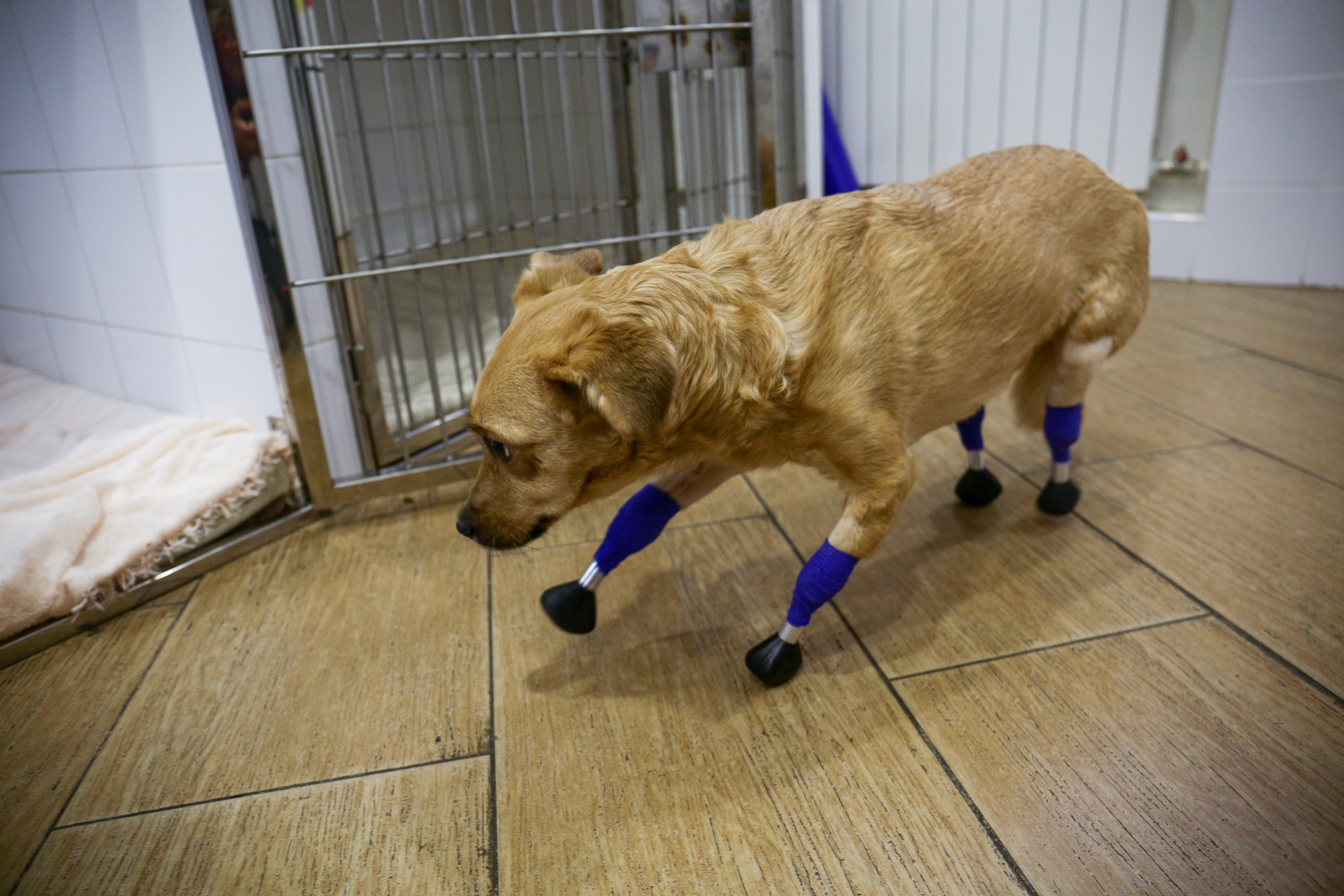 «14 дней назад мы сделали ей новую операцию по имплантации лап. Передней и двух задних. Операция была длительной — около четырёх часов. И всё закончилось, к счастью, хорошо. Сейчас собака даже может двигаться, бегать из кабинета в кабинет», — добавляет Серей Горшков.