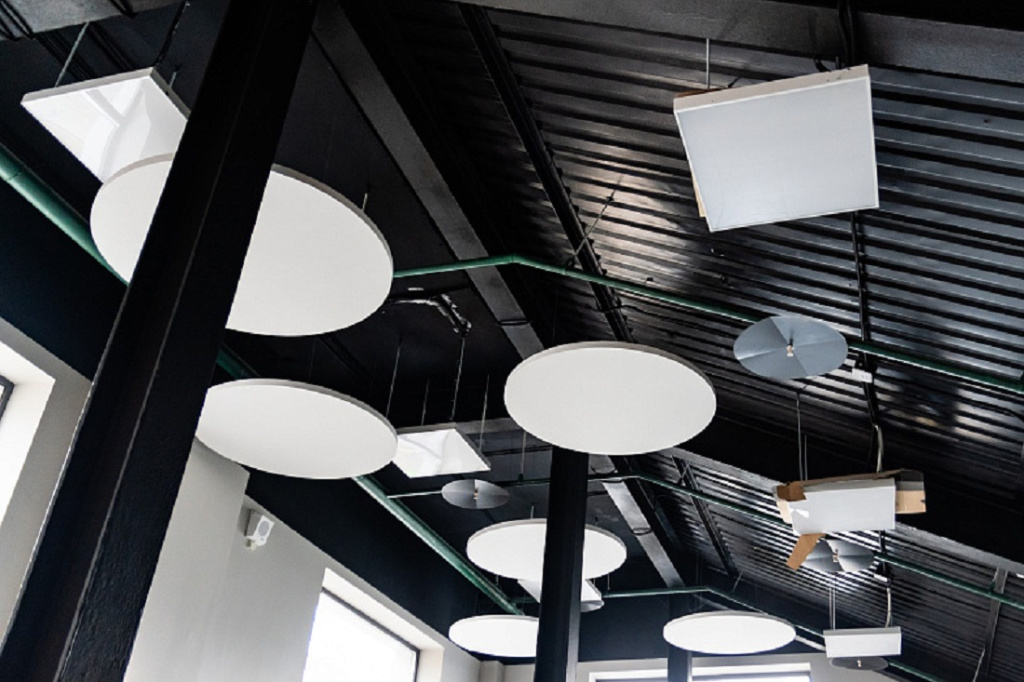 В остальное время студенты смогут здесь отдыхать и работать. Для этого помещение разбили на зоны, установили специальные акустические панели, которые полностью или частично заглушают звук. Стулья будут убирать в специальные места для хранения, а на сцене разместят пуфы.