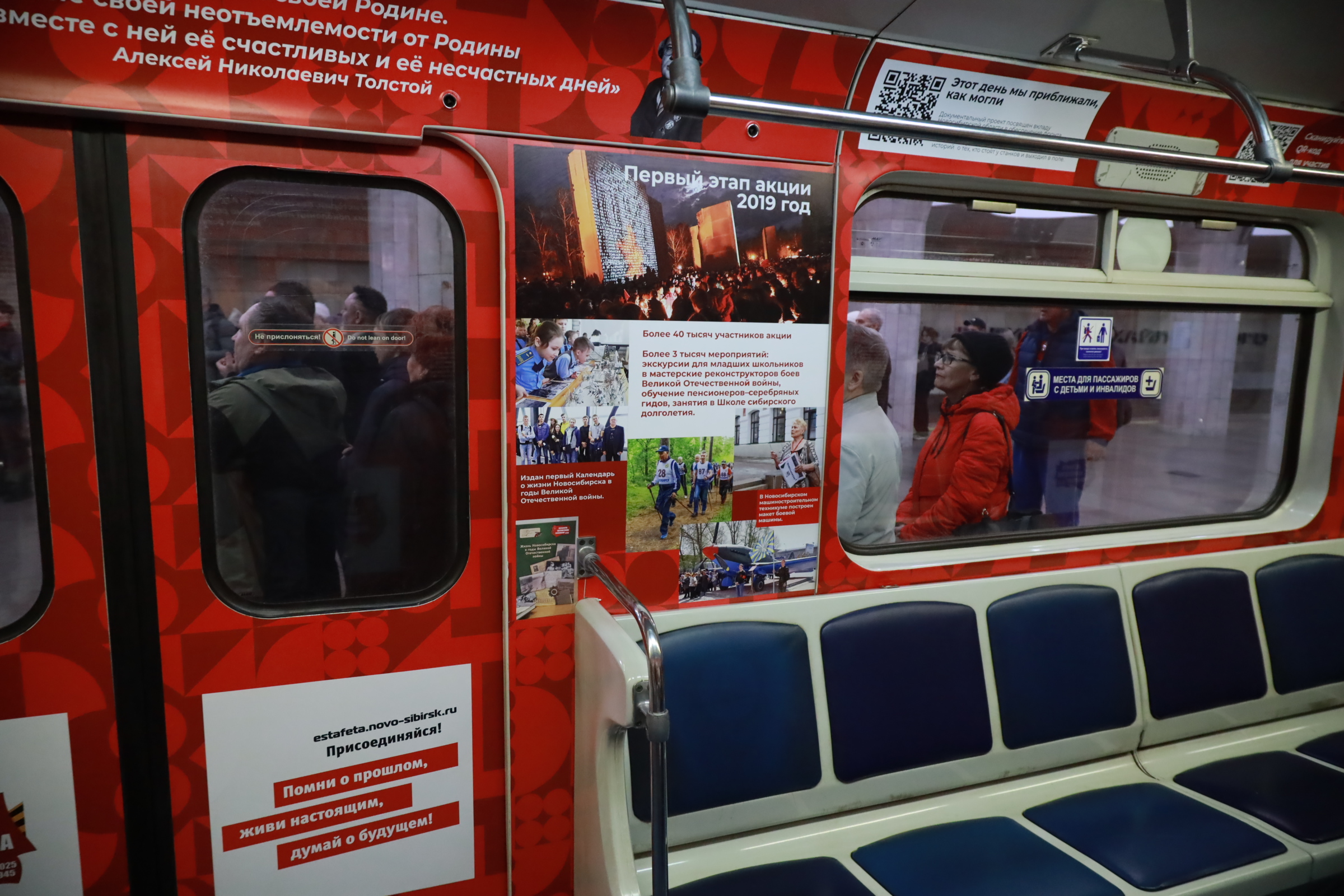О масштабной патриотической акции расскажут в метро. В одном из вагонов представили ретроспективу событий «Эстафеты патриотизма поколений».