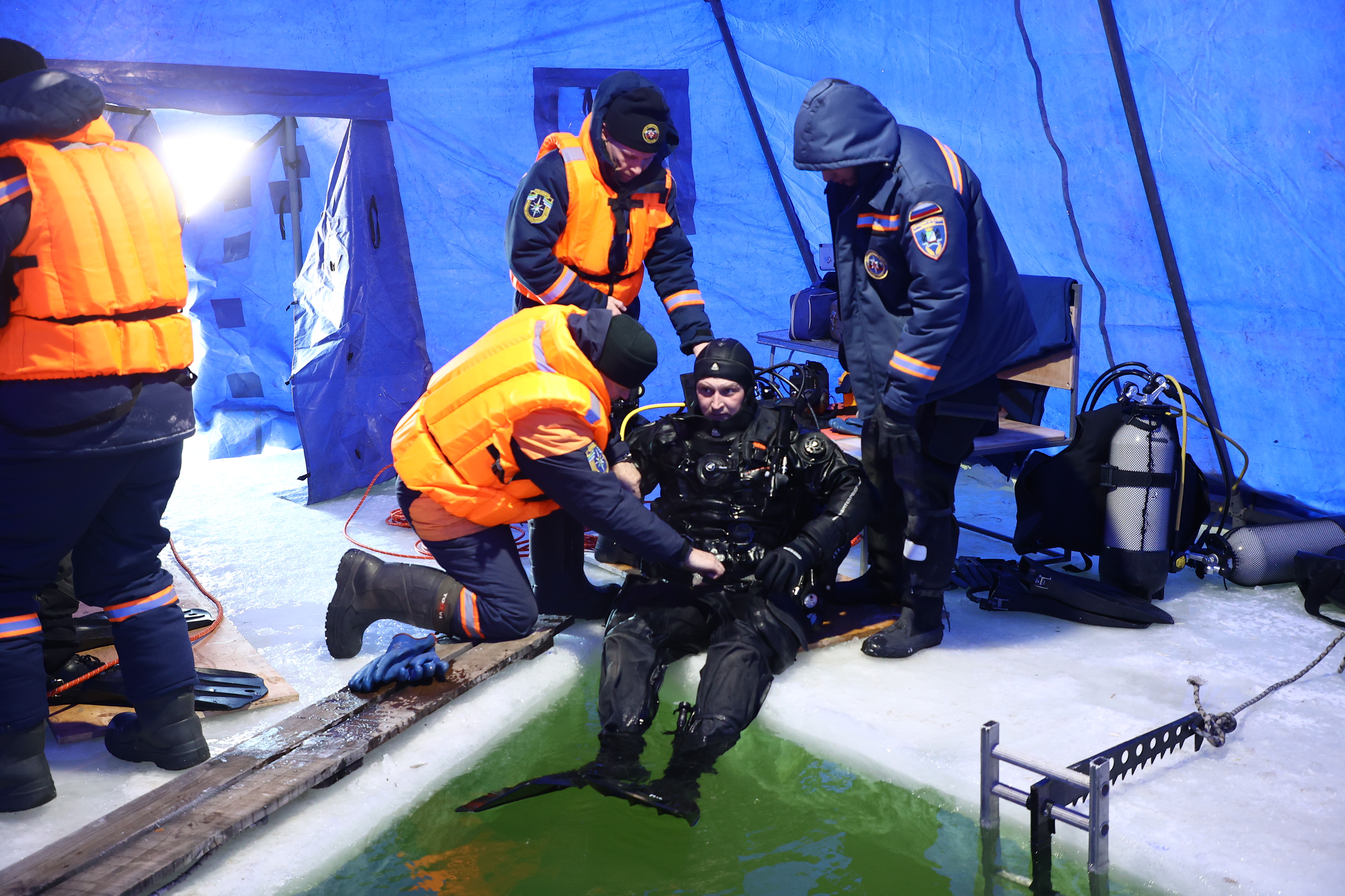 Мэр Кудрявцев: водолазы отработали экстремальные спуски под лёд