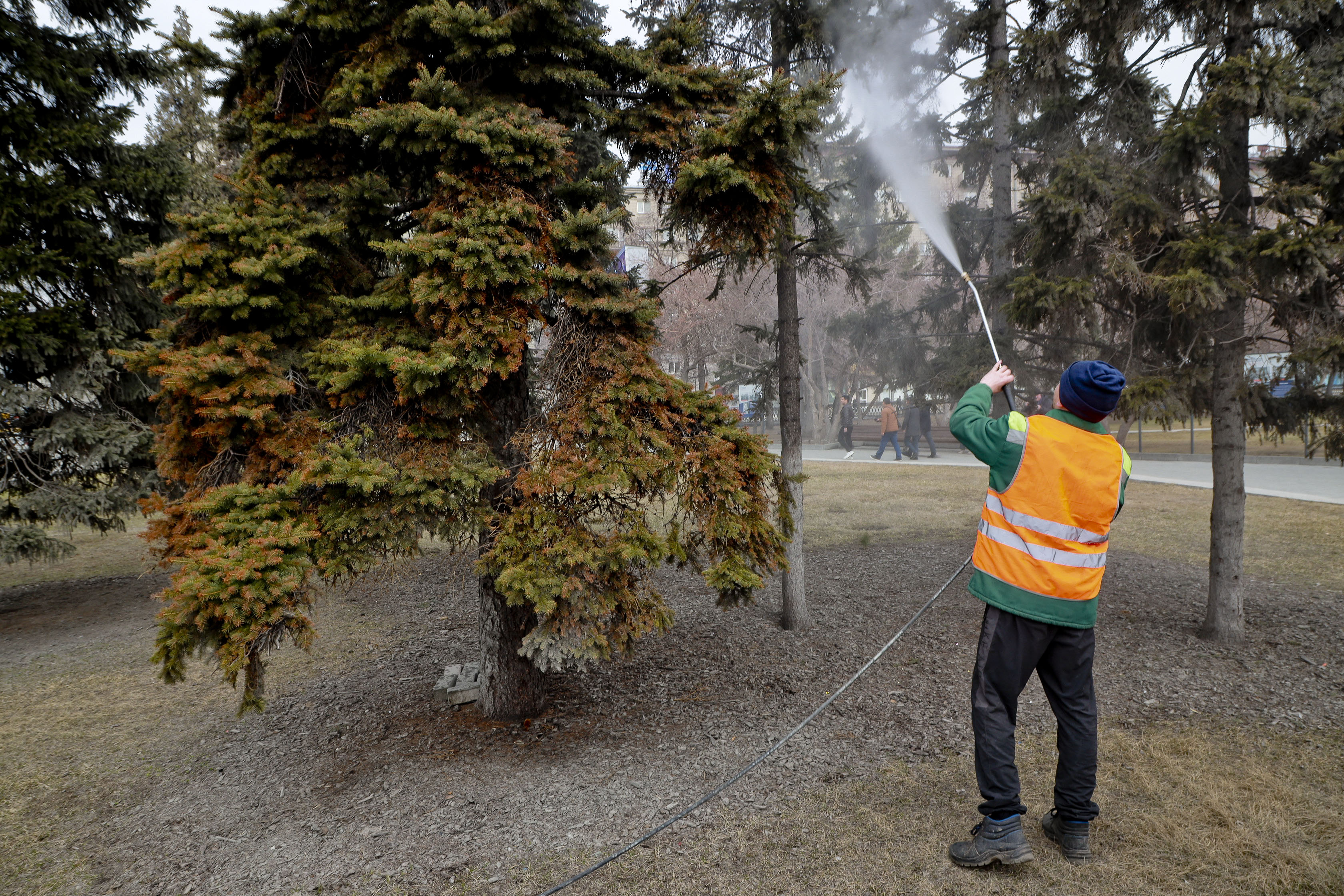 Как объясняют городские озеленители, дождевание прежде всего рассчитано на хвойные. В городских условиях иголки страдают от загрязнений и живут в среднем в два раза меньше, чем в природе. Воздействию агрессивной среды особенно подвержены деревья на первой линии, вблизи оживлённых дорог. Процедура помогает растению быстрее проснуться и начать фотосинтез.