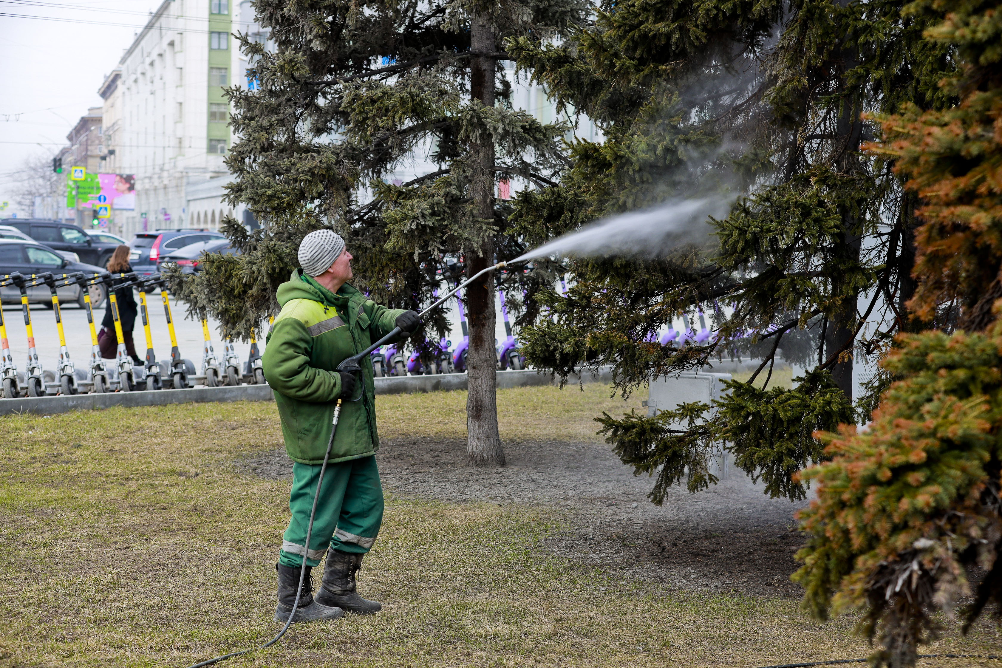 Более 500 деревьев в Новосибирске примут весенний «душ» до конца апреля: специалисты Горзеленхоза начали отмывать хвойные на общественных территориях, чтобы подготовить их к летнему сезону.
