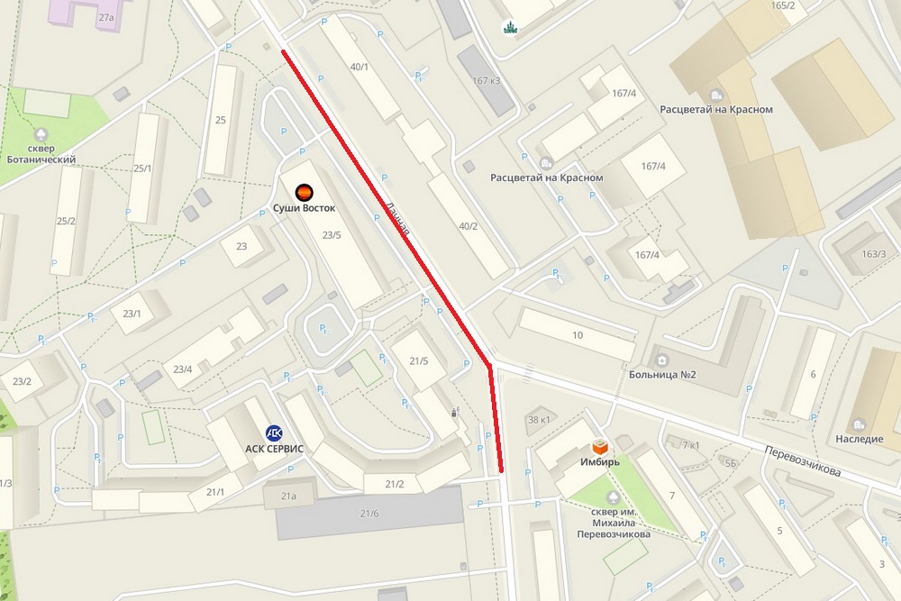С 15 сентября по 30 октября на 7,5 метра сужена ул. Комсомольская (на участке от здания по адресу: ул. Комсомольская, 13 до пересечения с ул. Чемской).