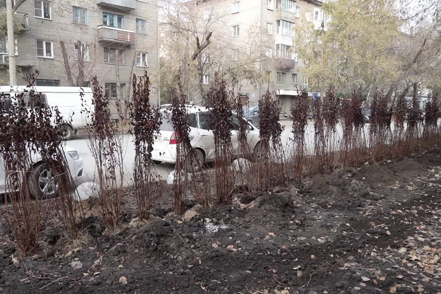 Крупные кустарники высадили на улице Советской, чтобы уберечь газоны от автохамов. Практика показывает, что живая изгородь — это эффективное средство борьбы с незаконной парковкой. У сорта красивая красная листва, саженцы привезли из питомников Новосибирской области. Такие растения хорошо приживаются в городской среде.