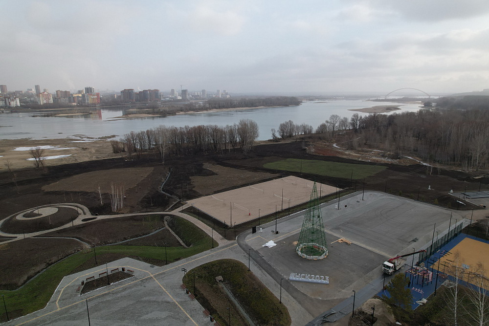 Парк «Арена» на левом берегу Оби продолжают декорировать к новогодним праздникам. На площадке между зданием спорткомплекса и рекой смонтировали из светодиодов огромную цифровую ёлку-экран. В тёмное время она будет светиться разными огоньками, а также транслировать виртуальную метель.
