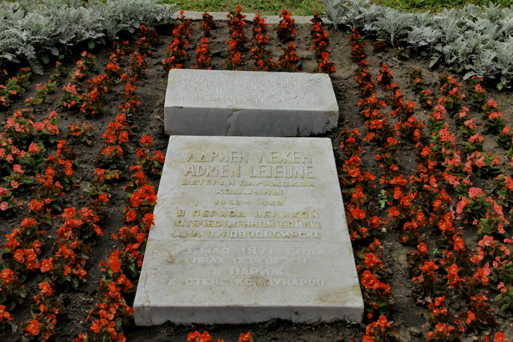 Похоронили его сначала на Заельцовском кладбище, а в 1946 году решили перенести в сквер Героев Революции. В мае 1971 года по просьбе коммунистической партии Франции прах Адриена Лежена отправили на родину. Сначала гроб с останками ветерана улетел в Москву, там их кремировали, а урну отправили во Францию, где и захоронили у Стены коммунаров на кладбище Пер-Лашез во время празднования столетия Парижской коммуны.