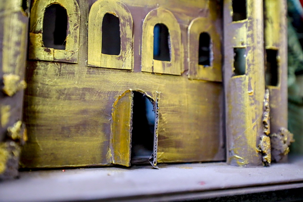 «Если специалисты с архитектурным образованием сначала рисуют домик, просчитывают и чертят проект, то у нас подход совсем иной. Сначала мы собираем все коробки, втулки, упаковку, которую можем найти. А затем уже это комбинируем, сопоставляем. В голове нет чёткой картинки, всё происходит по ходу работы. Это можно назвать картонной импровизацией. Облик здания рождается в процессе», — рассказывает мастерица.