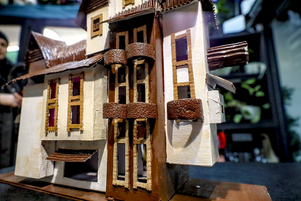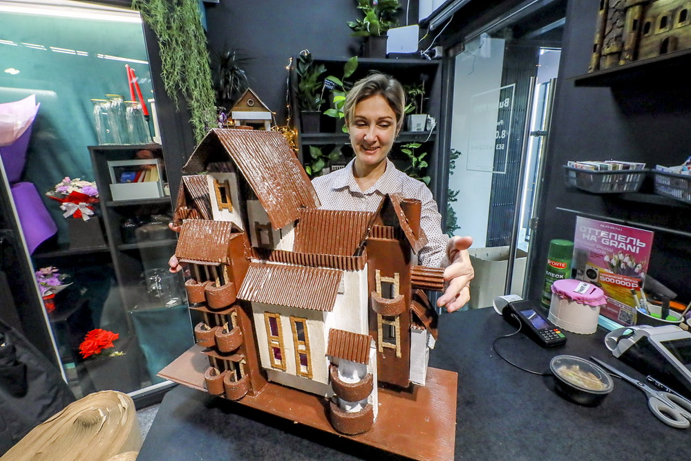 Фантазийные макеты домов делает из картона новосибирский флорист