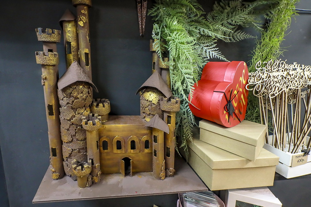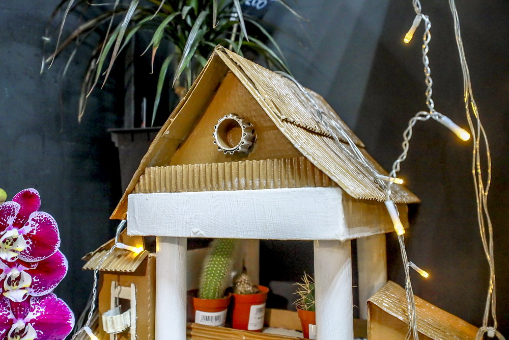 Накануне новогодних каникул хозяйка цветочного салона «Букет Про» Марина Лоскутова решила украсить свой магазин необычными домиками. В творческий процесс дружно включились её дети, и за несколько декабрьских вечеров вместе они соорудили макеты, которые стали частью праздничных декораций. Постройки подсветили гирляндой, поставили в них статуэтки и кактусы. Мы расспросили автора, из чего можно сделать такие мини-здания, нужен ли для этого проект, сколько уйдёт времени на изготовление поделок и как увлечь им всю семью.