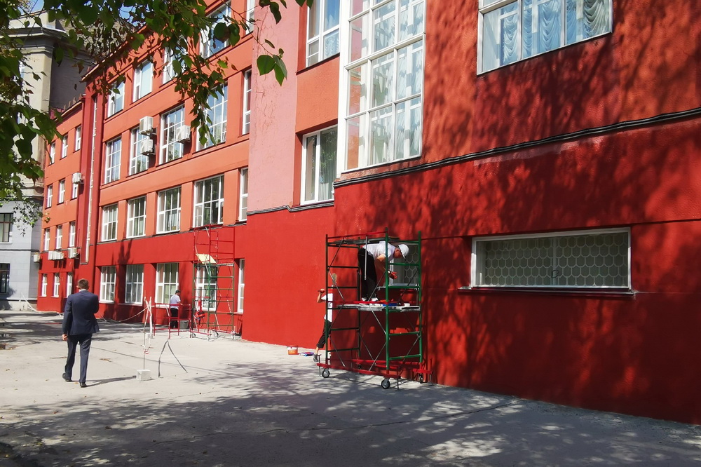 В Новосибирске этим летом обновляют фасад у памятника конструктивизма — здания Государственного банка на Красном проспекте, 27. Прямо сейчас его красят в насыщенный терракотовый цвет.