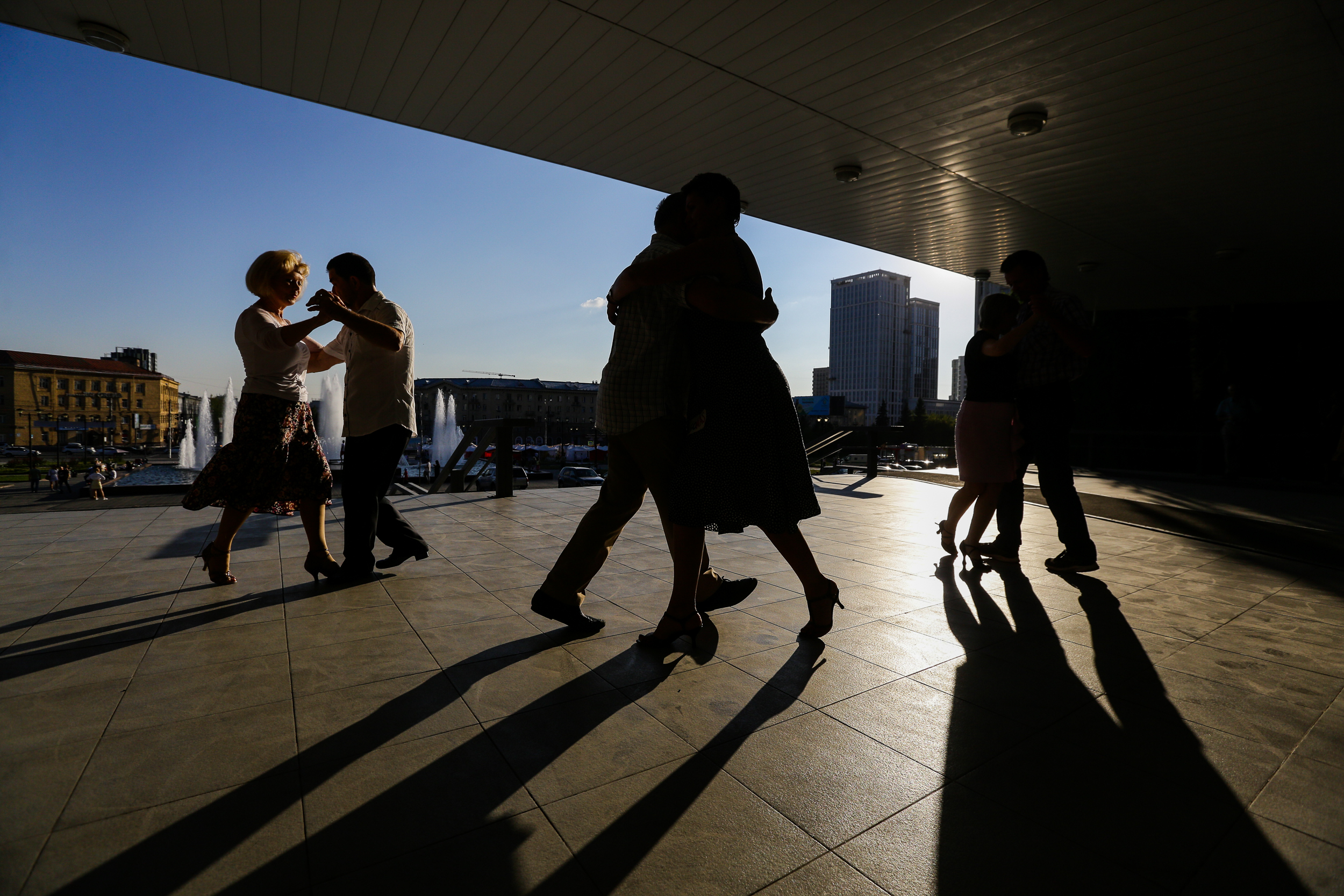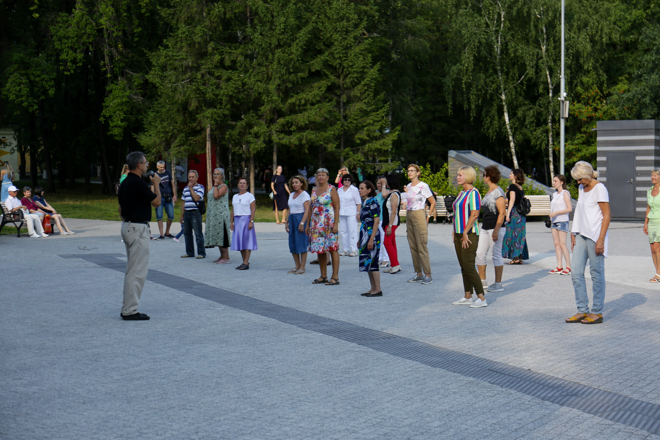 Сезон танцев на открытом воздухе продолжается в Новосибирске. Горожан обучают историческому танцу, аргентинскому танго и бальным дисциплинам.