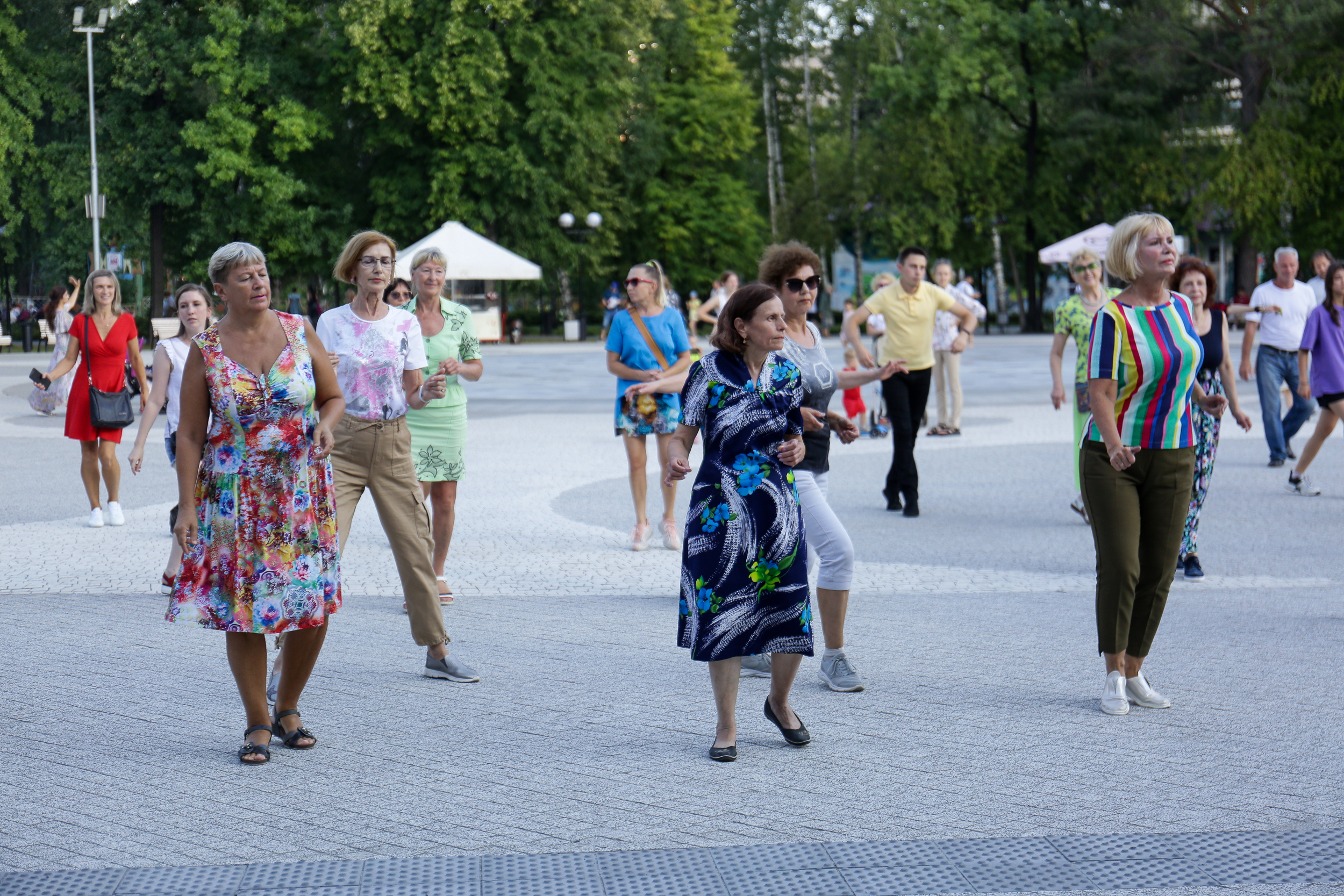 Также школа «Вдохновение» продолжает открытые уроки танцев на свежем воздухе в Центральном парке, на площадке перед главной сценой — возле плоского фонтана. С 18:00 целый час обучают тех, кто вообще не умеет танцевать, следующий час — программа бальных танцев для пар, а последний час — программа массовых танцев «Танцуют все!». Организаторы отмечают, что навыки и возраст не важны — научат танцевать всех.