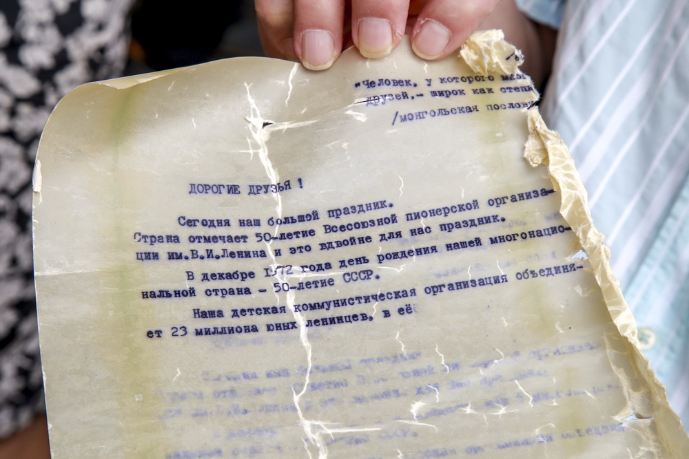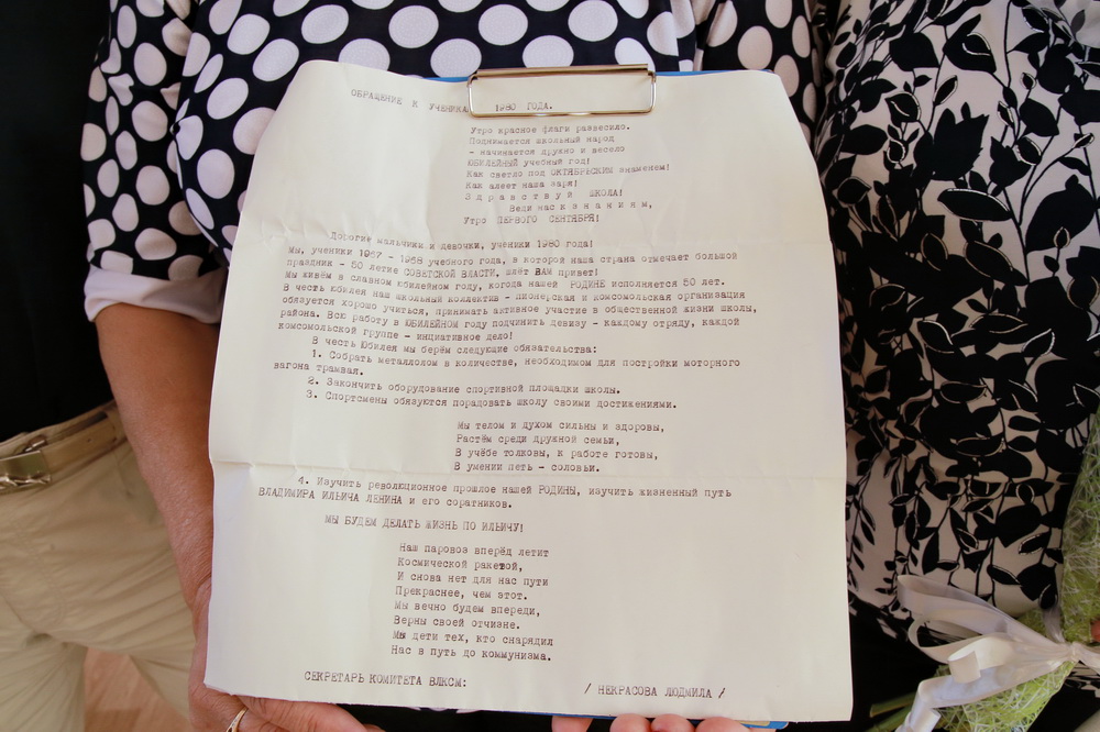 Там же хранят содержимое капсулы из административного здания на проспекте Дзержинского, 87, к. 1. В ней тоже было послание комсомольцев из 1968-го. Распечатали её 29 октября 2018 года.