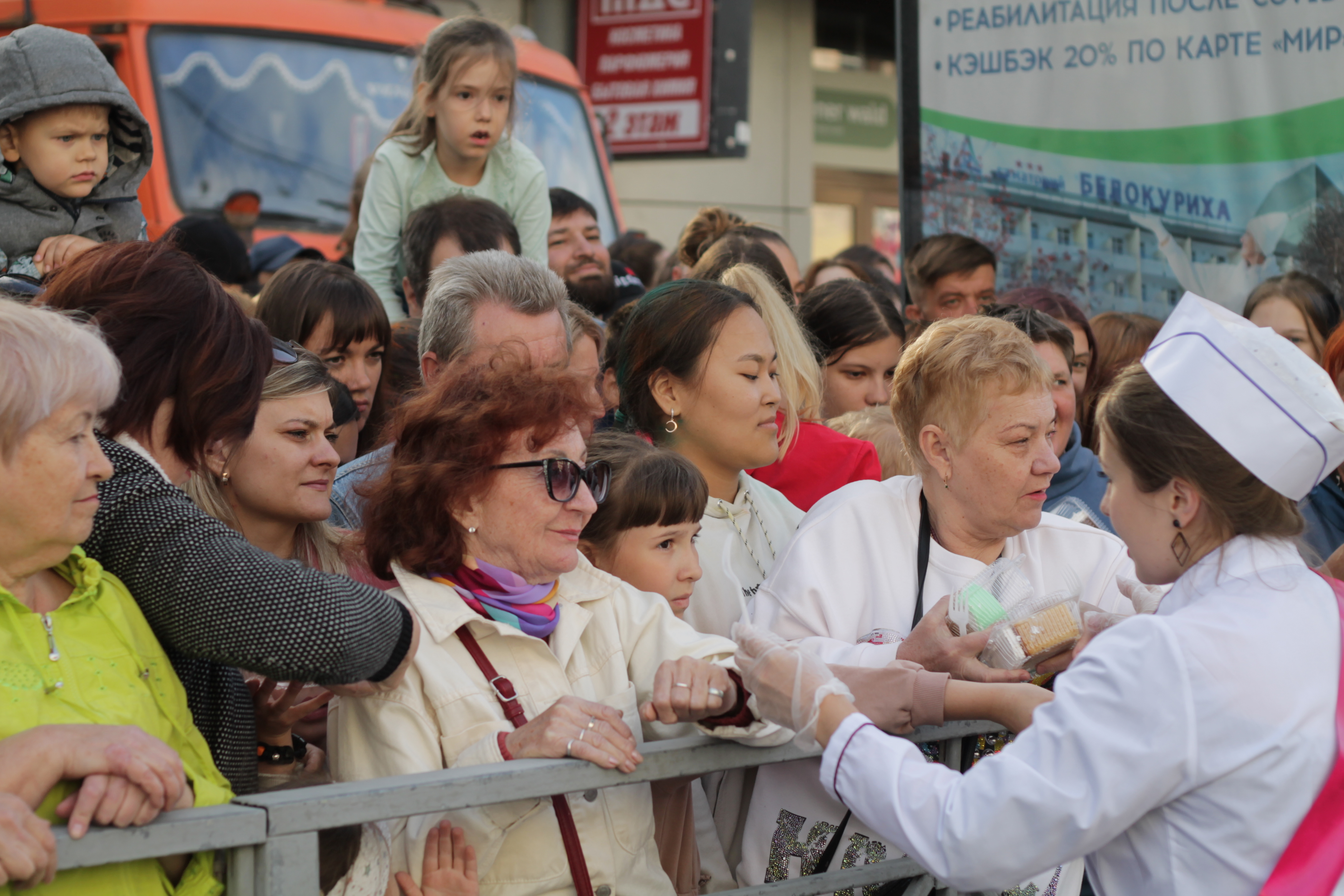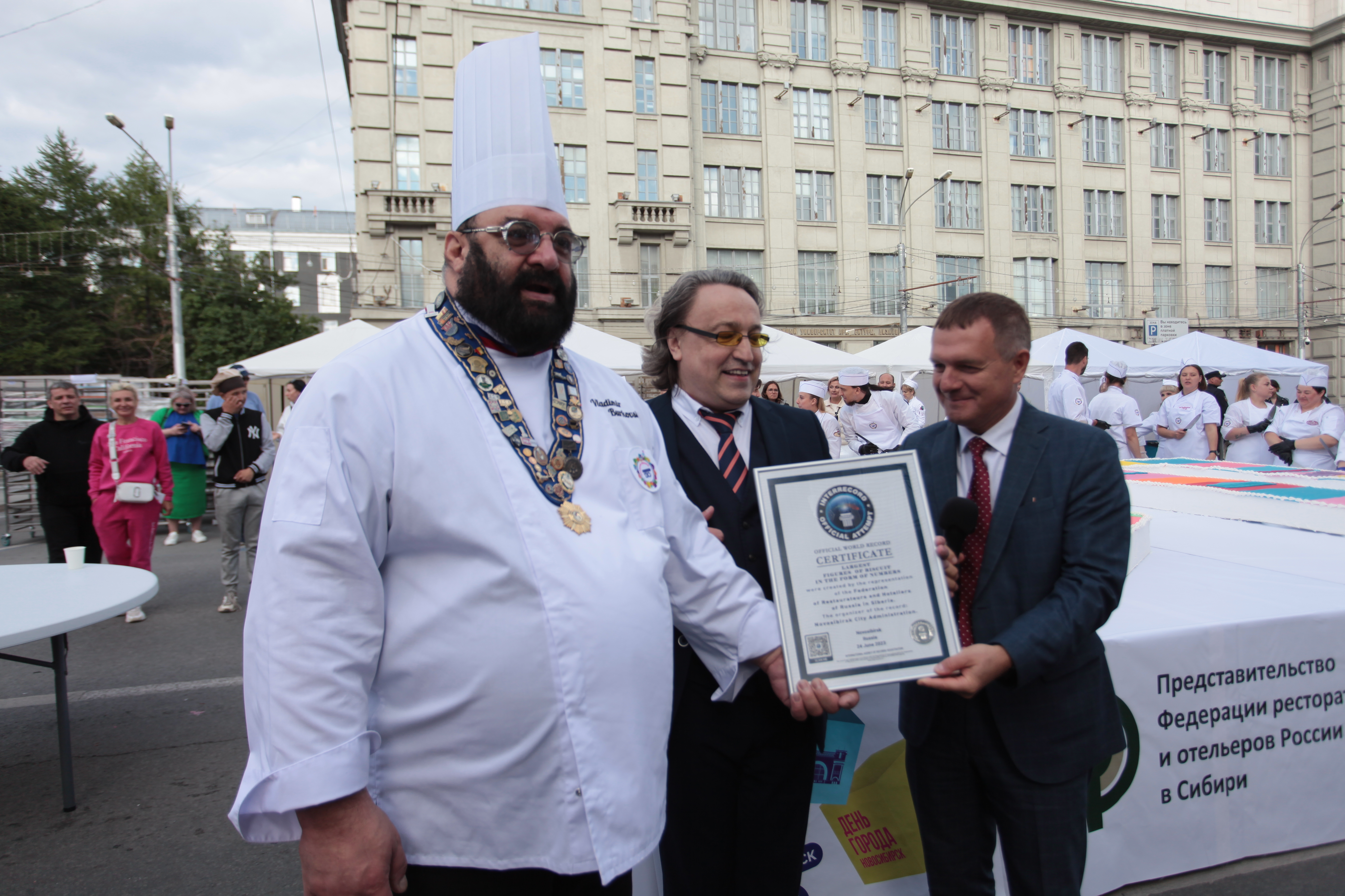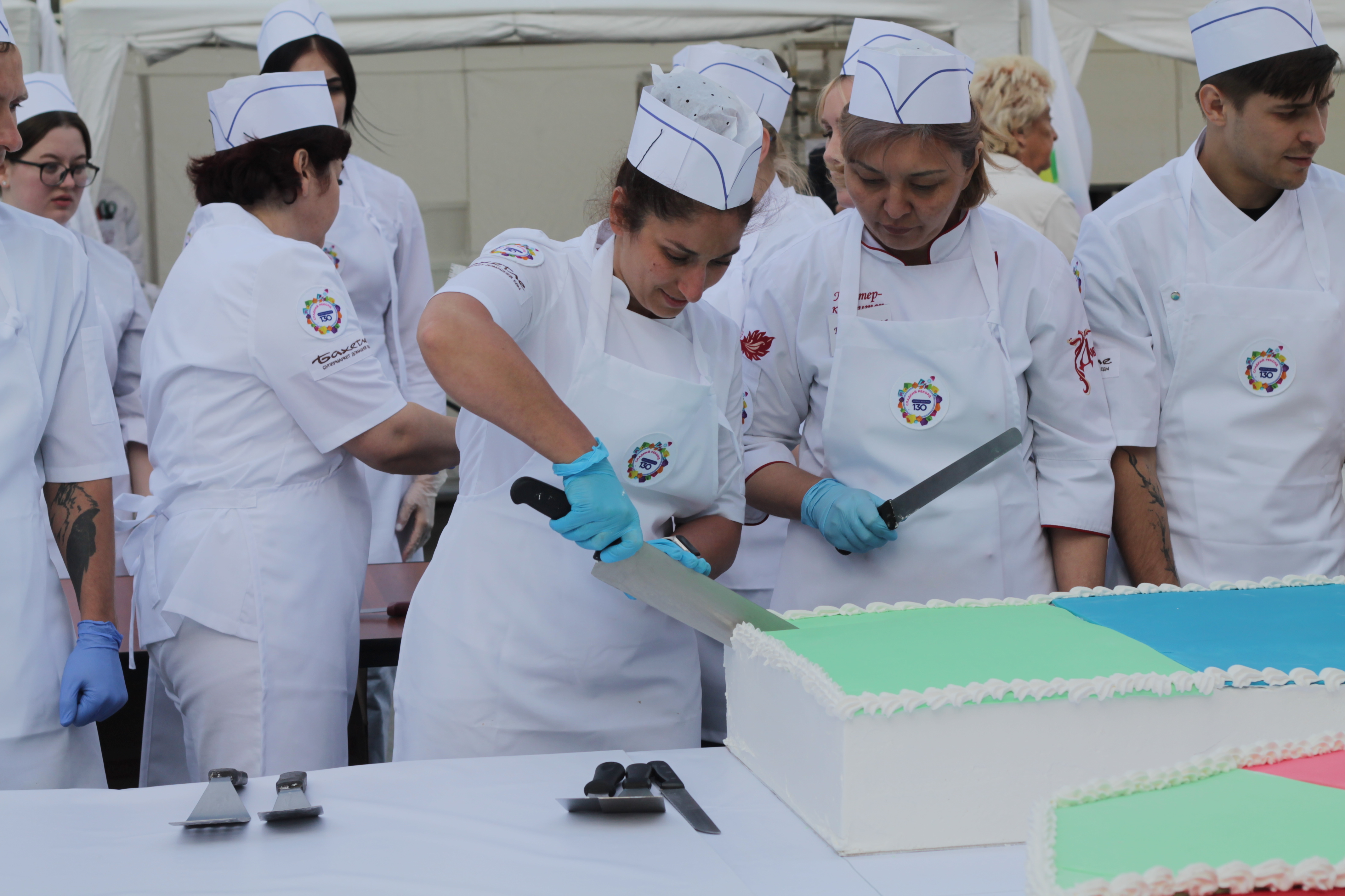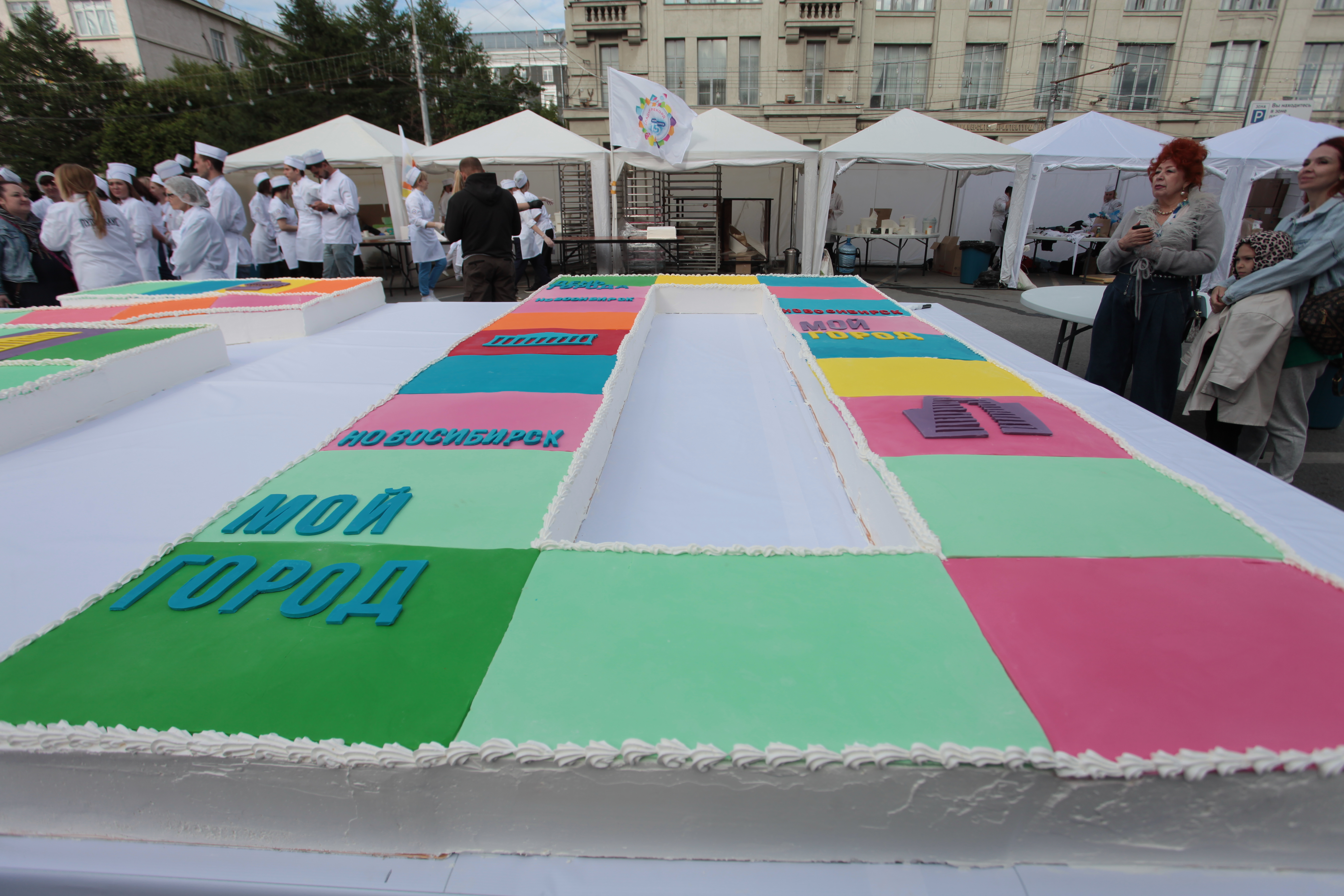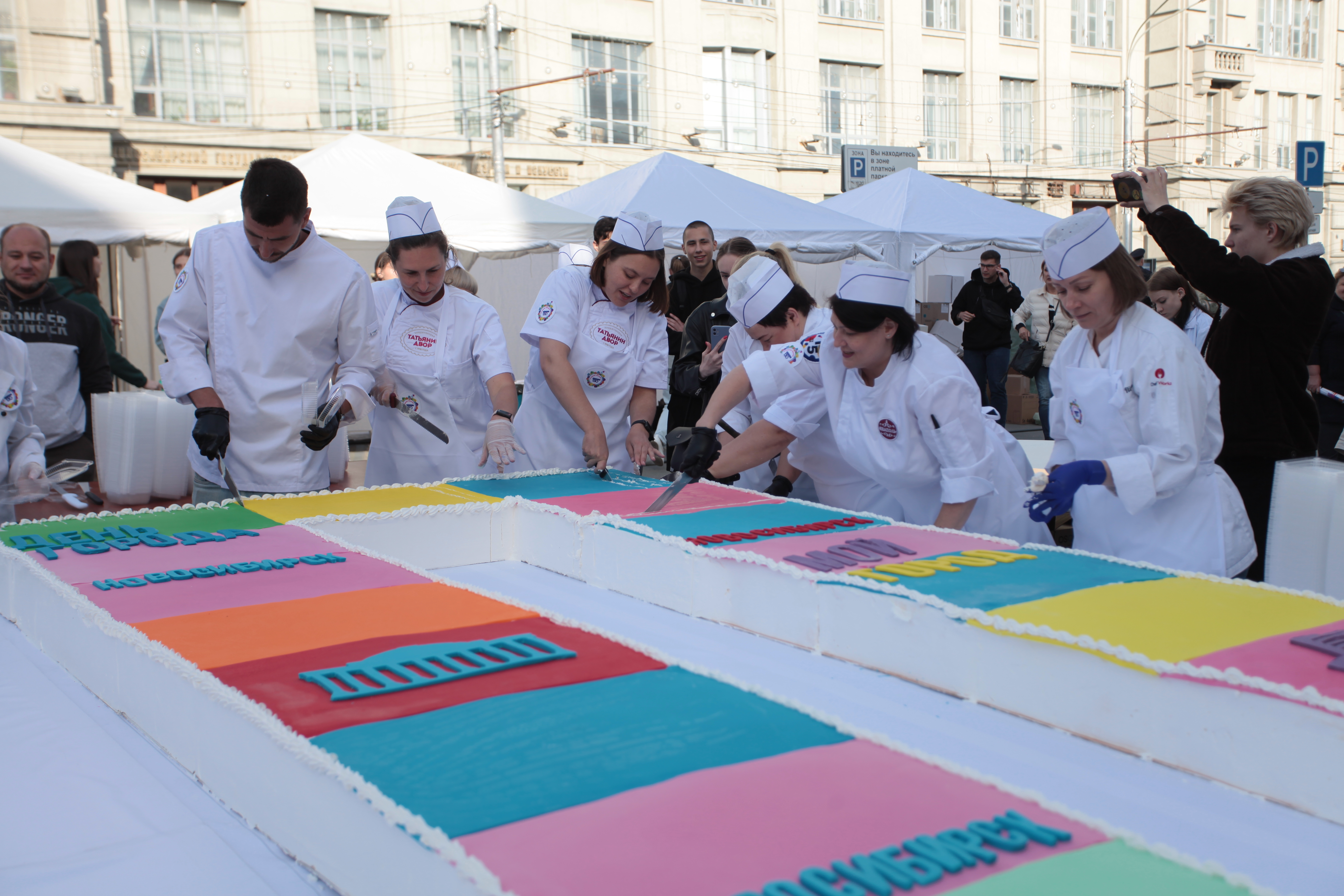А новосибирские кондитеры, как и пять лет назад, приготовили огромных размеров торт — на этот раз в виде цифры «130». Лакомство, весящее больше тонны, потянуло на мировой рекорд. Угоститься гигантом смогли все желающие.