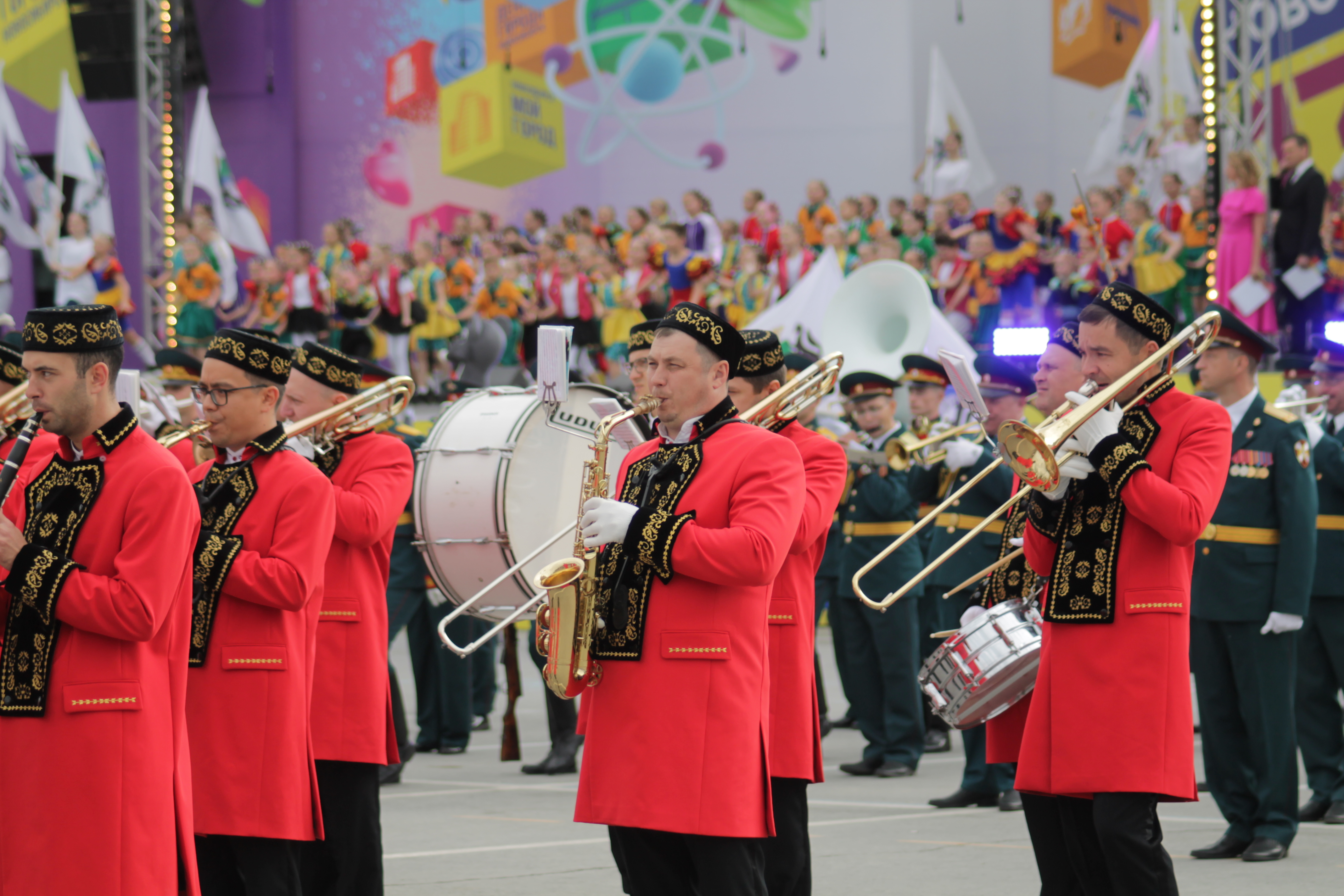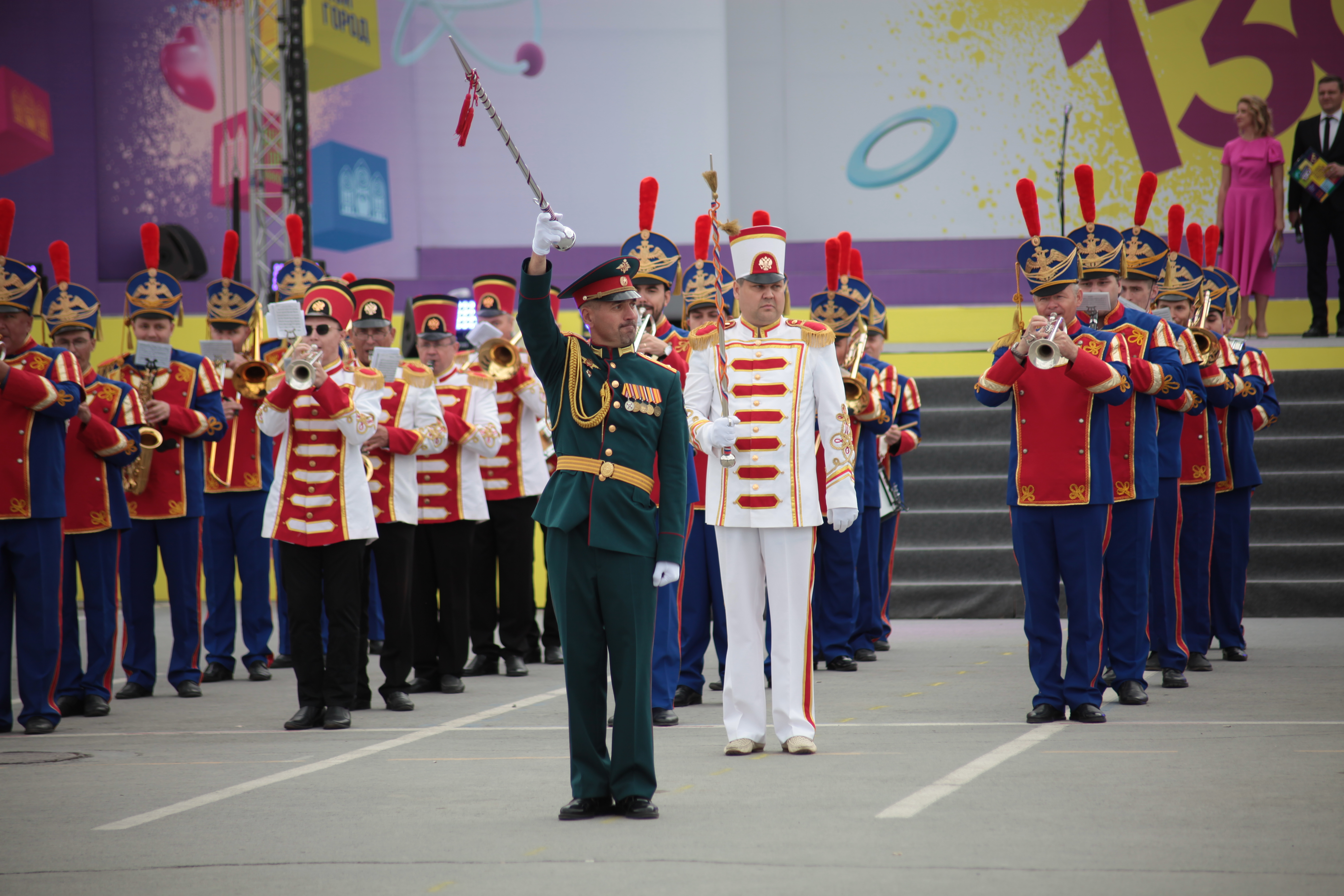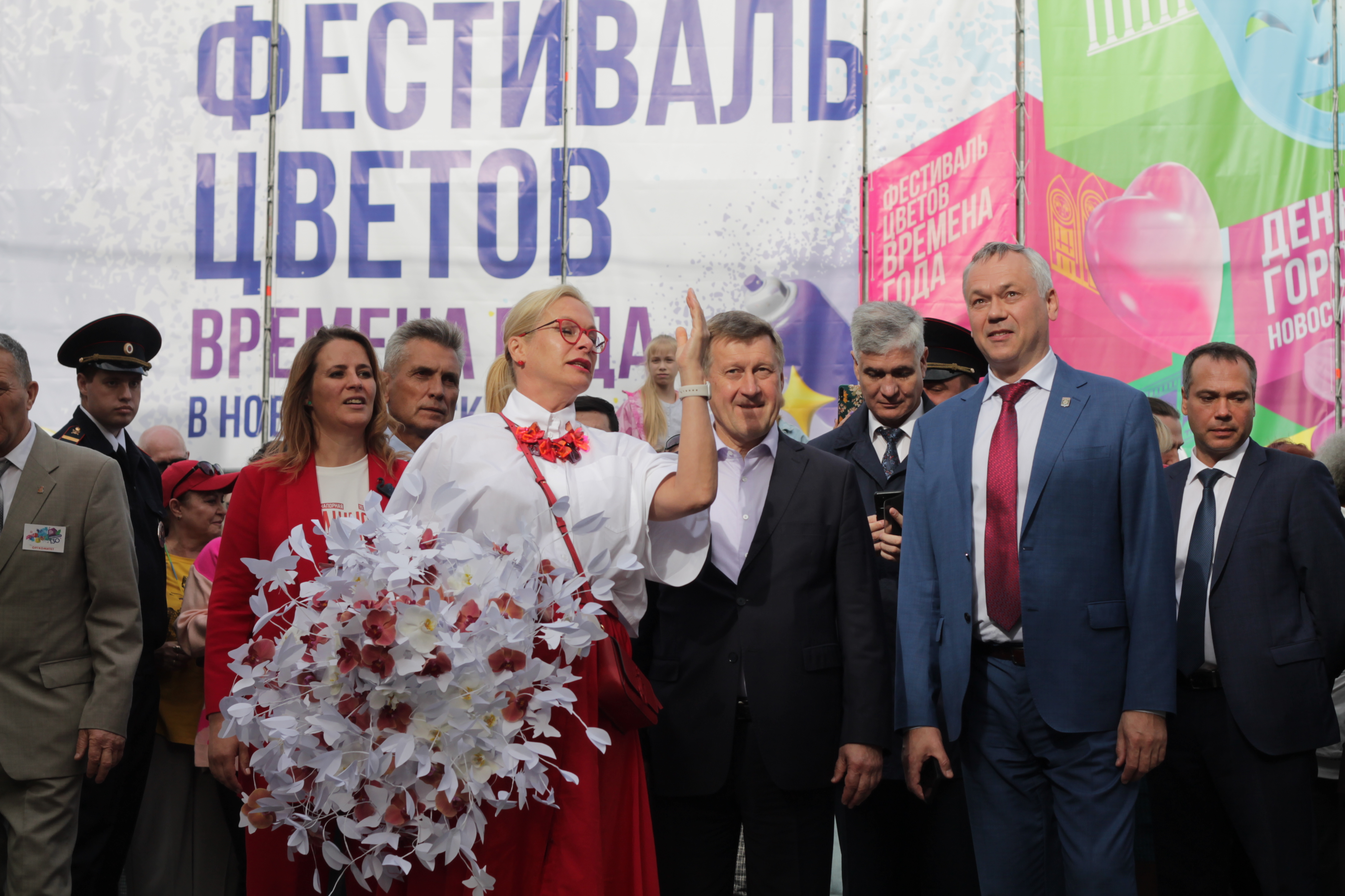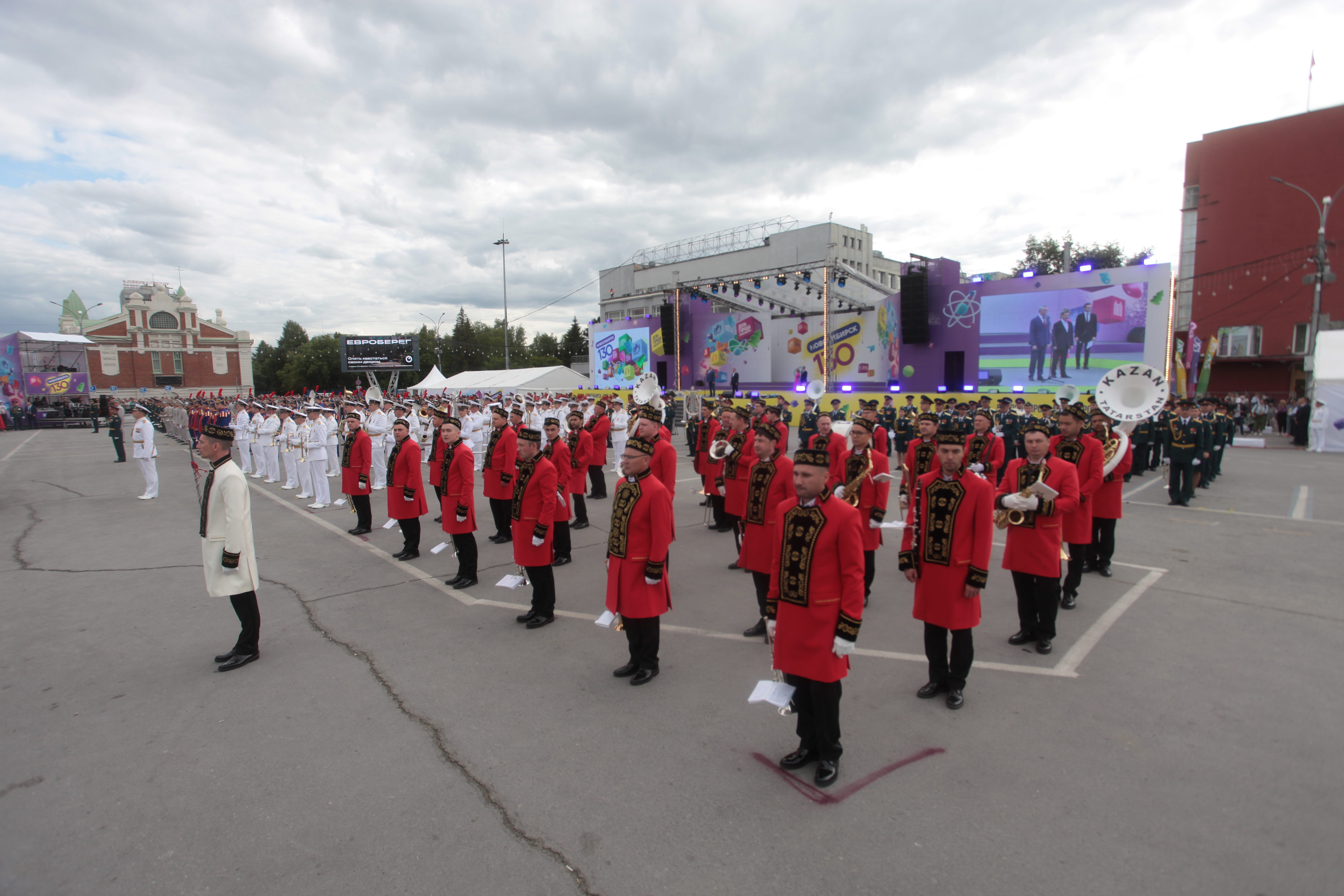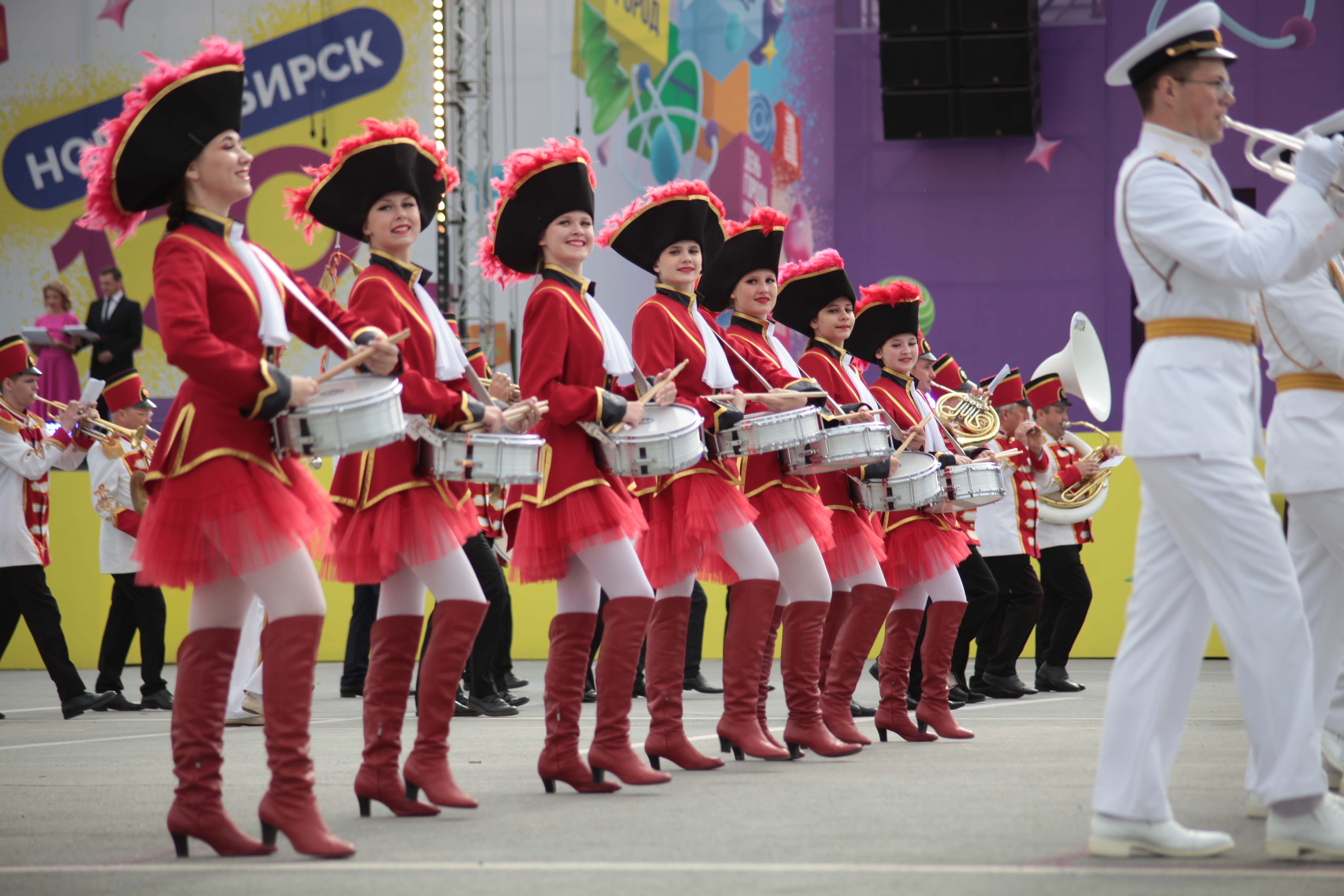 Сегодня, 24 июня, в ДКЖ состоялось торжественное собрание с концертом, на котором в том числе вручили нагрудный знак и удостоверение «Почётный житель города» космонавту-испытателю Анне Кикиной. Вечером тысячи новосибирцев пришли на главную площадь, чтобы посмотреть выступления духовых оркестров из разных уголков страны, приехавших подарить музыку городу-юбиляру. Улица Ленина на несколько дней стала центром международного фестиваля цветов.