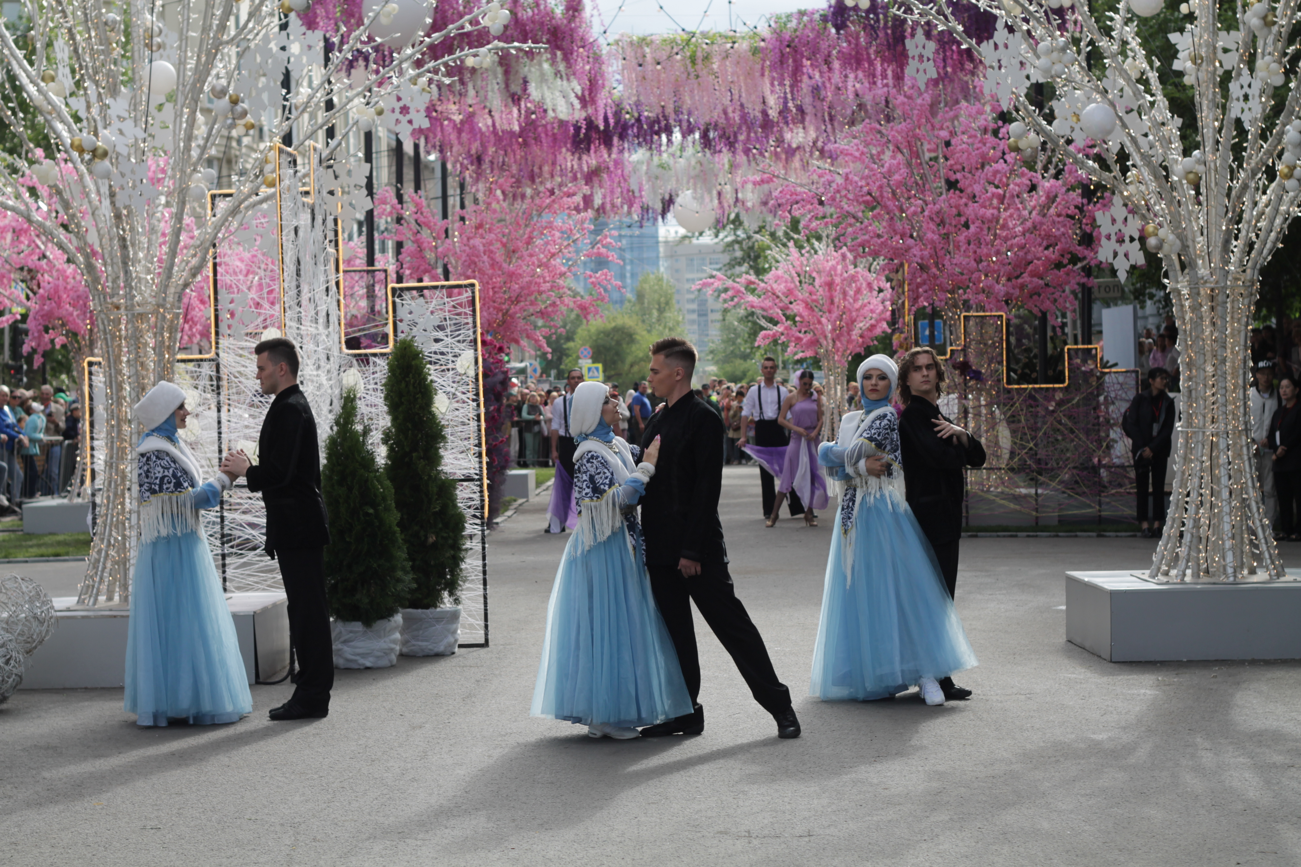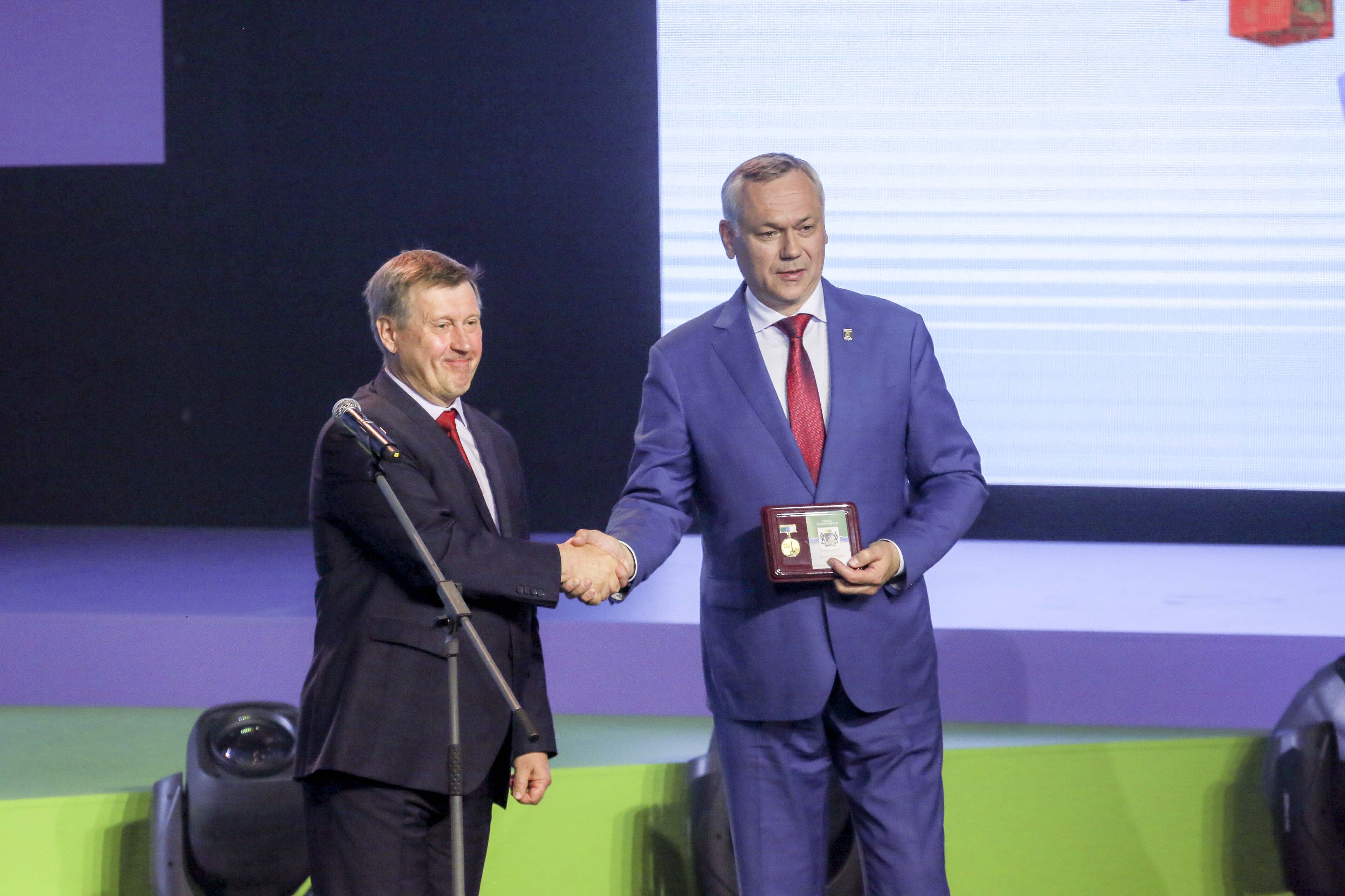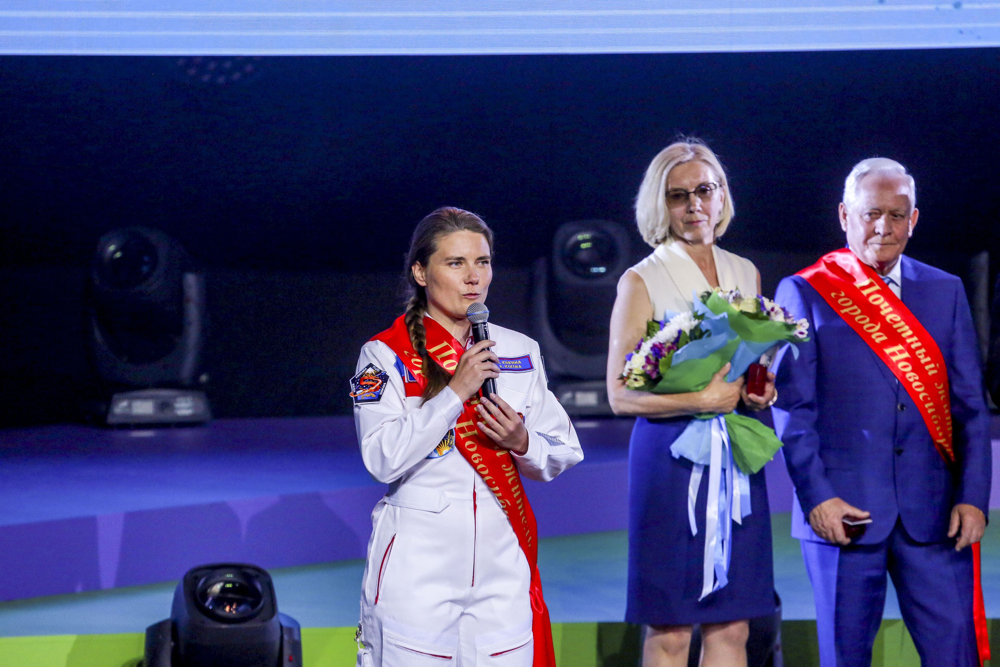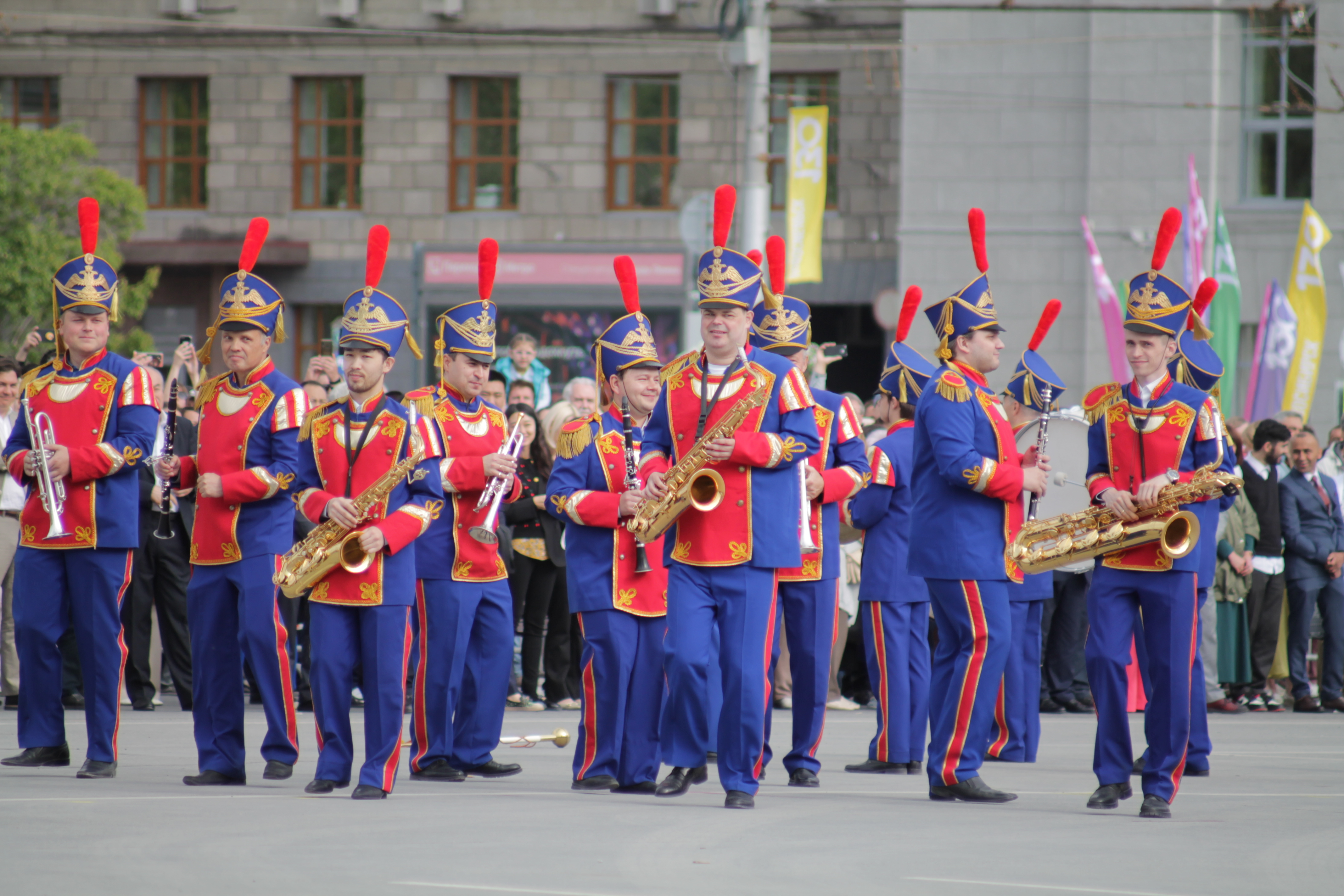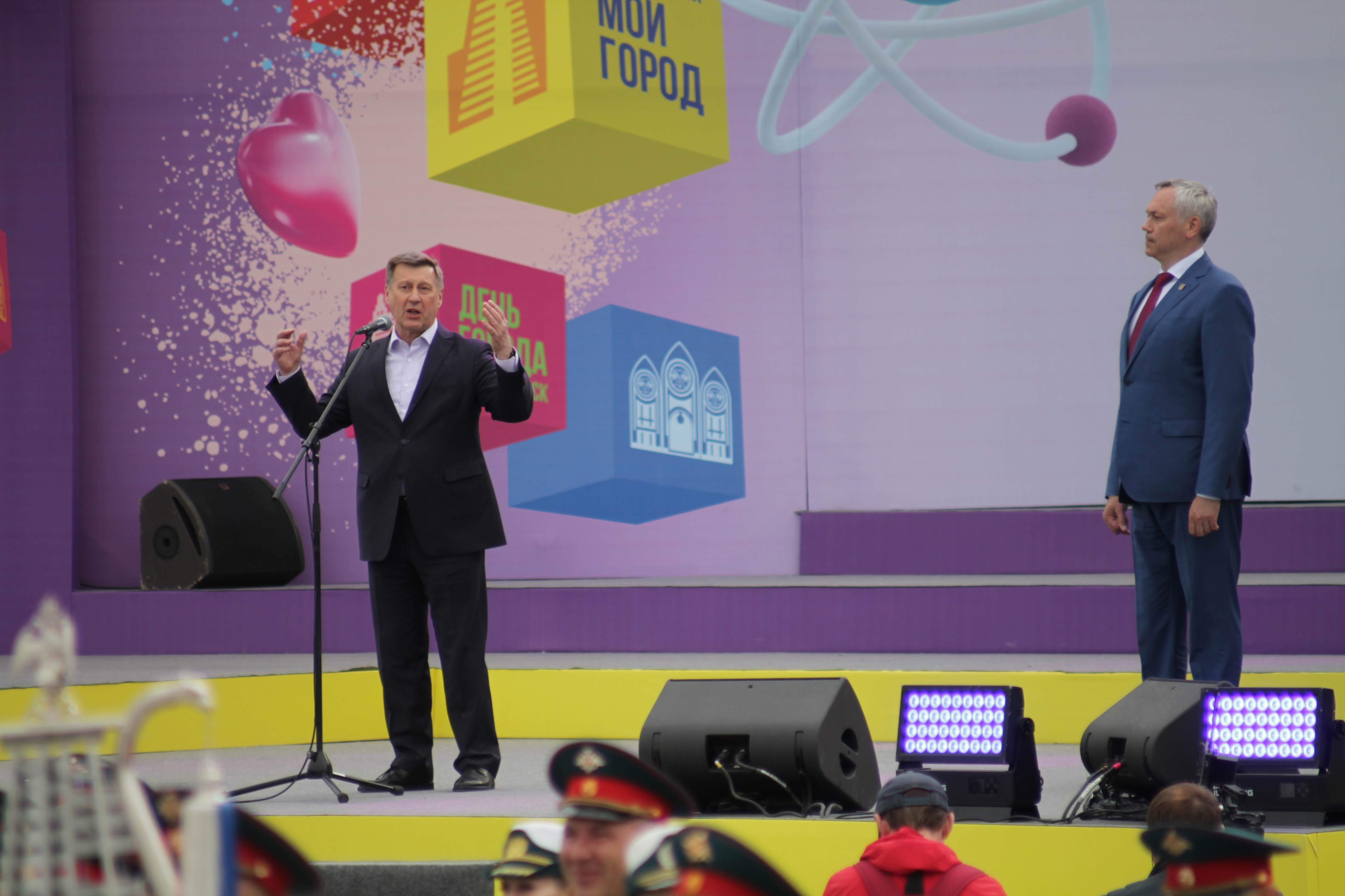 Сегодня, 24 июня, в ДКЖ состоялось торжественное собрание с концертом, на котором в том числе вручили нагрудный знак и удостоверение «Почётный житель города» космонавту-испытателю Анне Кикиной. Вечером тысячи новосибирцев пришли на главную площадь, чтобы посмотреть выступления духовых оркестров из разных уголков страны, приехавших подарить музыку городу-юбиляру. Улица Ленина на несколько дней стала центром международного фестиваля цветов.