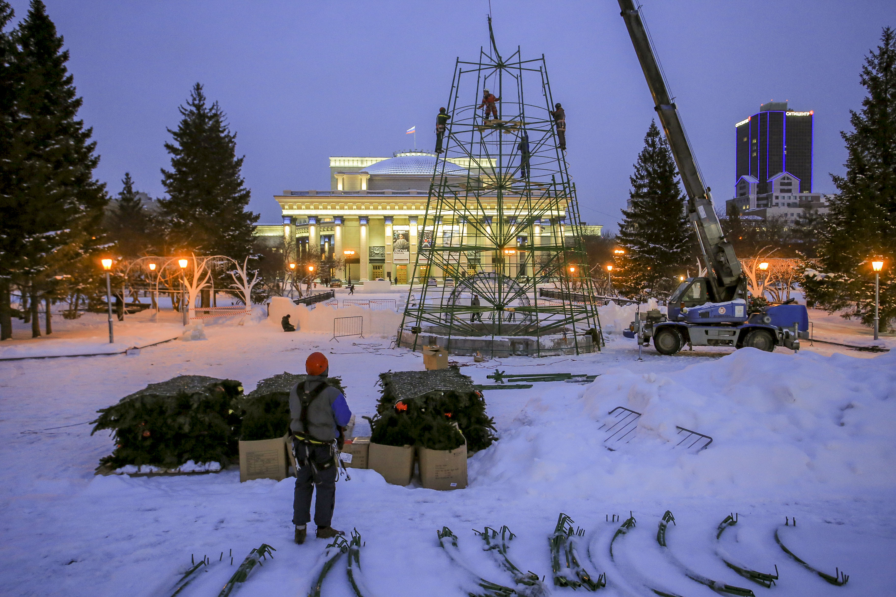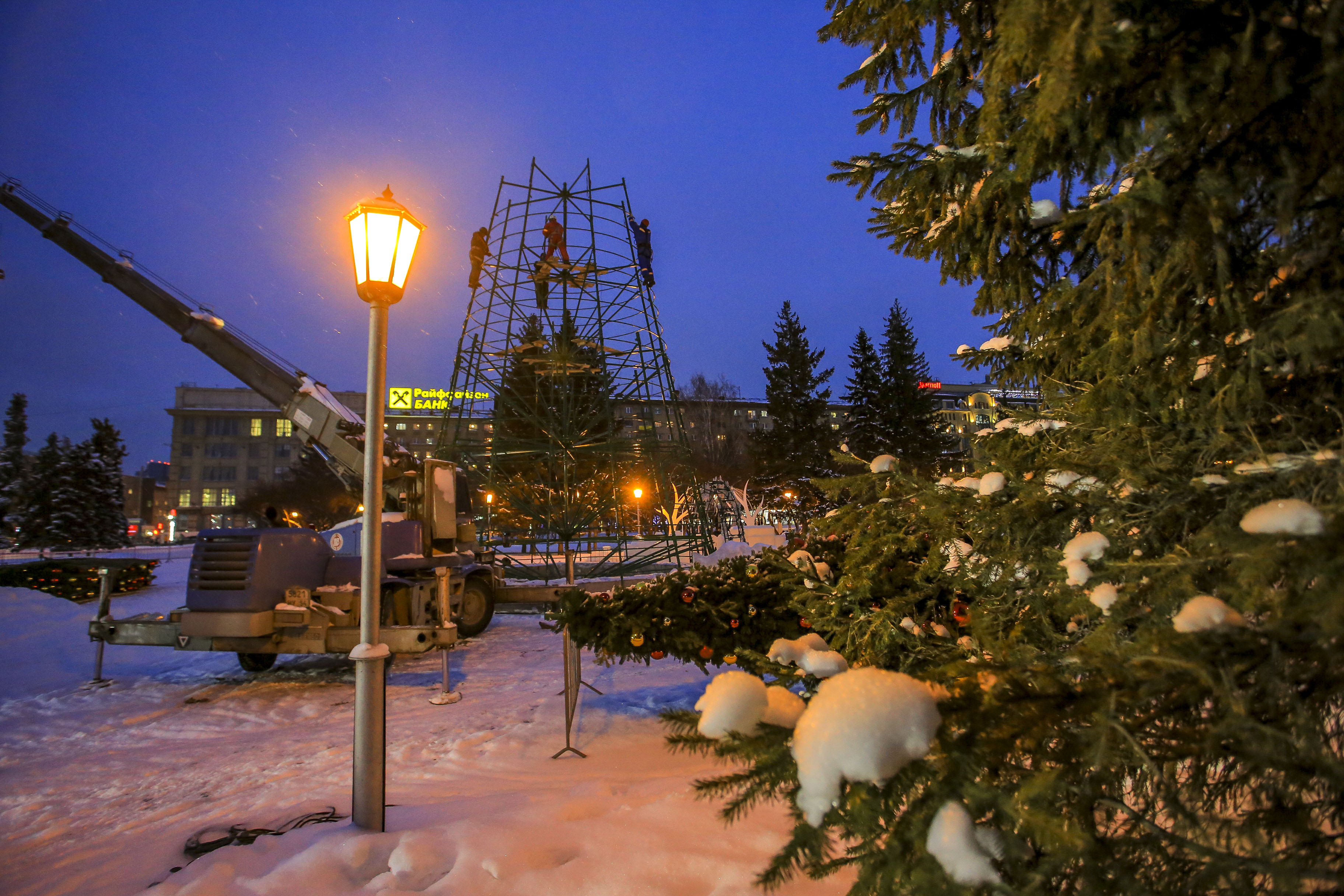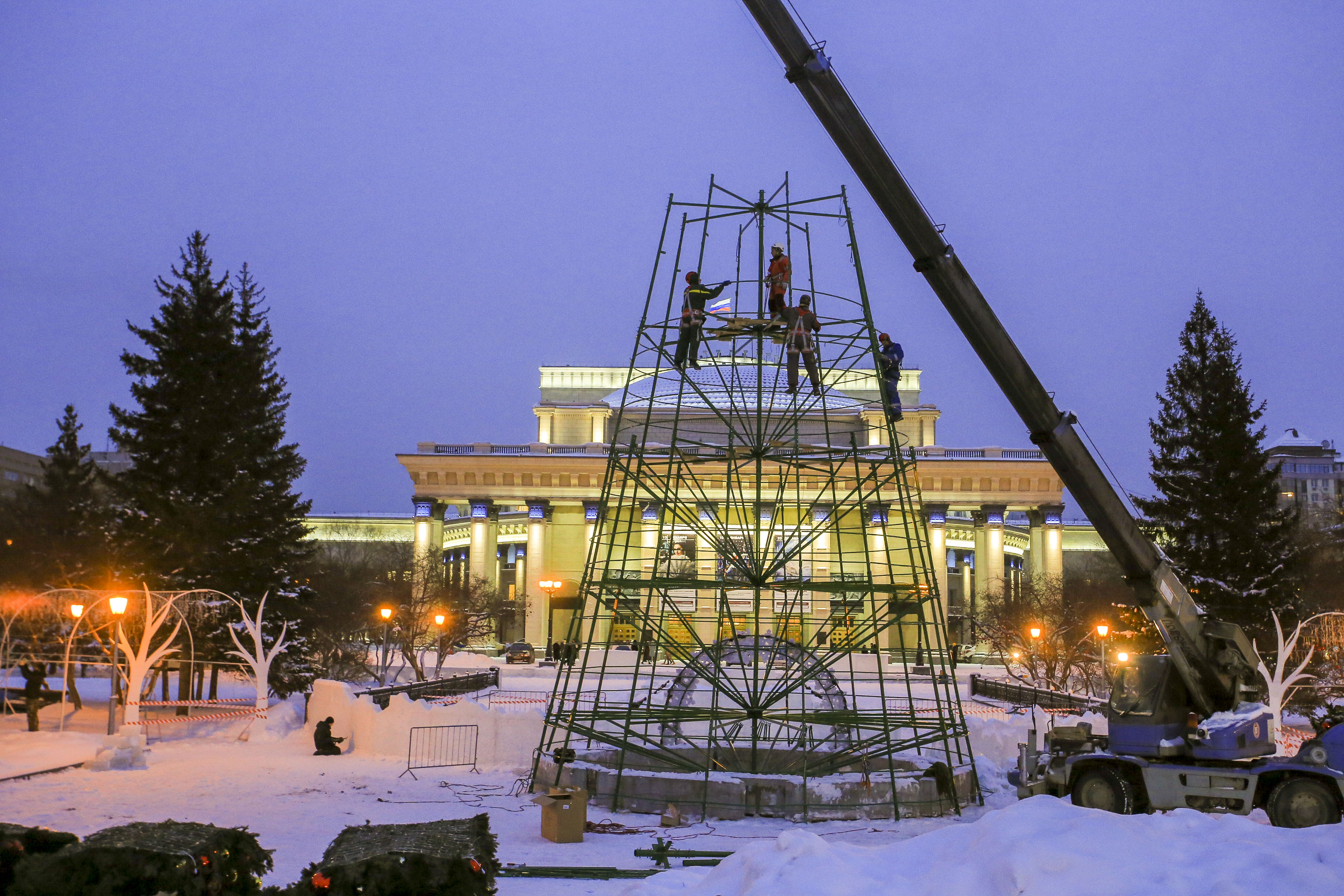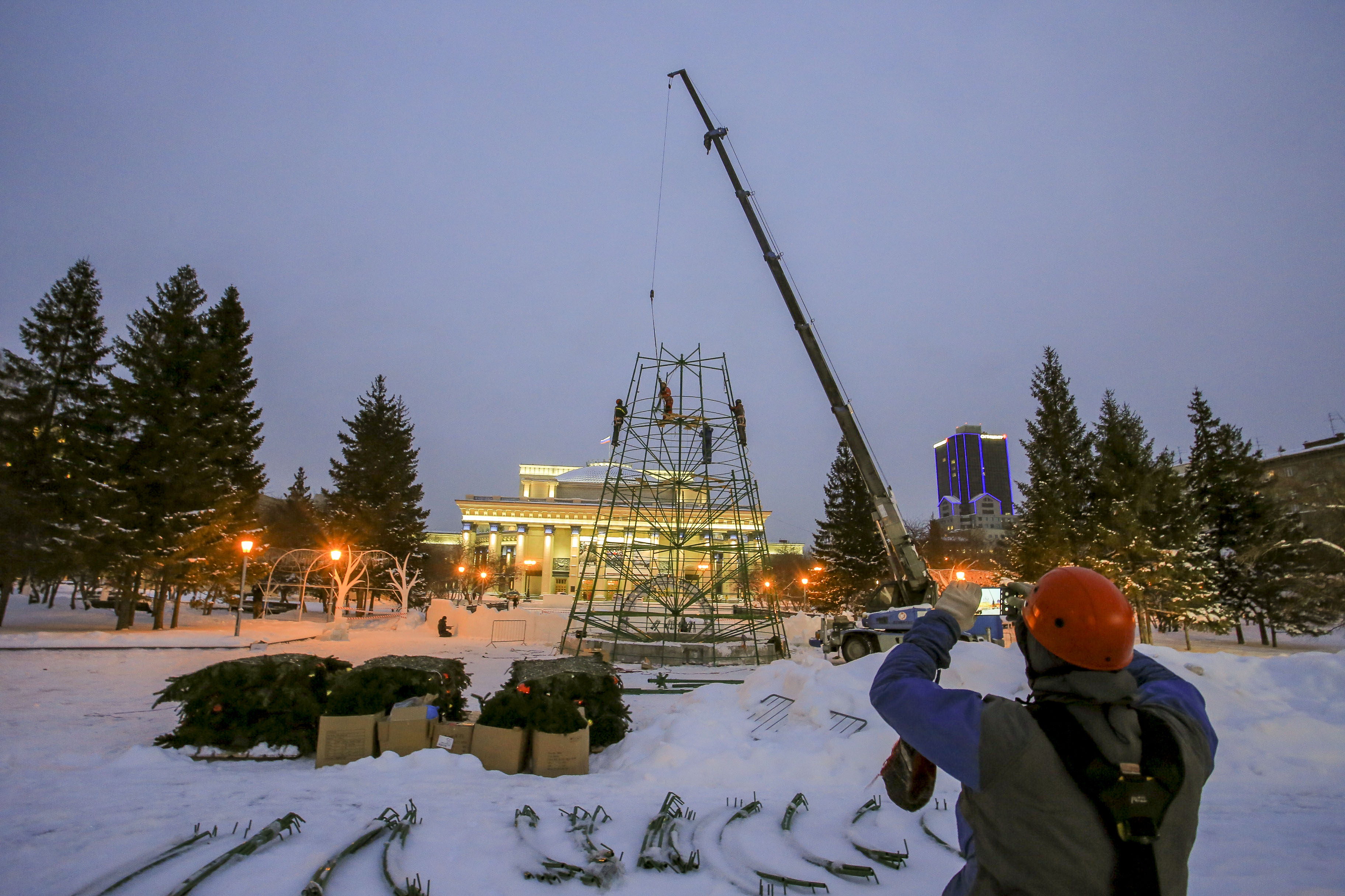 Главную городскую ёлку собирают на площади Ленина в Новосибирске