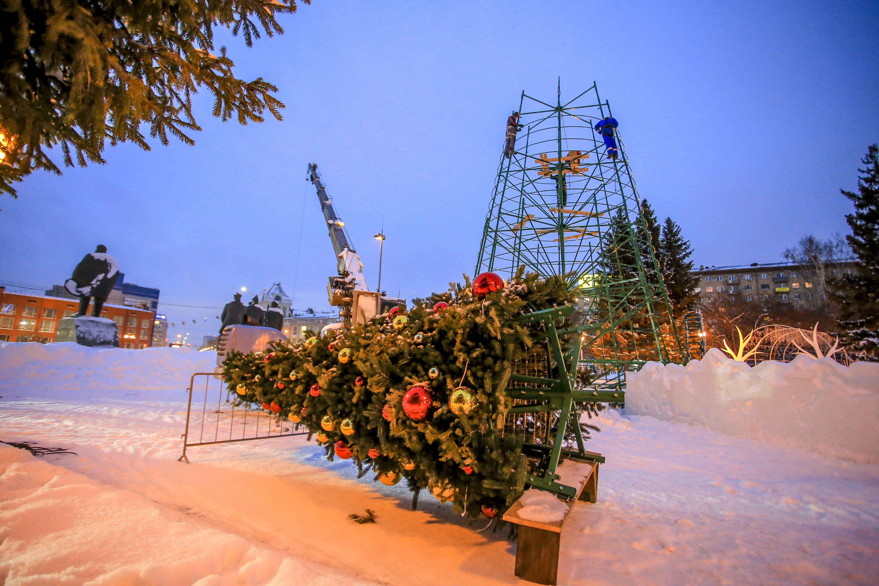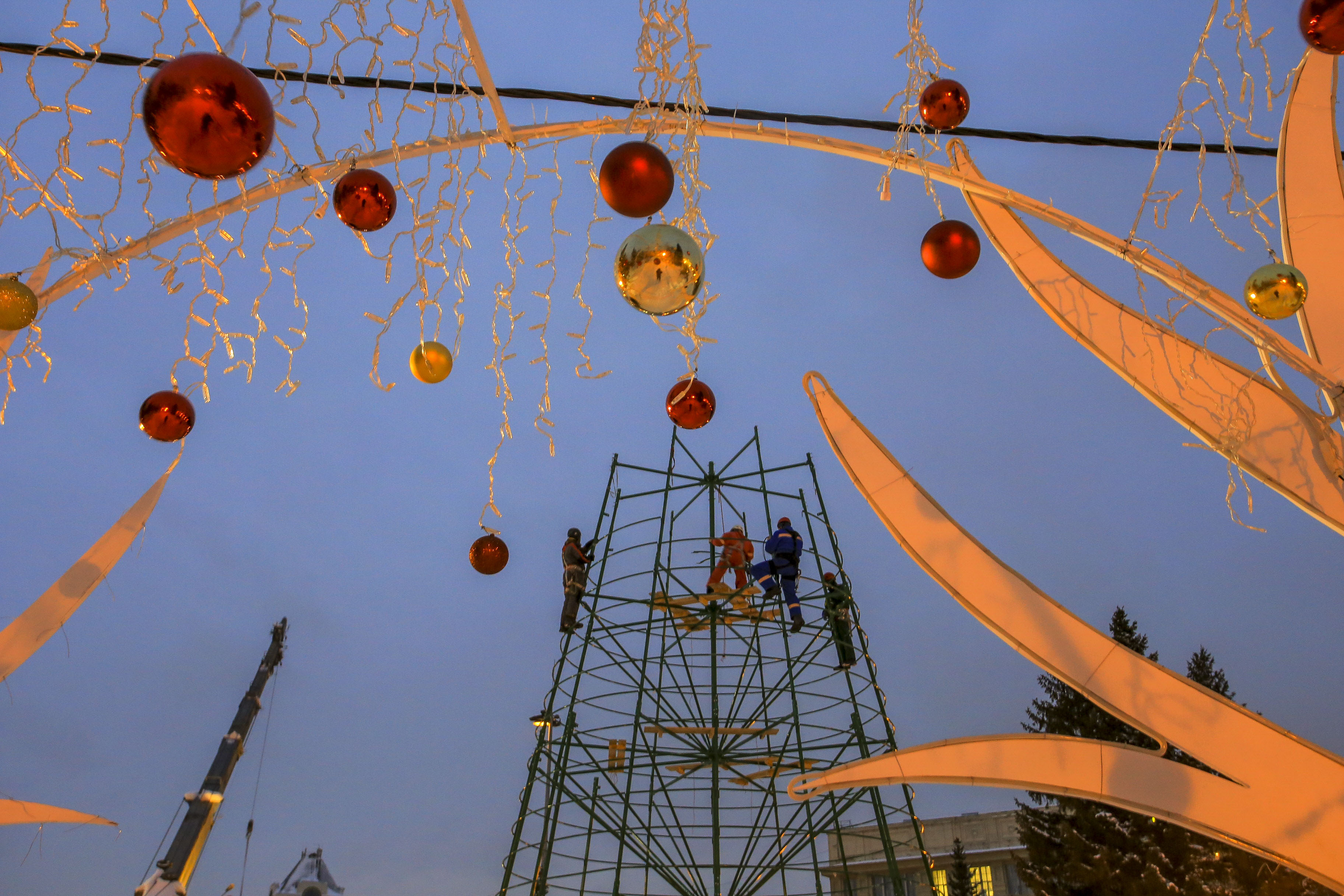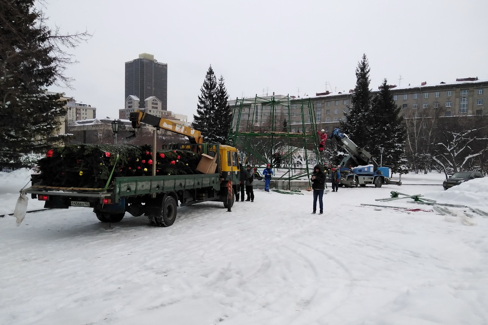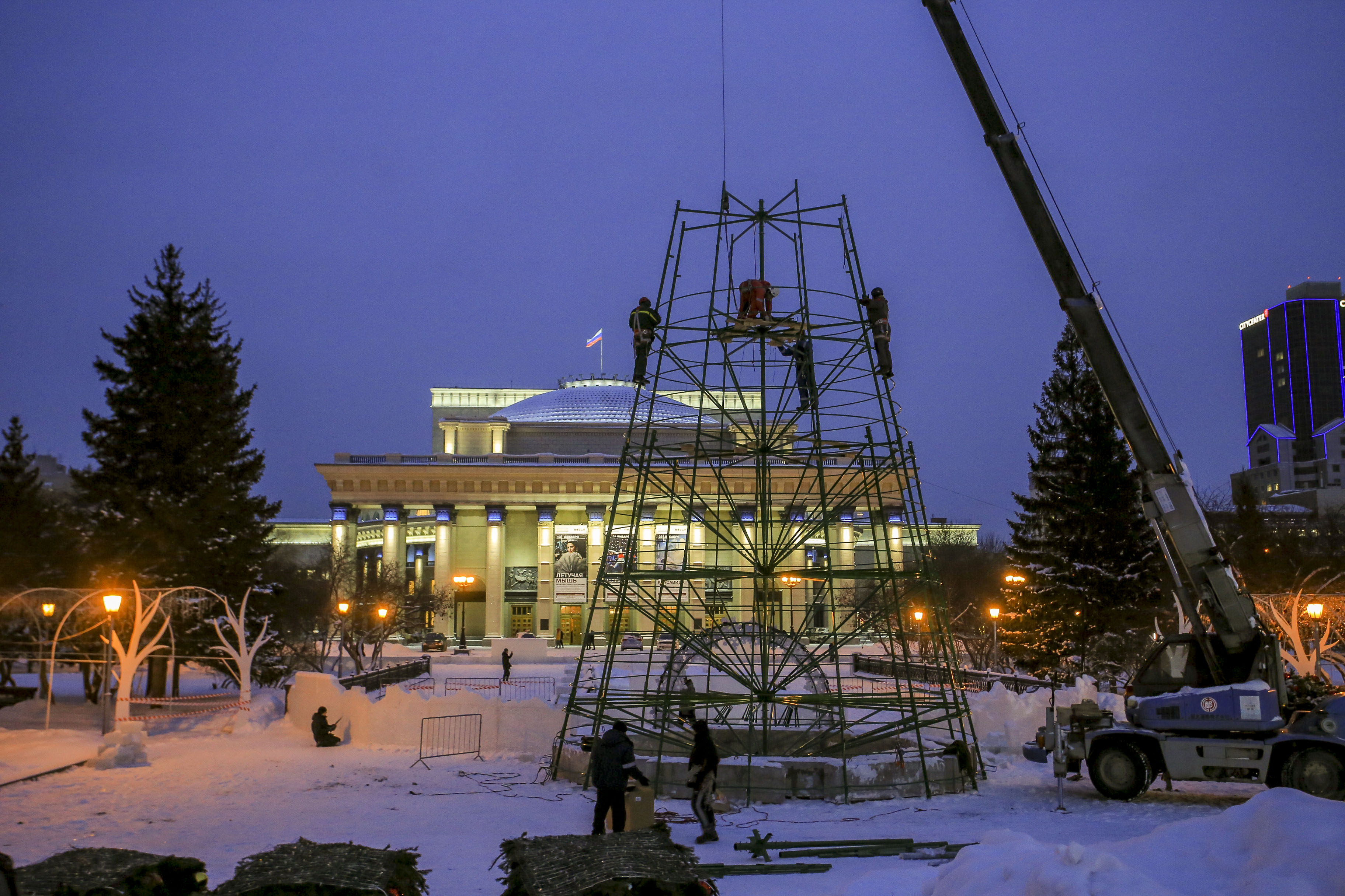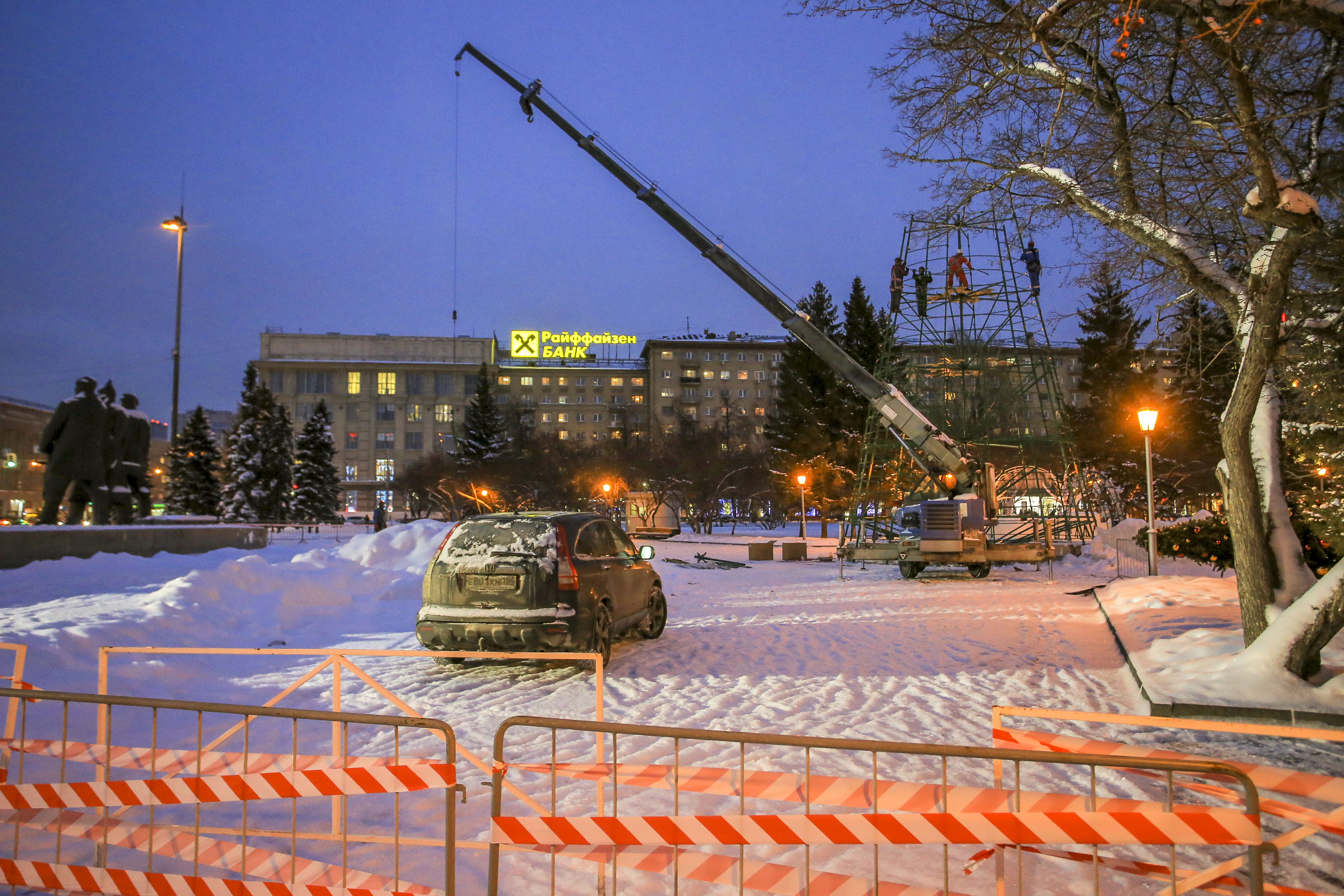 Главную городскую ёлку собирают на площади Ленина в Новосибирске
