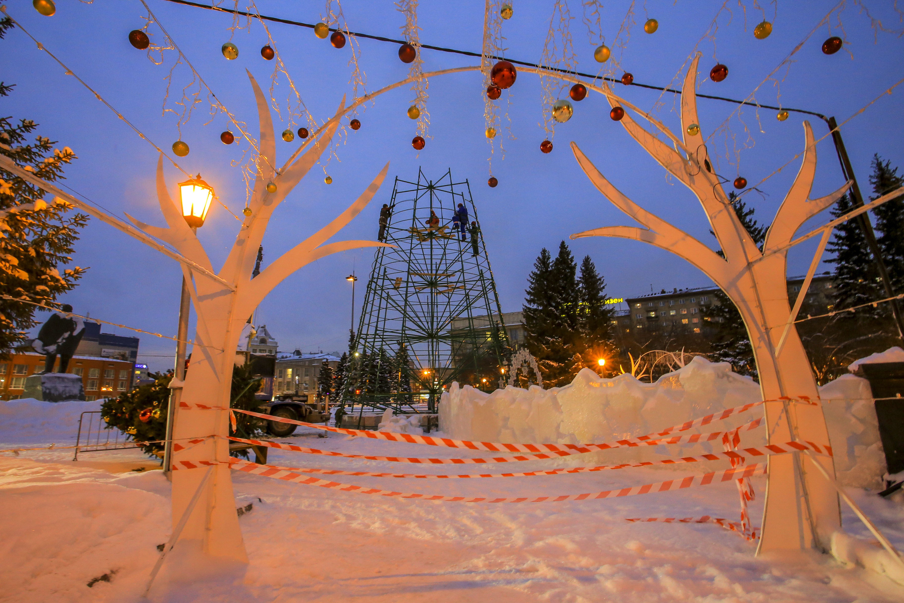 Второй год подряд ледовый городок с ёлкой и катком обустраивают в Театральном сквере, а не на парковке перед «Аркадой».