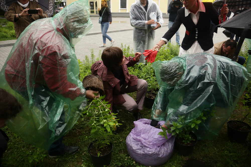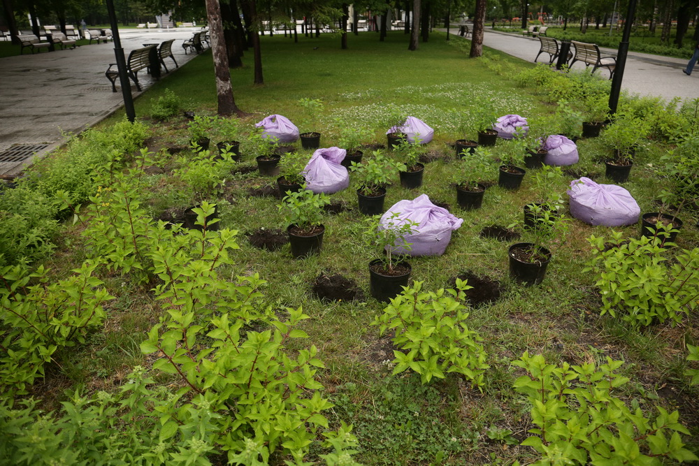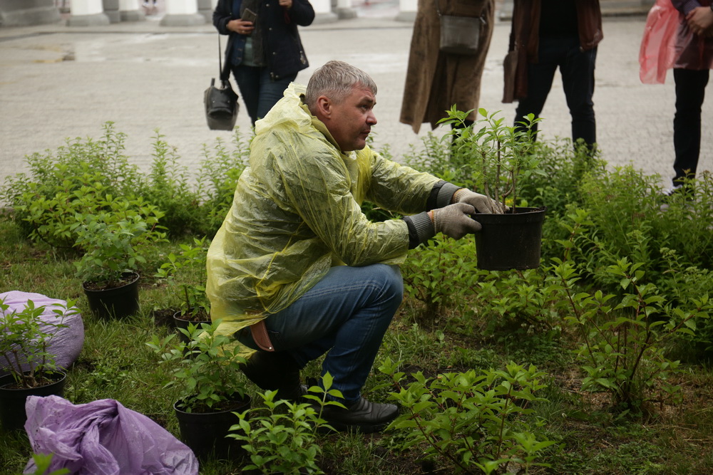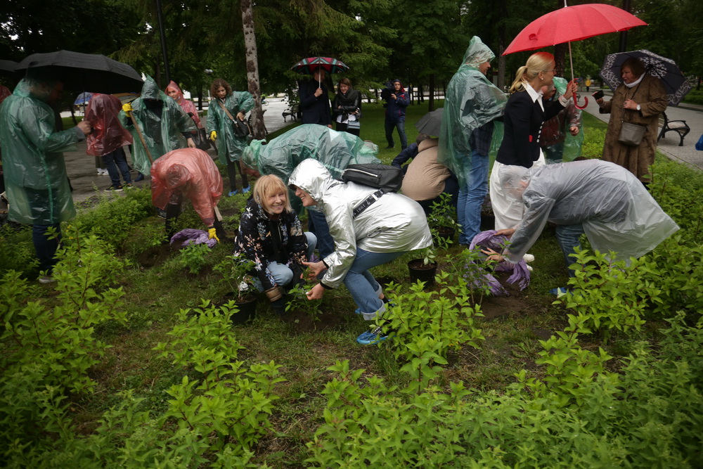 В День памяти и скорби в Центральном парке высадили 25 кустов гортензии. Засучив рукава и надев перчатки, здесь работали главные архитекторы регионов страны. В Новосибирск приехали на заседание, однако готовы не только обсуждать проблемы за столом, но и украшать город на практике.