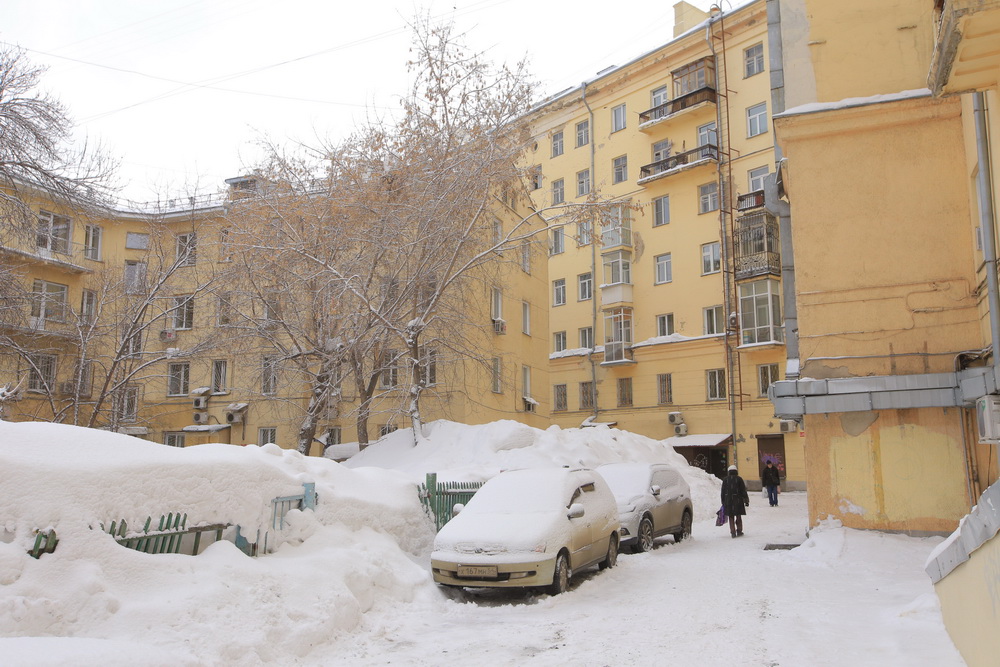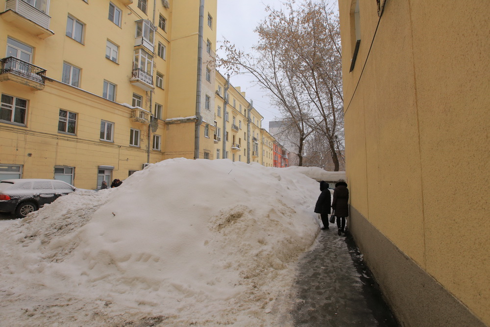 Гора снега с двухэтажный дом образовалась во дворе в центре Новосибирска