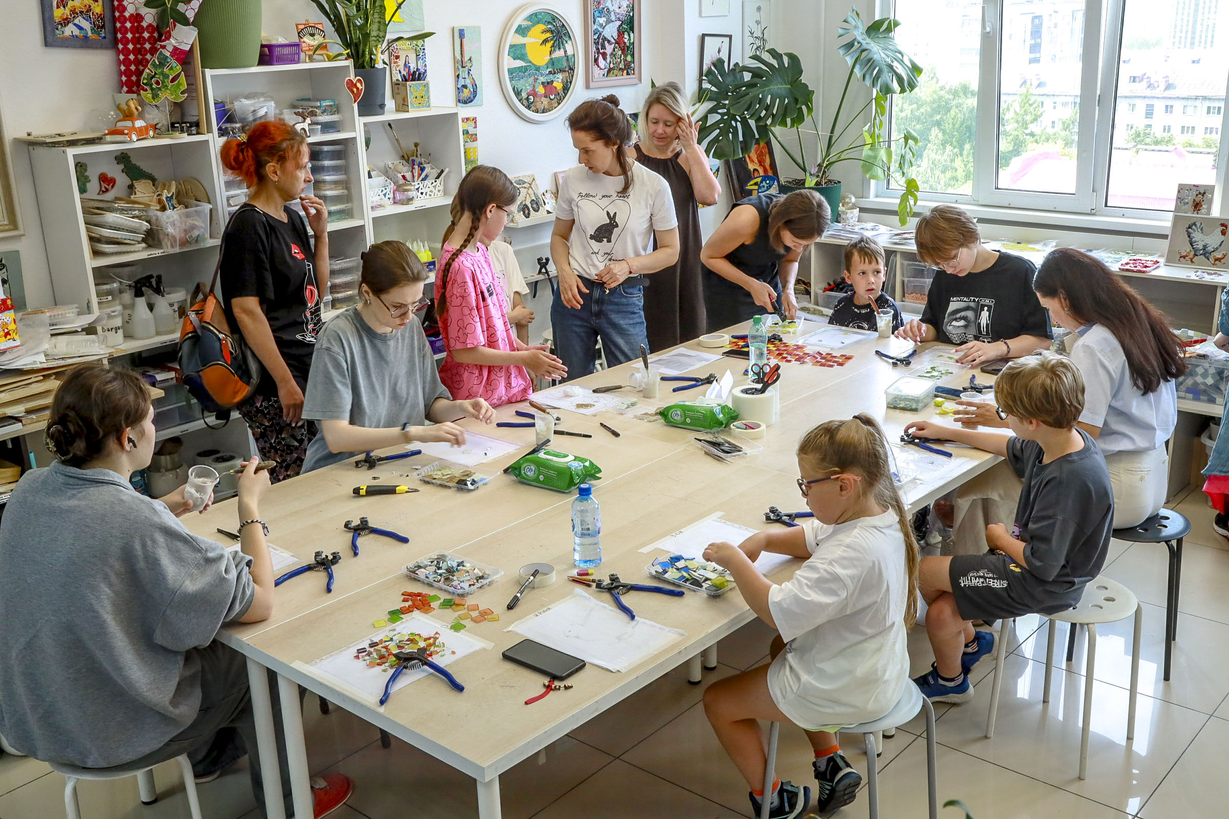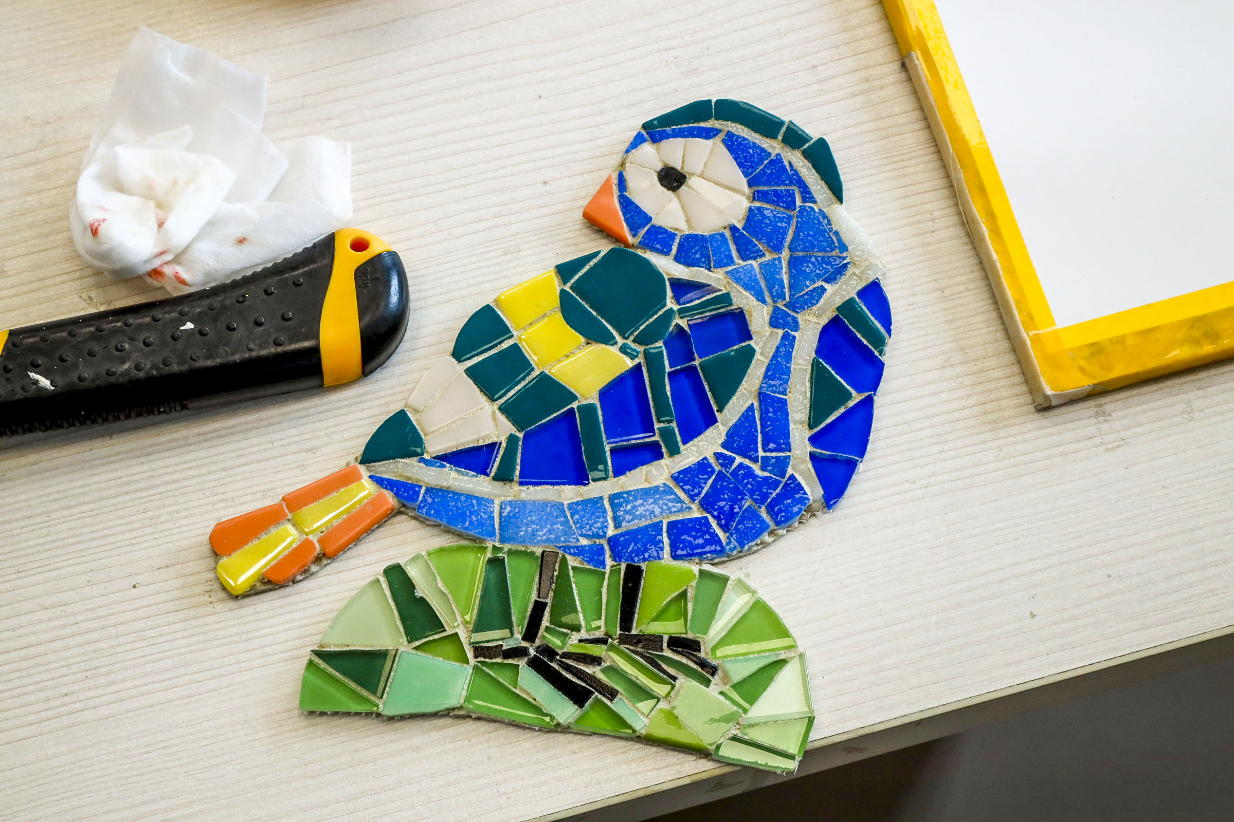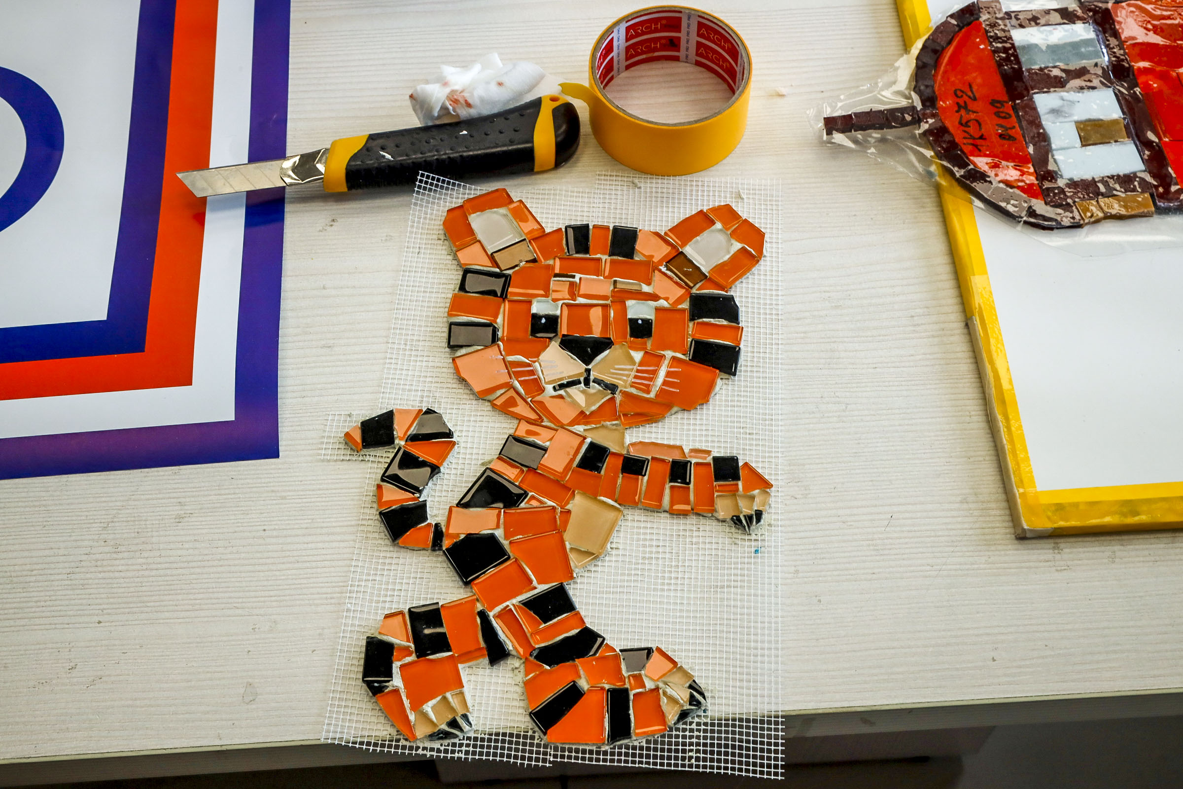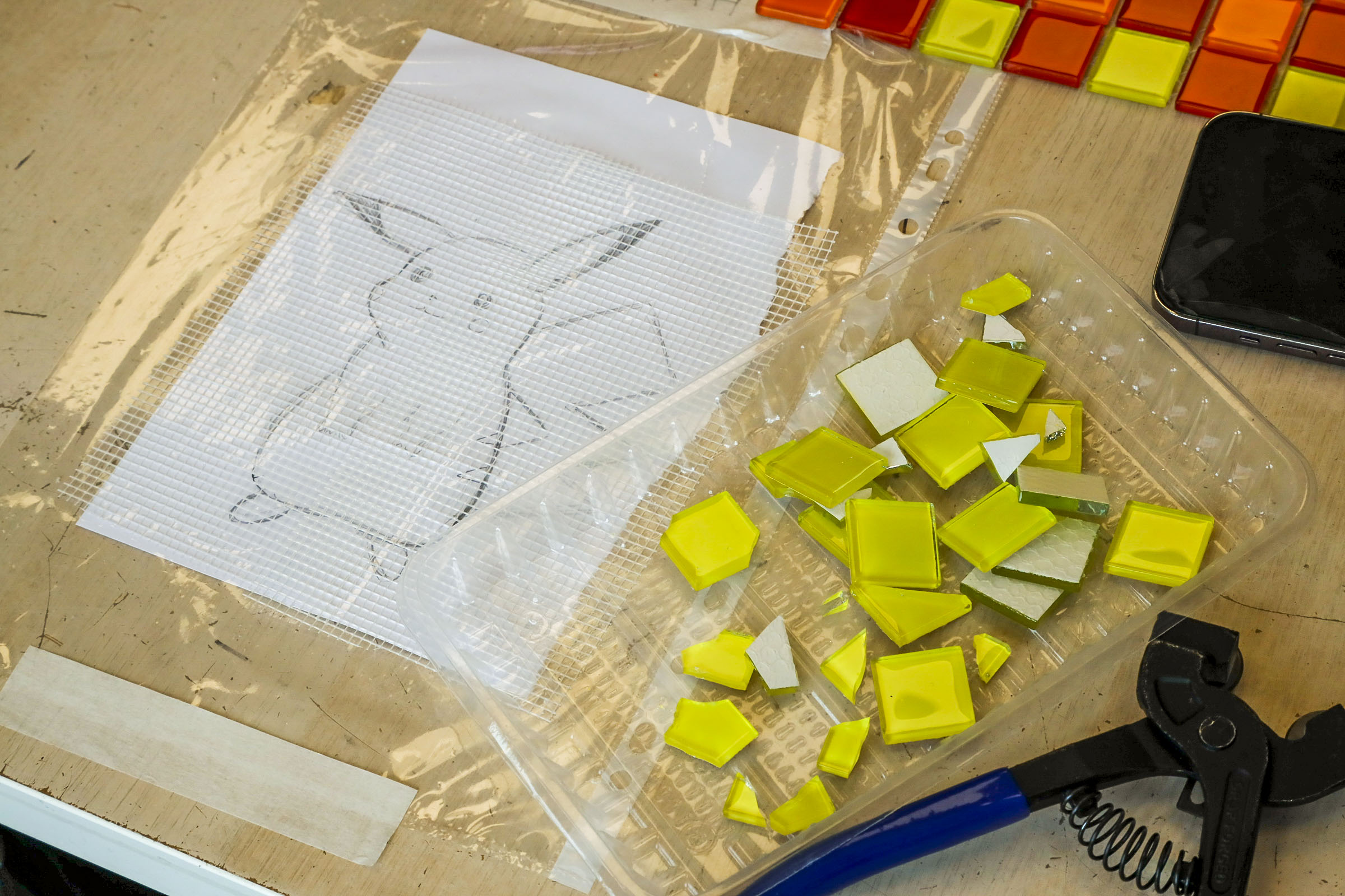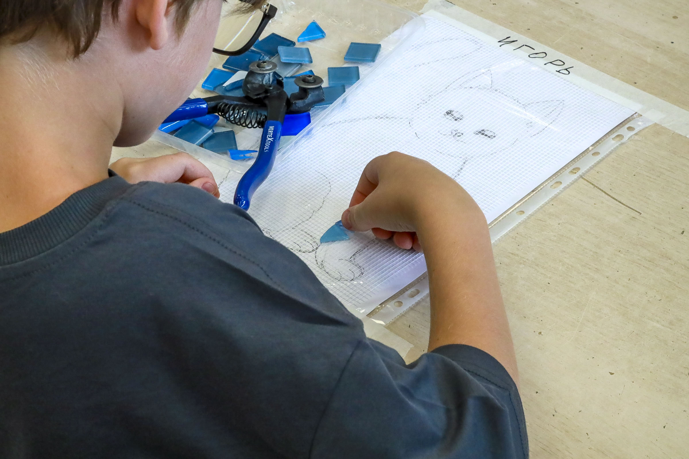 Во втором, независимом этапе пригласили участвовать всех желающих — взрослых и детей от семи лет. Они делали мозаичных собак, кошек, птиц, бабочек и белок. Более 150 фигурок животных дополнят нарисованную инсталляцию, которой окружат основной витраж.