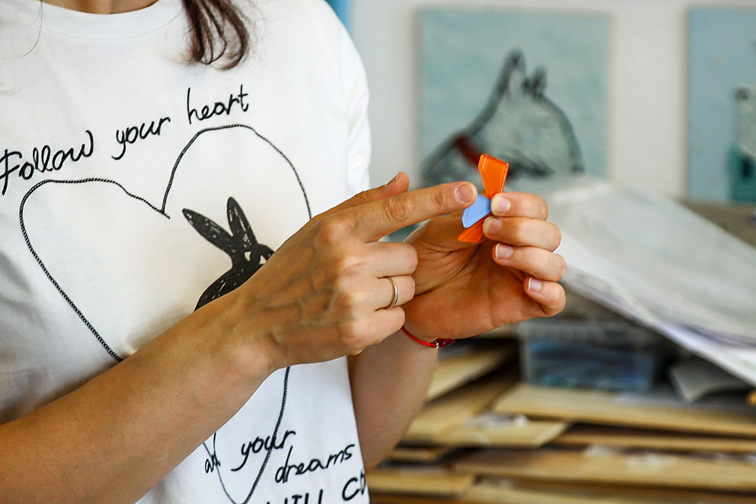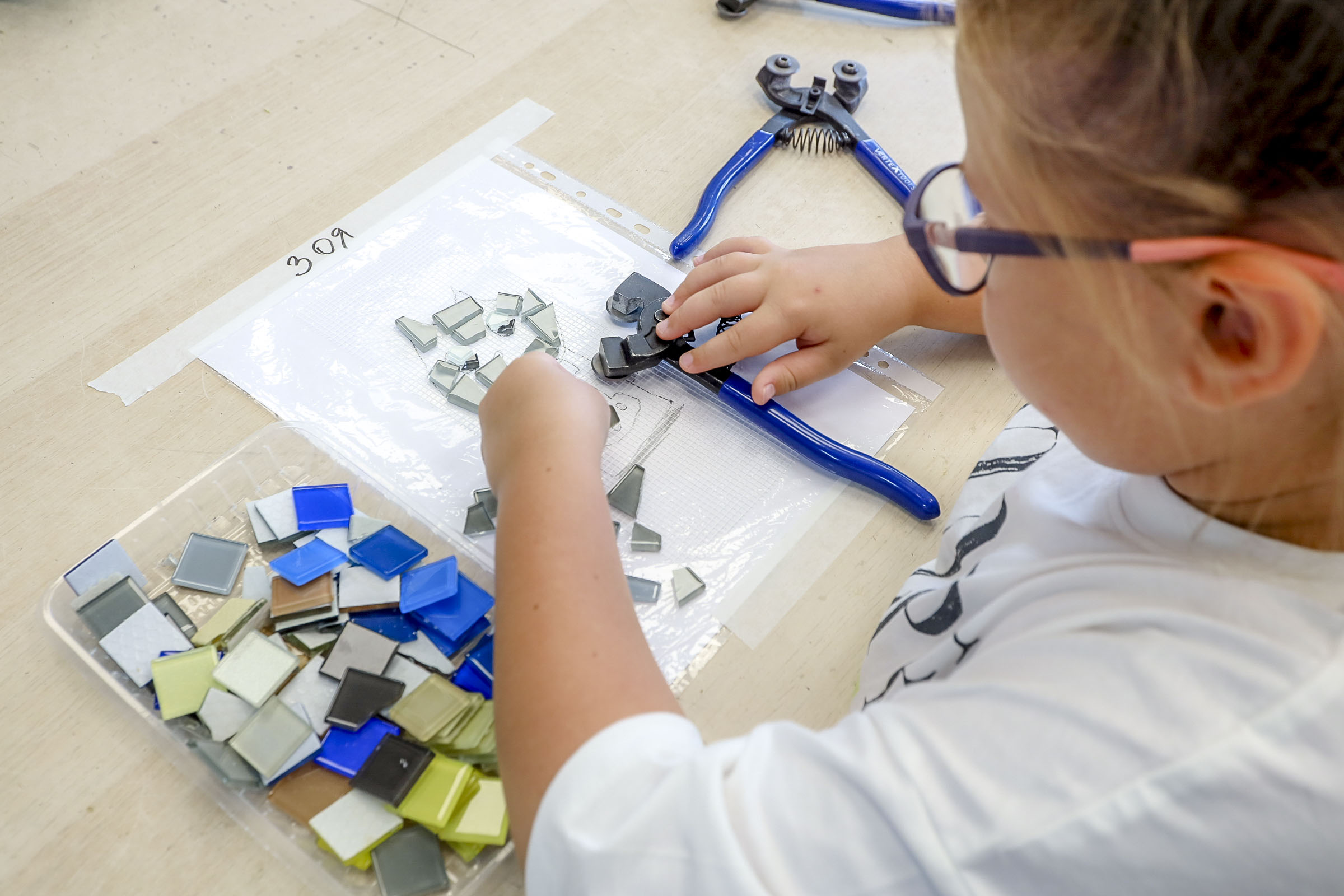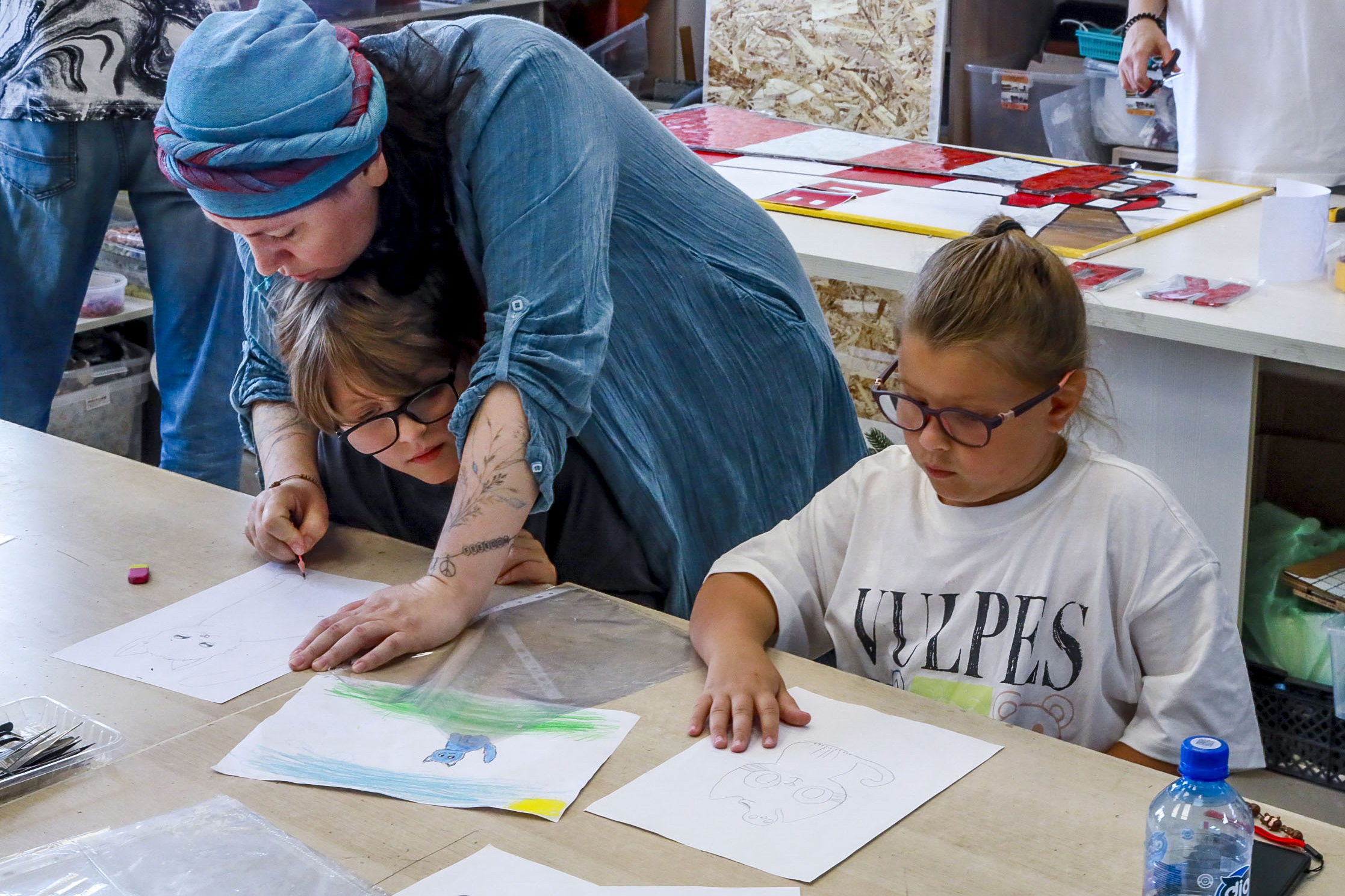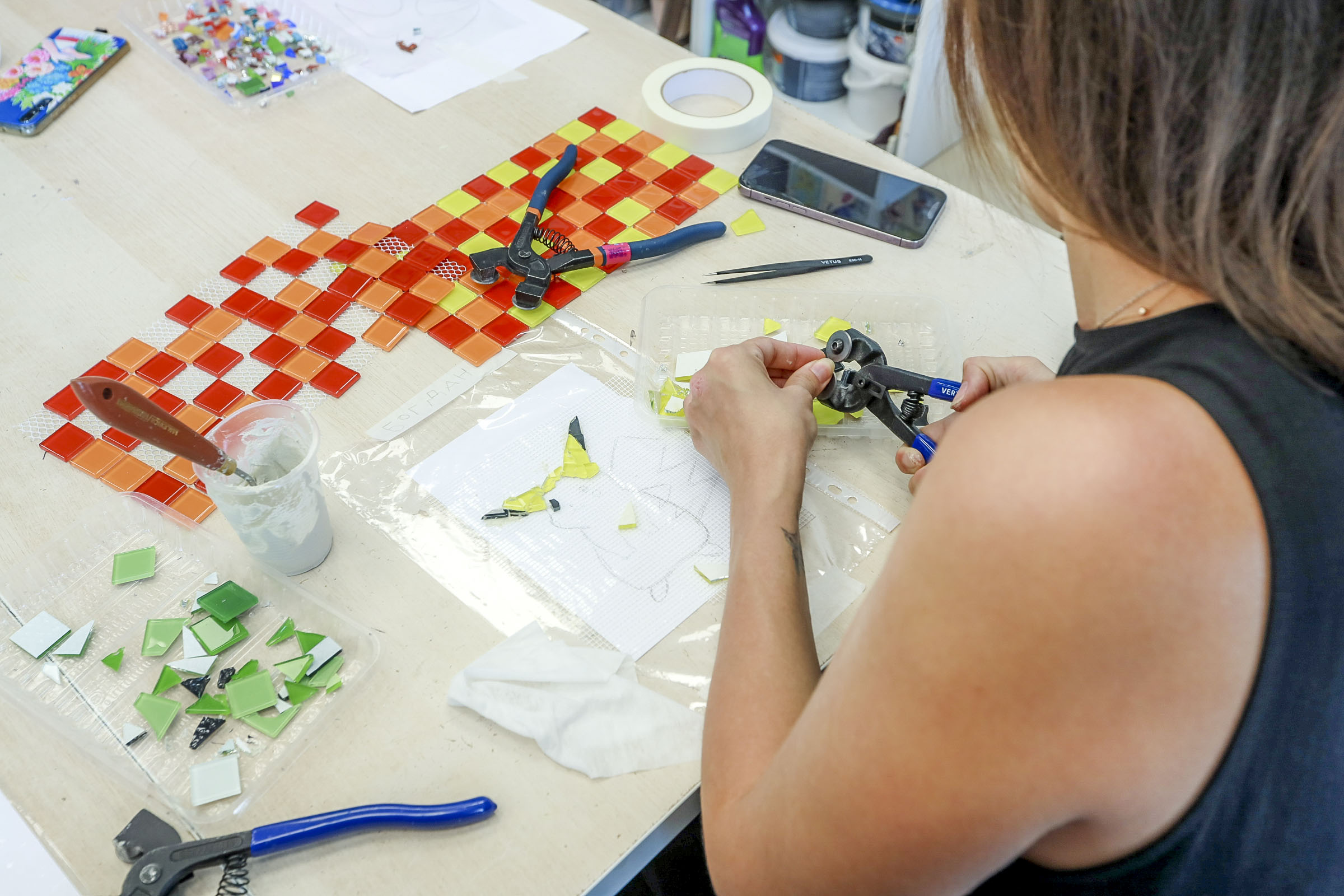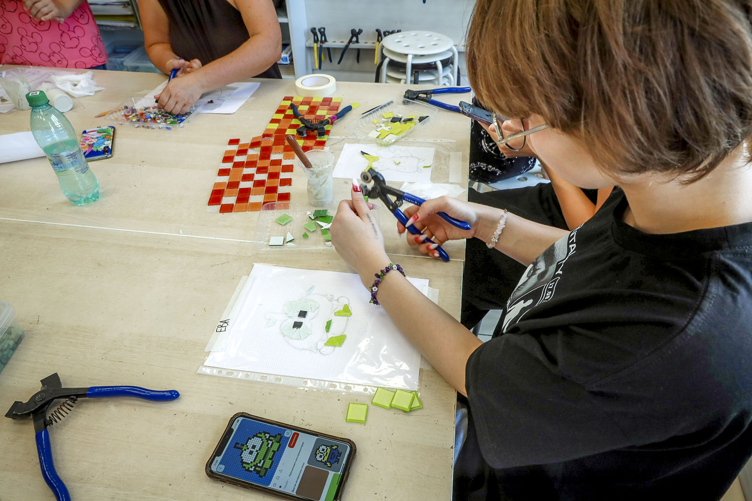 Во втором, независимом этапе пригласили участвовать всех желающих — взрослых и детей от семи лет. Они делали мозаичных собак, кошек, птиц, бабочек и белок. Более 150 фигурок животных дополнят нарисованную инсталляцию, которой окружат основной витраж.