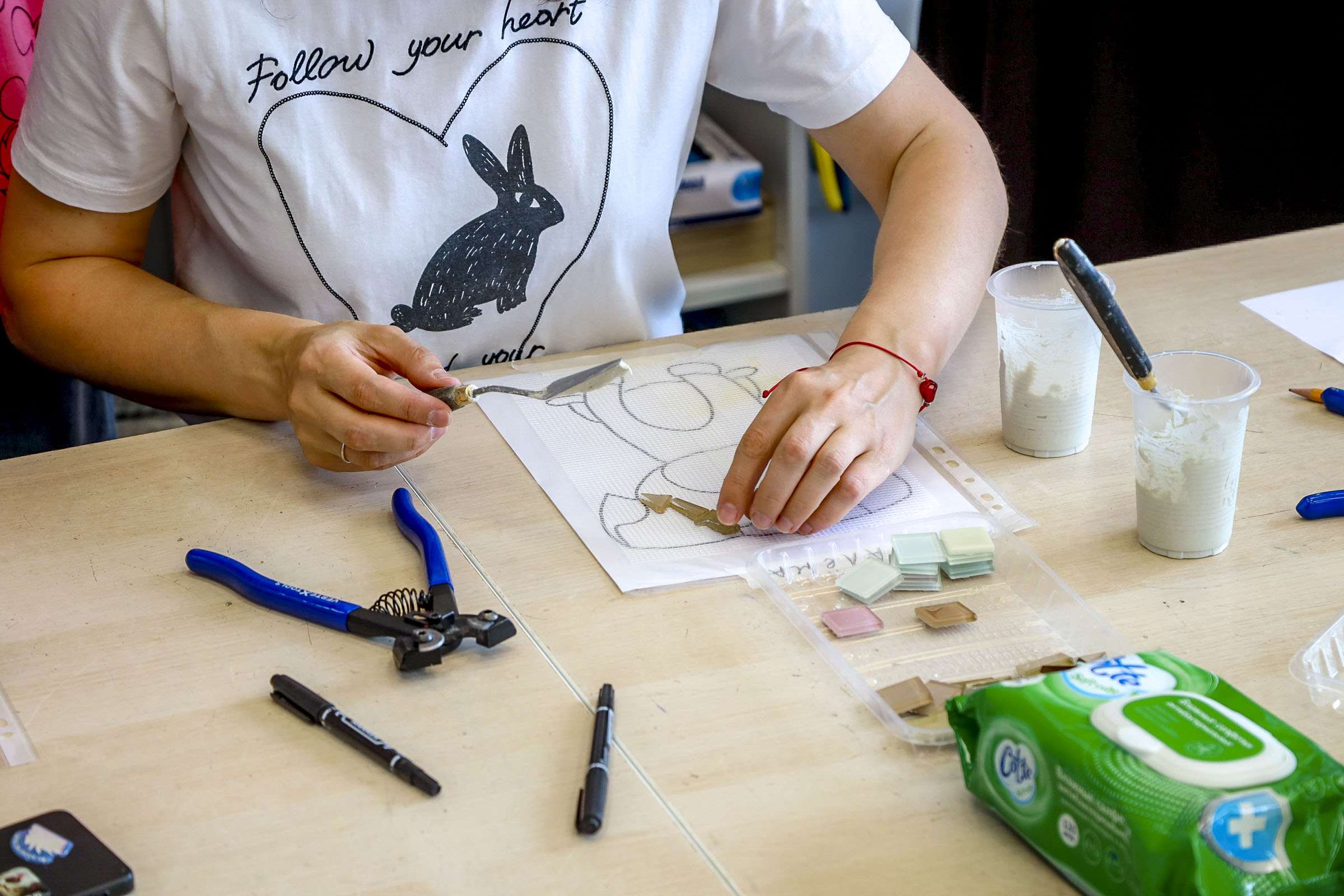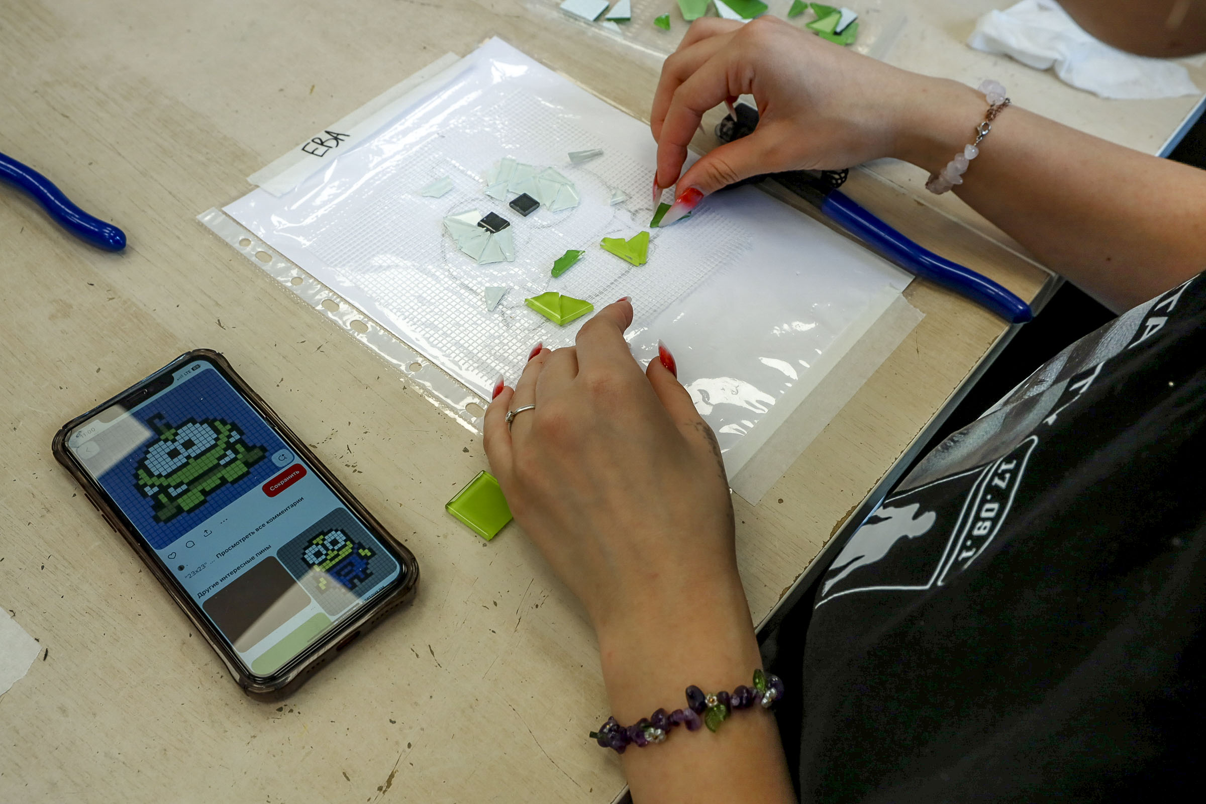 «На создание одного элемента уходит где-то три часа. У кого-то получаются очень детализированные картинки, с настоящими инкрустациями, кто-то, наоборот, предпочитает масштабные. Ограничиваем только по размеру — не больше А4 формата, творческую фантазию приветствуем», — уточняет мозаист.