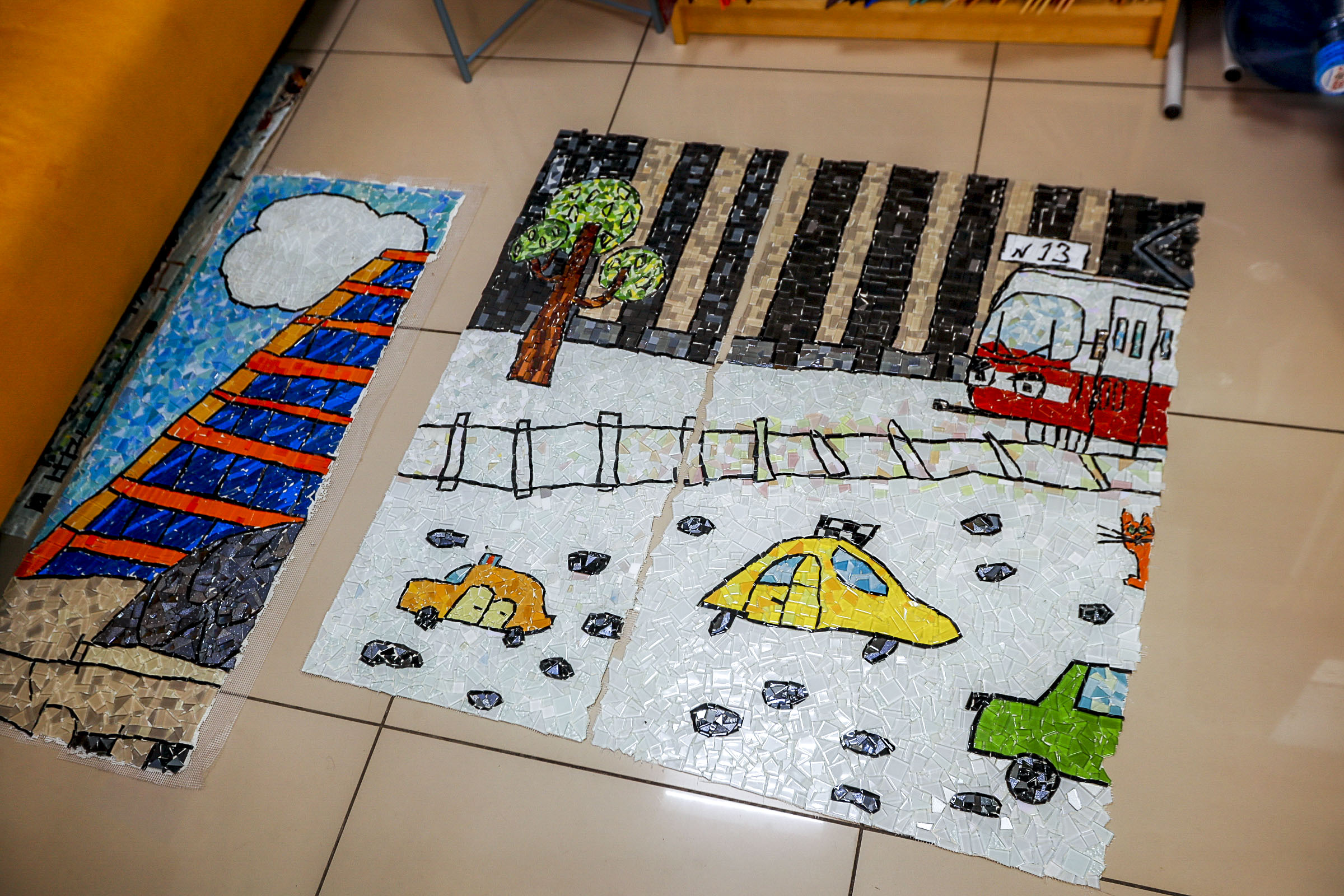 «Очень похоже, как будто это рисовал ребёнок. Очень стильно! Мы постарались эти неровные кривые линии выдержать, и в мозаике получилось очень интересно», — говорит Галина Машнёва.