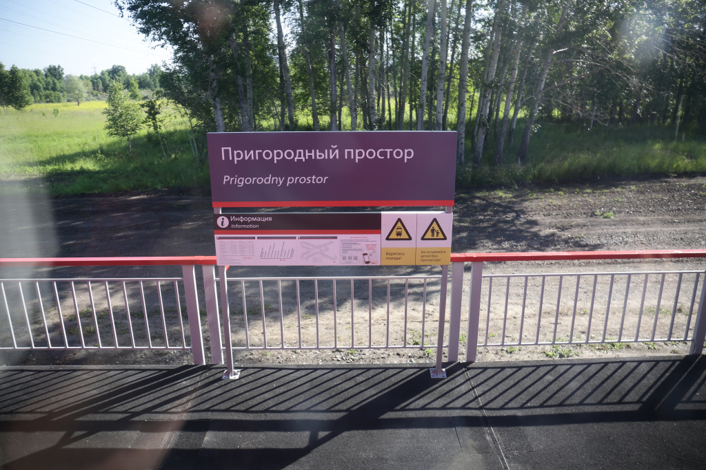 Пригородный простор — остановка городской железной дороги. Зал ожидания. Тут же можно купить билет. Потом — через шоссе. Пешеходный переход: светофор с кнопкой, отсыпанная дорожка.