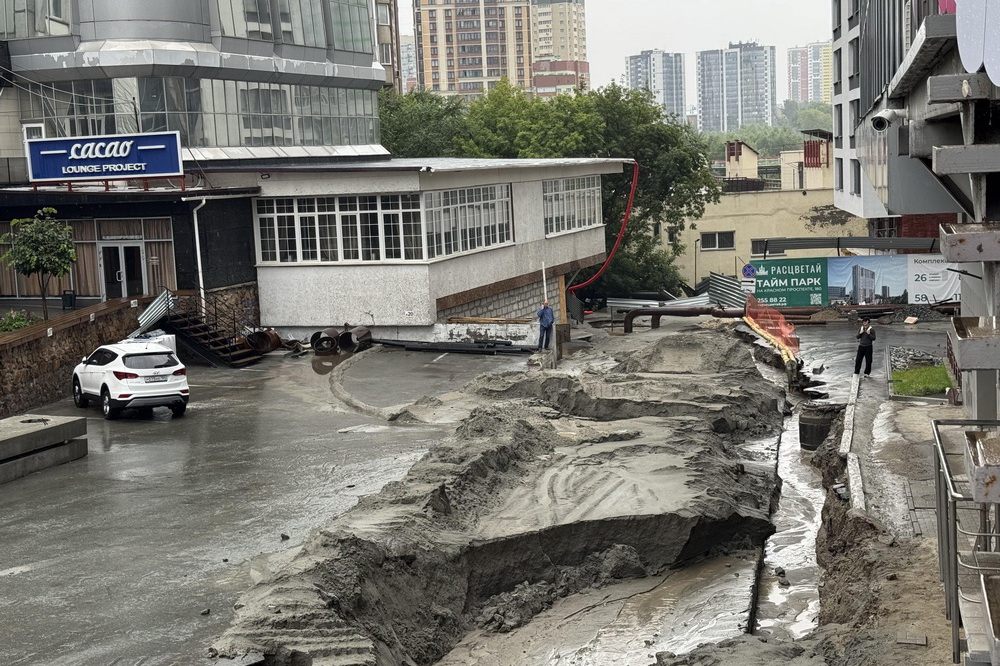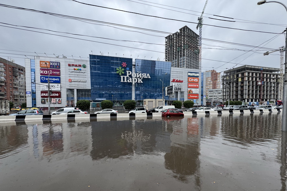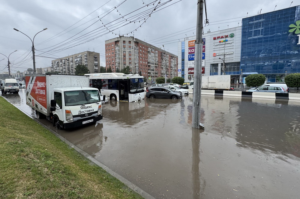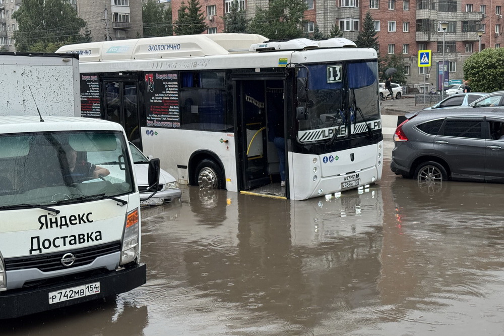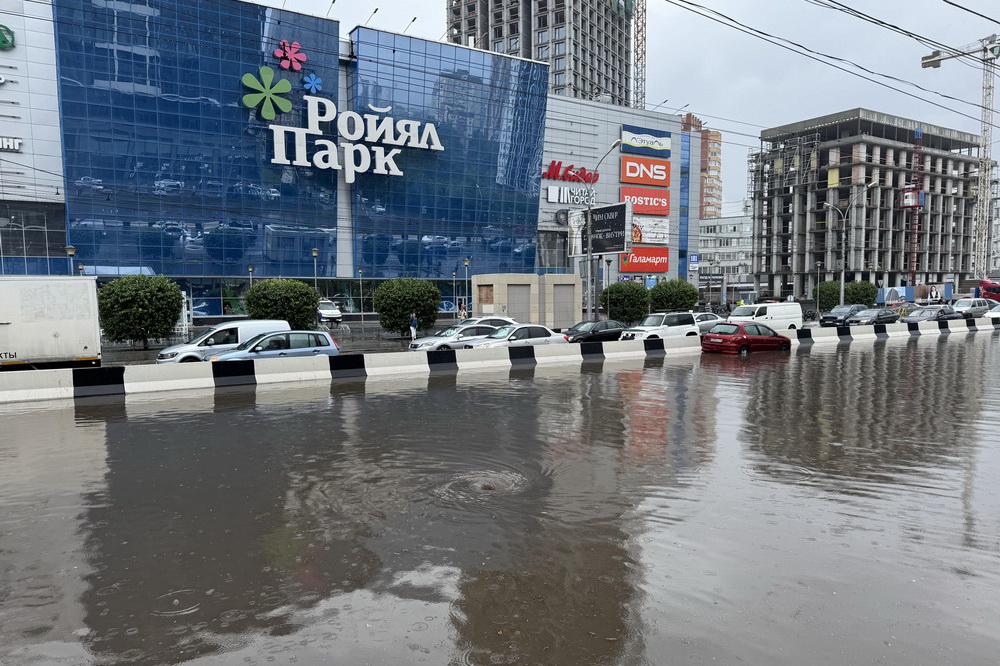 Сильный дождь накрыл Новосибирск днём 15 июля. Город залило водой, в некоторых местах затопило дороги. Уличную инфраструктуру восстанавливают бригады ДЭУ.