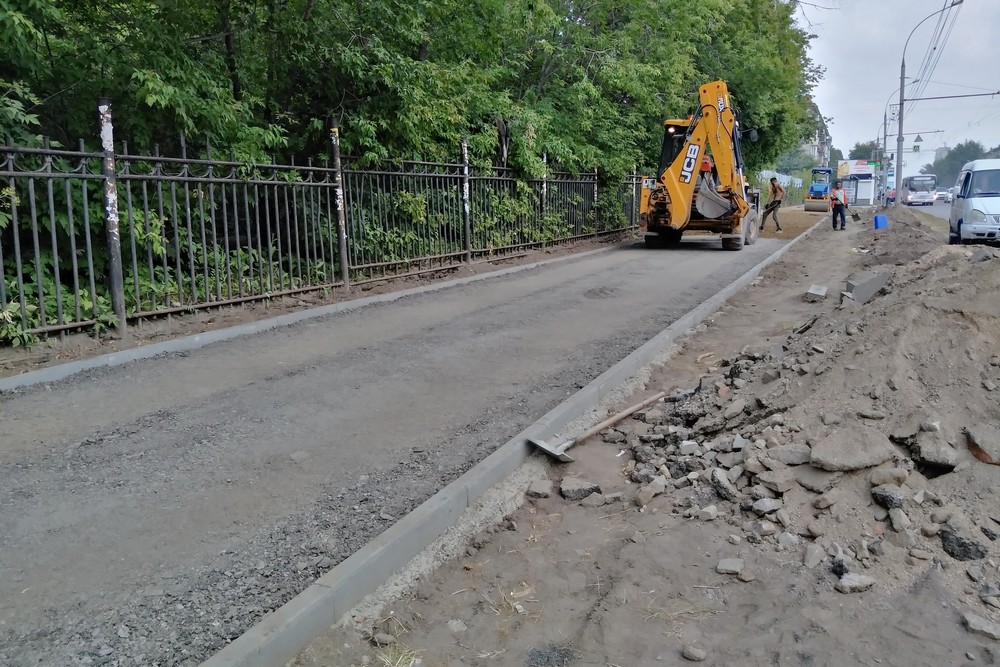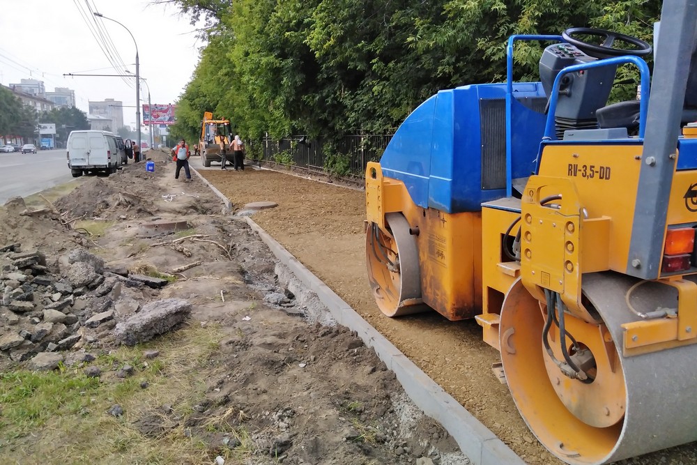 Сейчас бригада дорожников укладывает покрытие на широкий тротуар вдоль территории 34-й больницы — от улицы Серафимовича до Костычева. На месте работают миниатюрный каток и погрузчик.