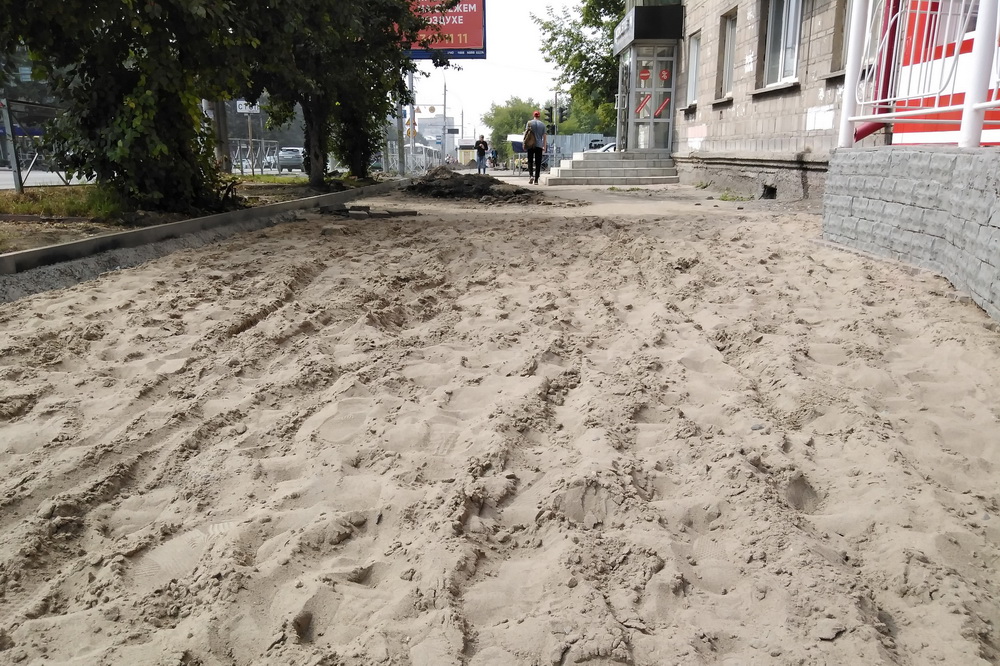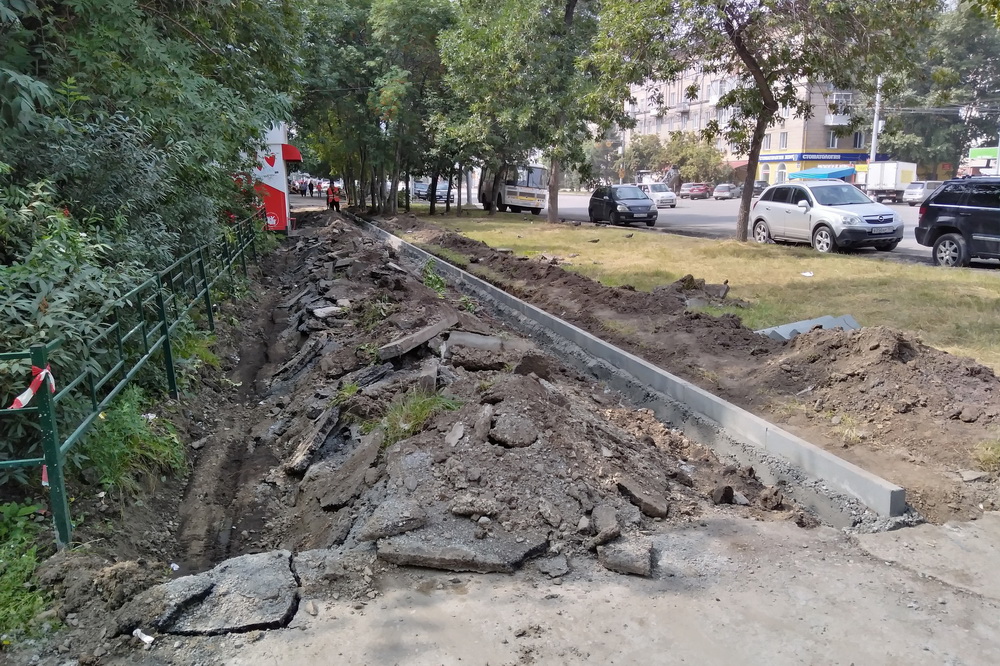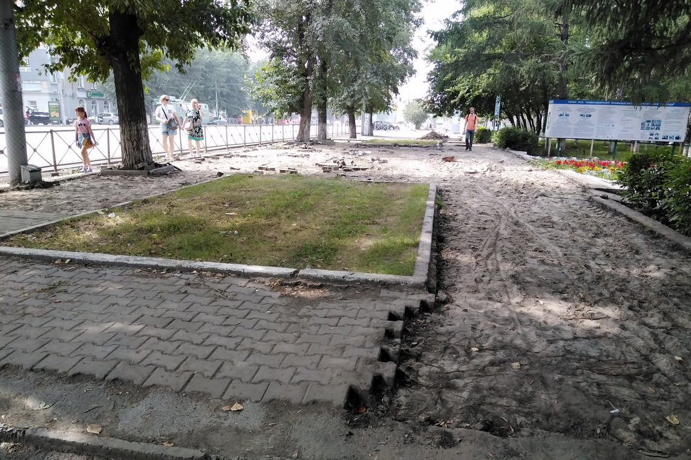 На участке улицы Титова от площади Маркса до площади Станиславского начался большой ремонт. С проезжей части сняли верхний слой асфальта, а тротуары и поребрики разобрали, поэтому в некоторых местах пешеходам приходится искать альтернативные пути.