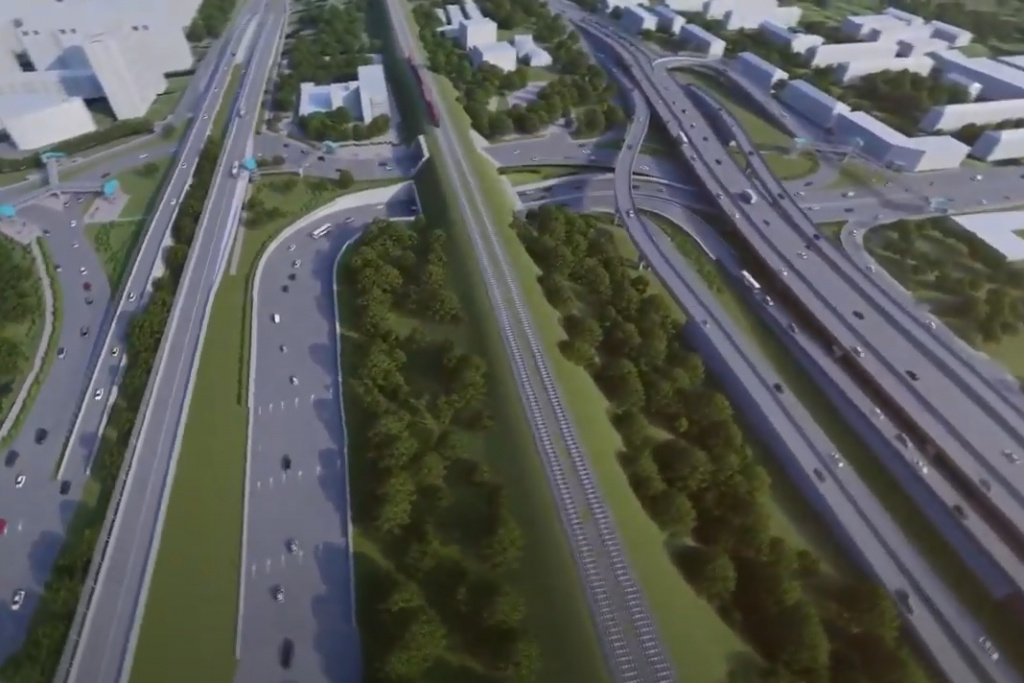 С площади Труда уберут круговое движение. Круг разорвут, сделают длинную петлю, которая пойдёт от улицы Станиславского к новому тоннелю под железной дорогой и далее на площадь Энергетиков. Там дорога расщепляется на три съезда — один ведёт к Димитровскому мосту по земле, и два идут по эстакадам: один — на Ватутина, а второй с разворотом по новой петле выходит на Станционную.