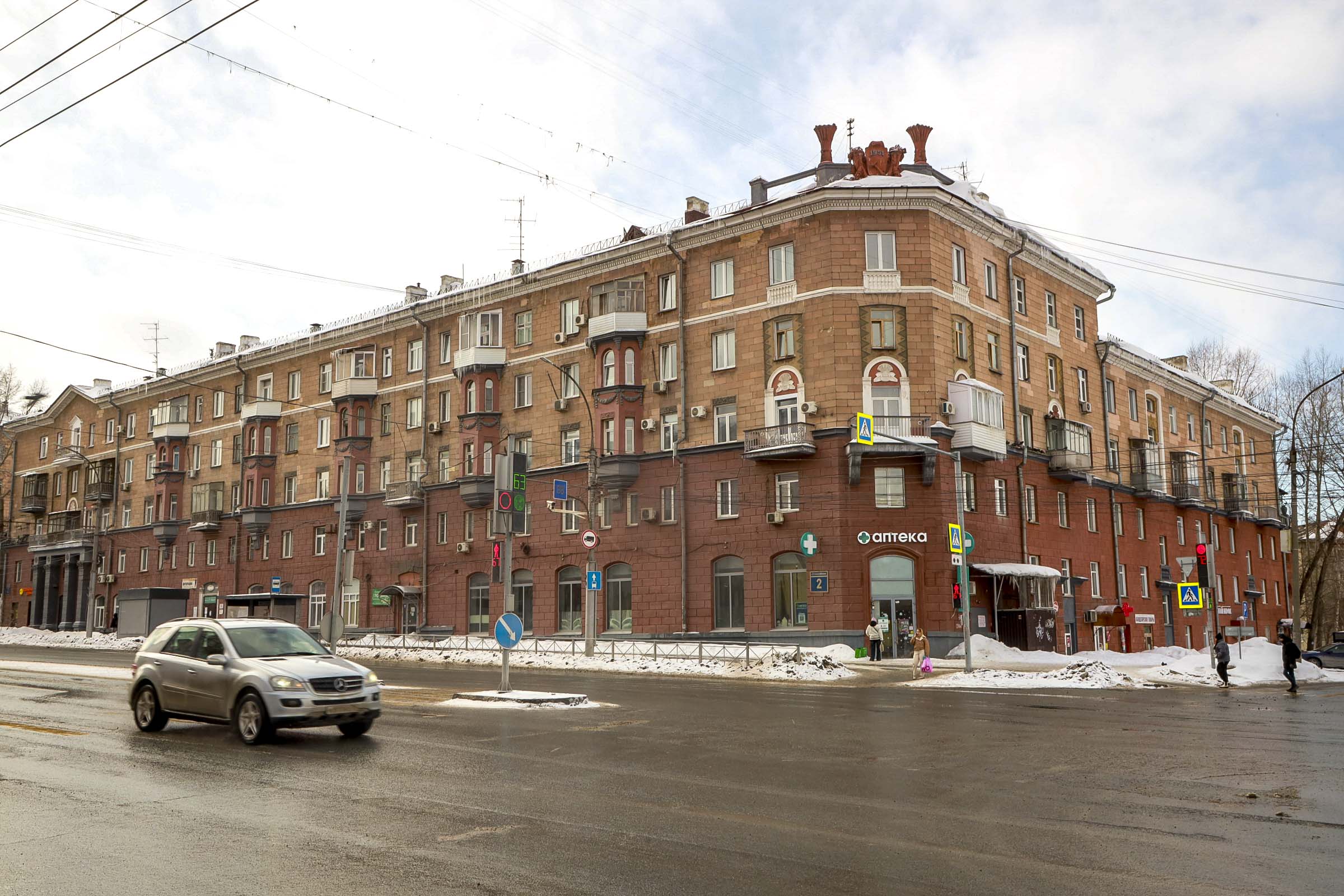 Дом «Сибметаллстроя» на Станиславского, 7 возвели в 1940 году по проекту архитекторов Владимира Тейтеля и Аркадия Баранского. Монументальное здание впечатляет своей парадностью, удивляет композицией, геометрией угловых балконов. Такое жильё создавали для начальников, передовиков производства, партработников.