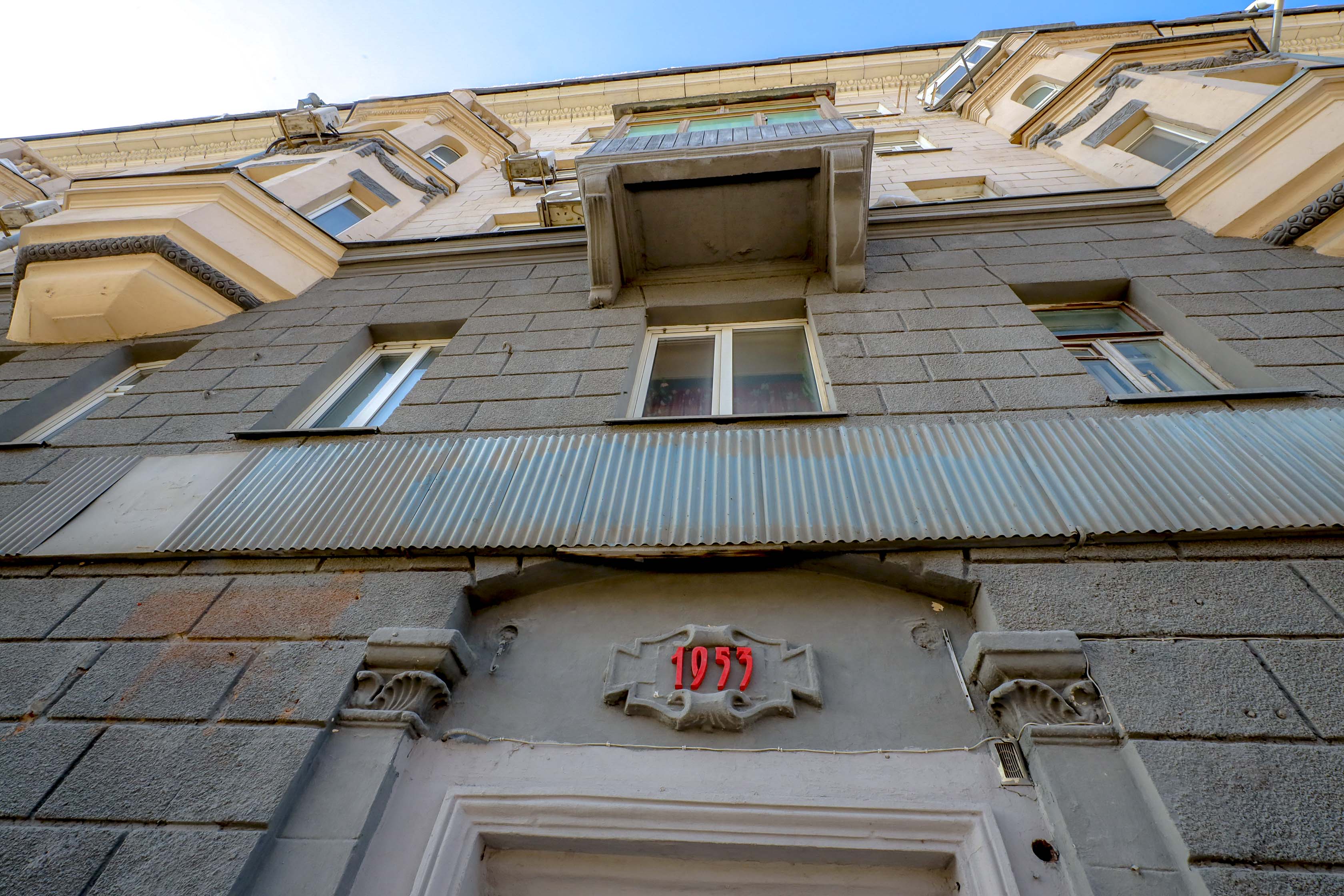 На одном из медальонов над дверями первого этажа указан год — 1953-й. Надпись выделили красным, чтобы её было лучше видно.