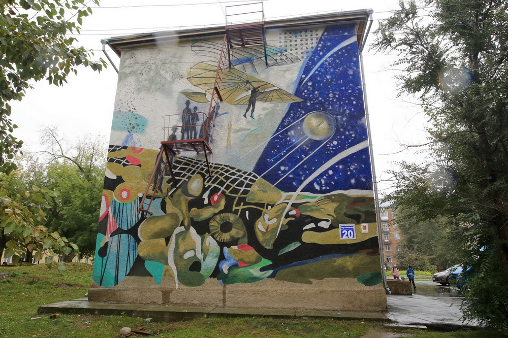 Ещё одной точкой пешеходного маршрута могут стать муралы на домах в 1-м переулке Пархоменко, 20, 24 и 28. Нарисовали эти картины в 2021 году в честь 60-летия полёта Юрия Гагарина в космос. Проект реализован участниками стрит-арт-фестиваля «Глоток космического воздуха».