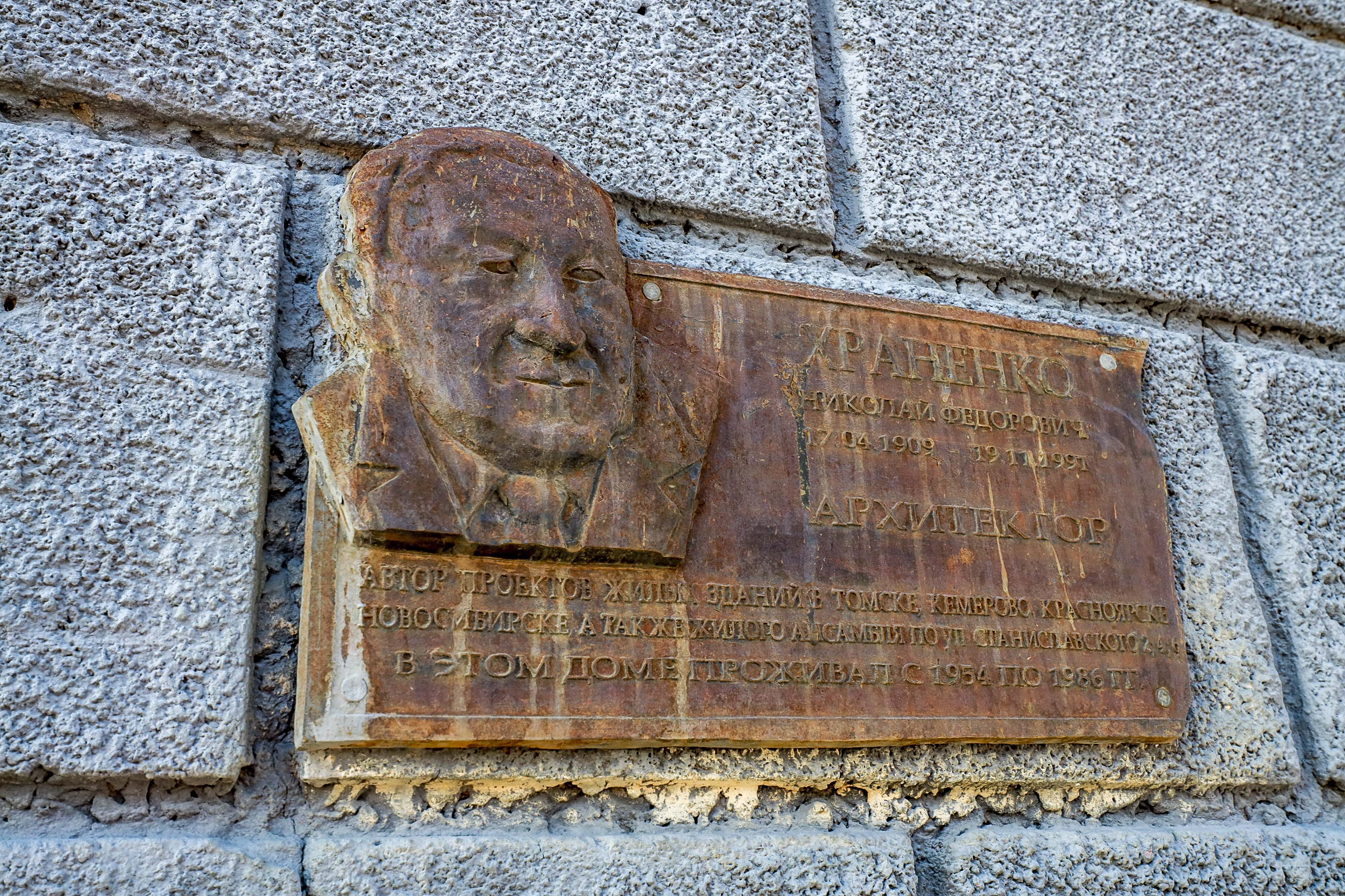 На углу пятиэтажки на Станиславского, 6 находится мемориальная доска в честь архитектора Николая Храненко с его портретом. На табличке написано, что это автор проектов жилых зданий в Томске, Кемерово, Красноярске, Новосибирске, в том числе ансамбля на улице Станиславского 2, 4, 6. В этом доме проживал с 1954 по 1986 год.