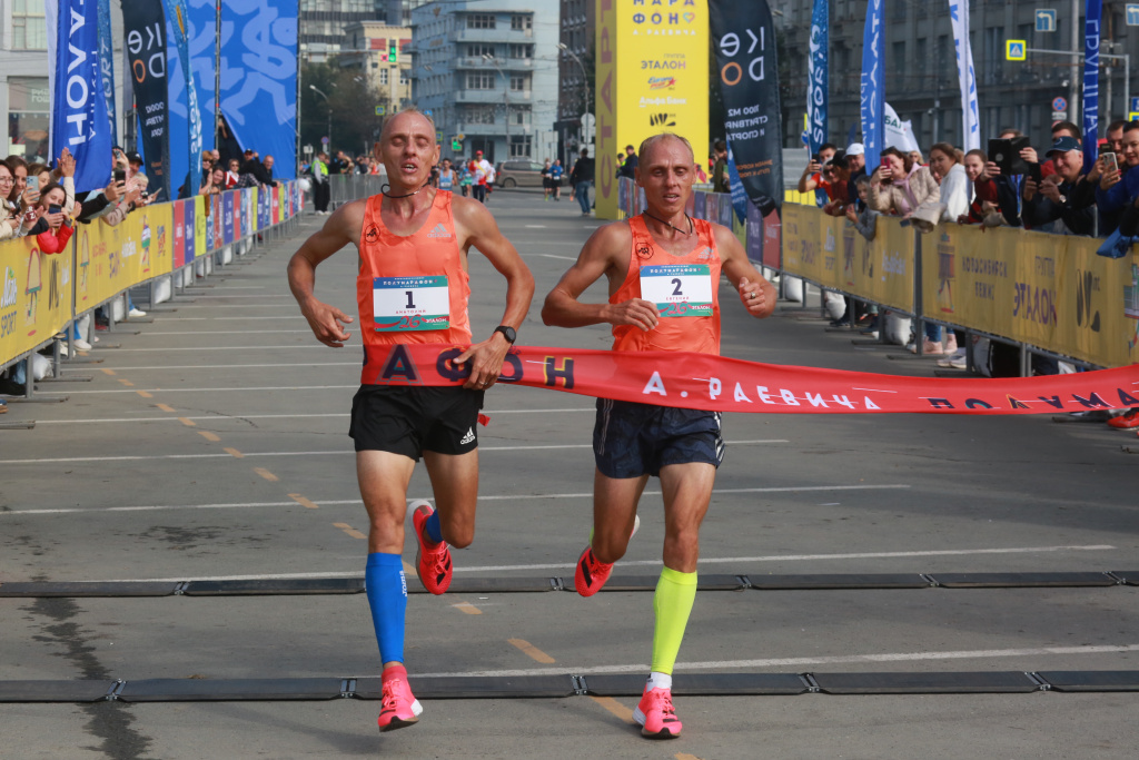 Час с небольшим – результат лучших спортсменов на полумарафоне. В этом году победителями снова стали легендарные легкоатлеты из Кемеровской области Анатолий и Евгений Рыбаковы.Братья-близнецы финишировали нога в ногу с результатом 1 час 3 минуты 41 секунда.