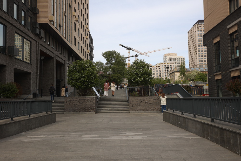 «Позже, когда я начал заниматься девелопментом, мне на глаза попался этот кусок земли в продаже. Я сразу же его купил, потому что у меня в голове уже всё сложилось. Я представил себе этот район, этот мостик, видел горожан, гуляющих по набережной и заходящих сюда. Мы пригласили талантливых новосибирских архитекторов, инженеров, подрядчиков и в очень короткие сроки предъявили городу этот проект — сити-квартал „Инские холмы“. Название пошло от локации — это большой район между Большевистской и Инской рядом со станцией метро „Речной вокзал“. „Сити“ вносит в название стиль большого, динамичного города, который для этой площадки был недоступен», — рассказал глава строительной компании.