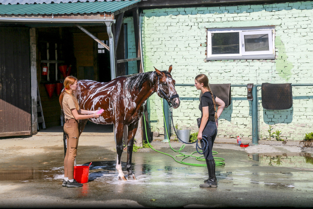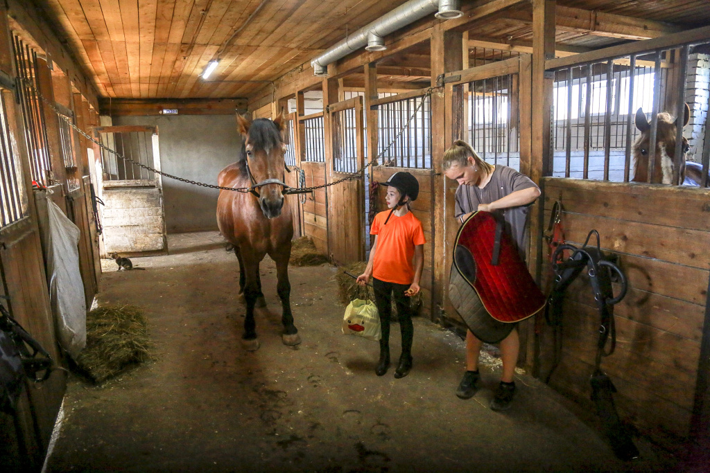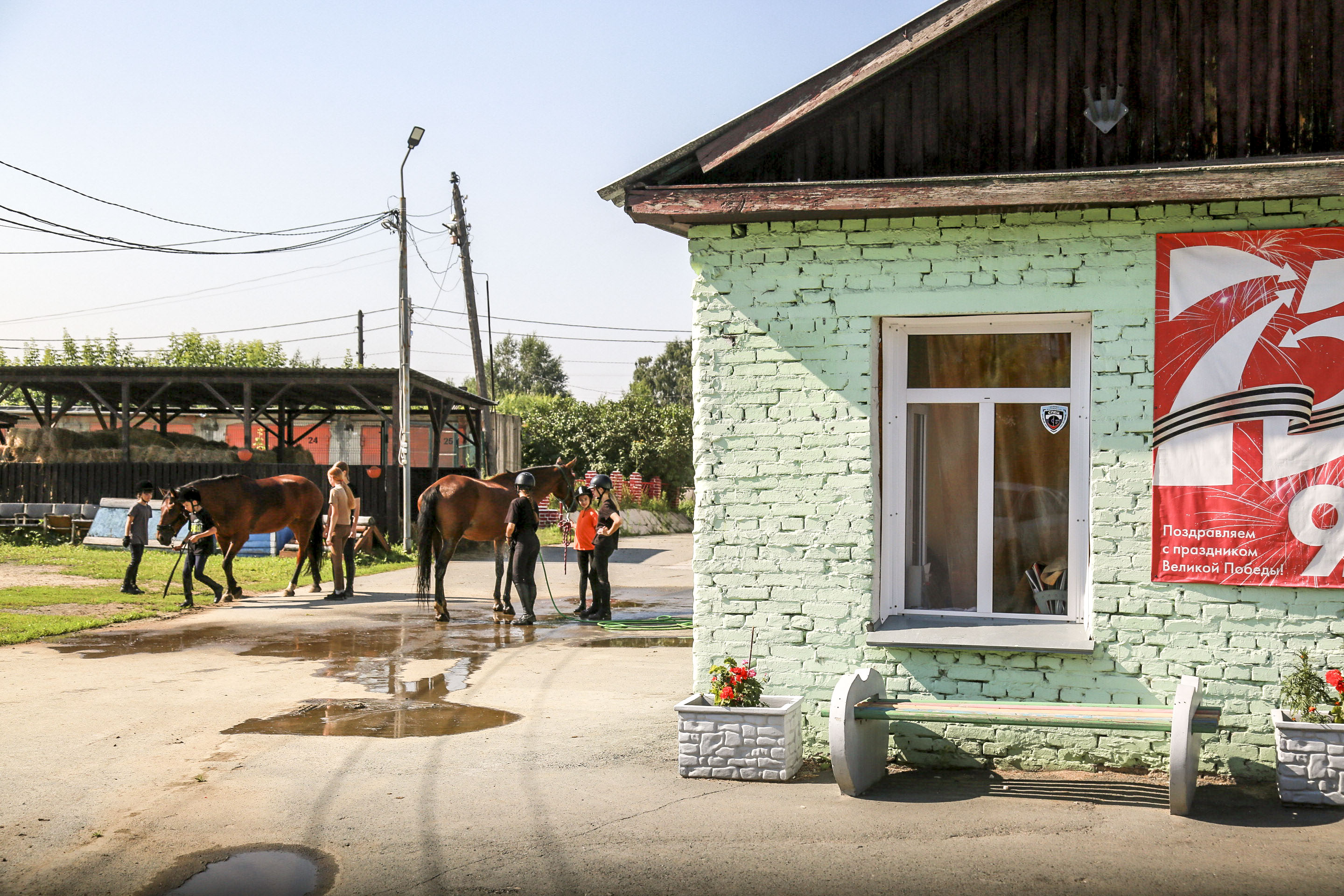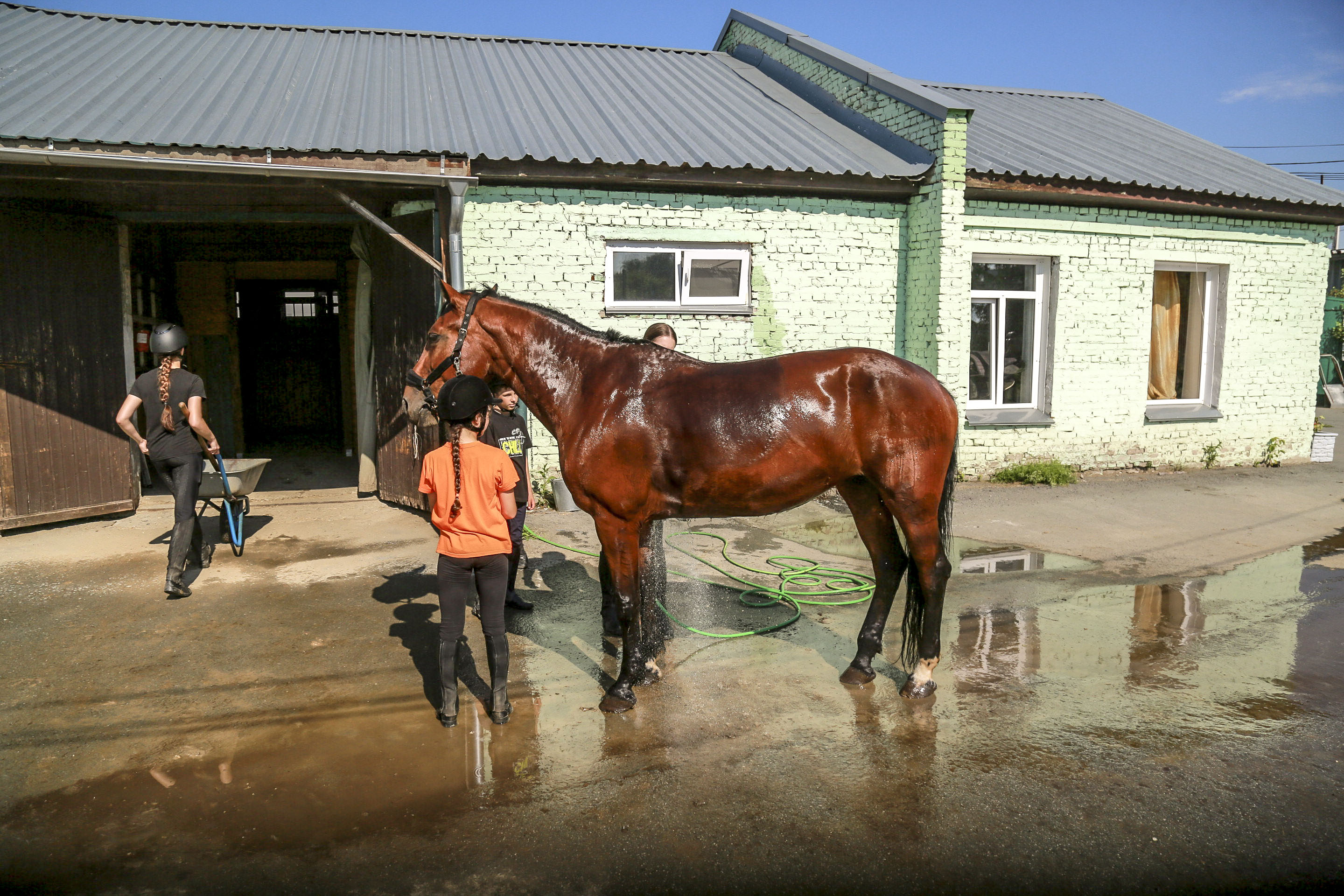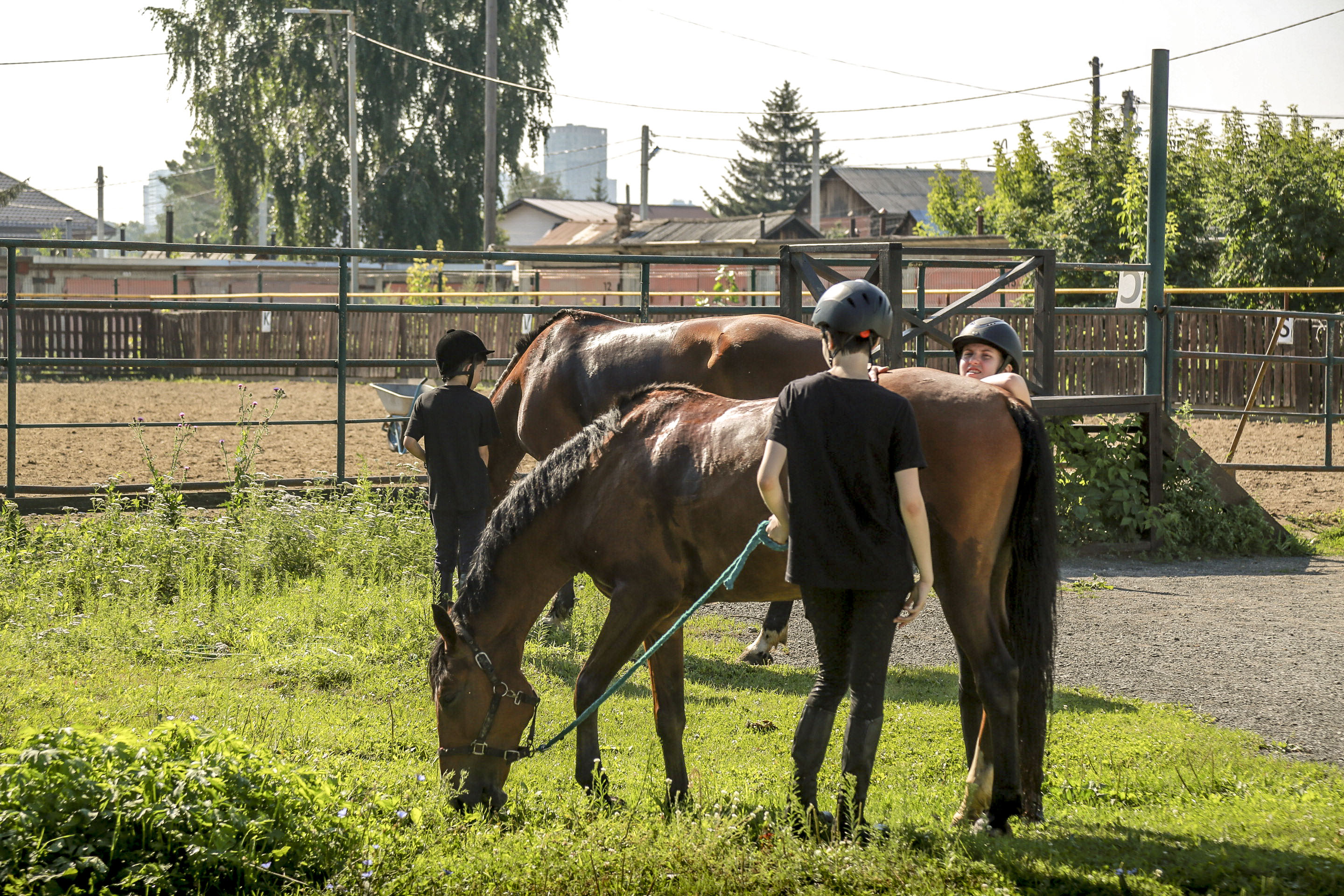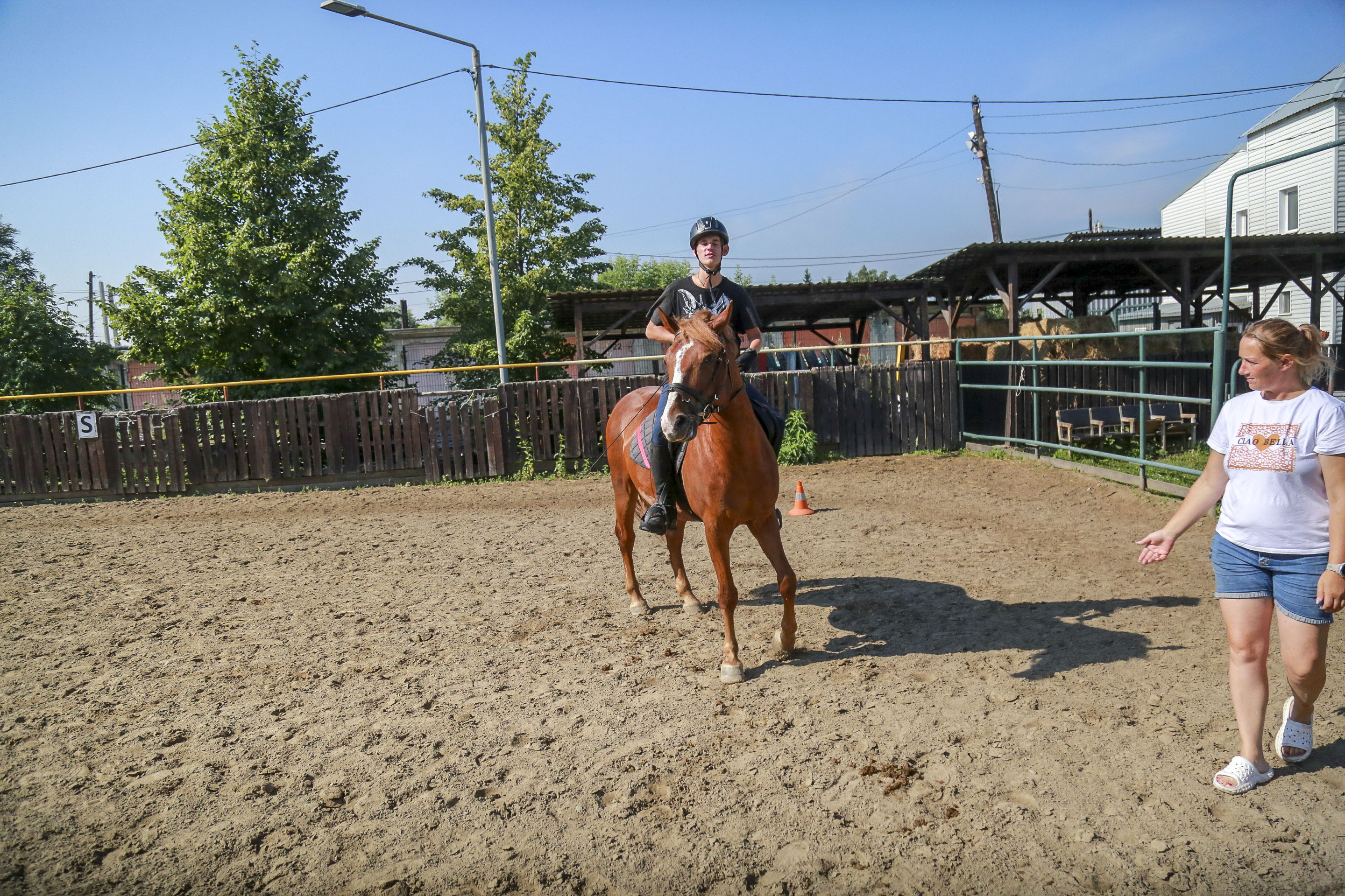 Анастасия Юдинцева рассказала, что сейчас на базе живут десять лошадей и два пони. Здесь в том числе тренируются детские и подростковые группы по адаптивному конному спорту. В трёх группах занимается 27 человек, на иппотерапию приходят 30–40. Это аутисты, дети с синдромом Дауна, ДЦП, неврологическими проблемами без диагнозов, не стабильные психологически, не реагирующие на речь, не смотрящие в глаза.