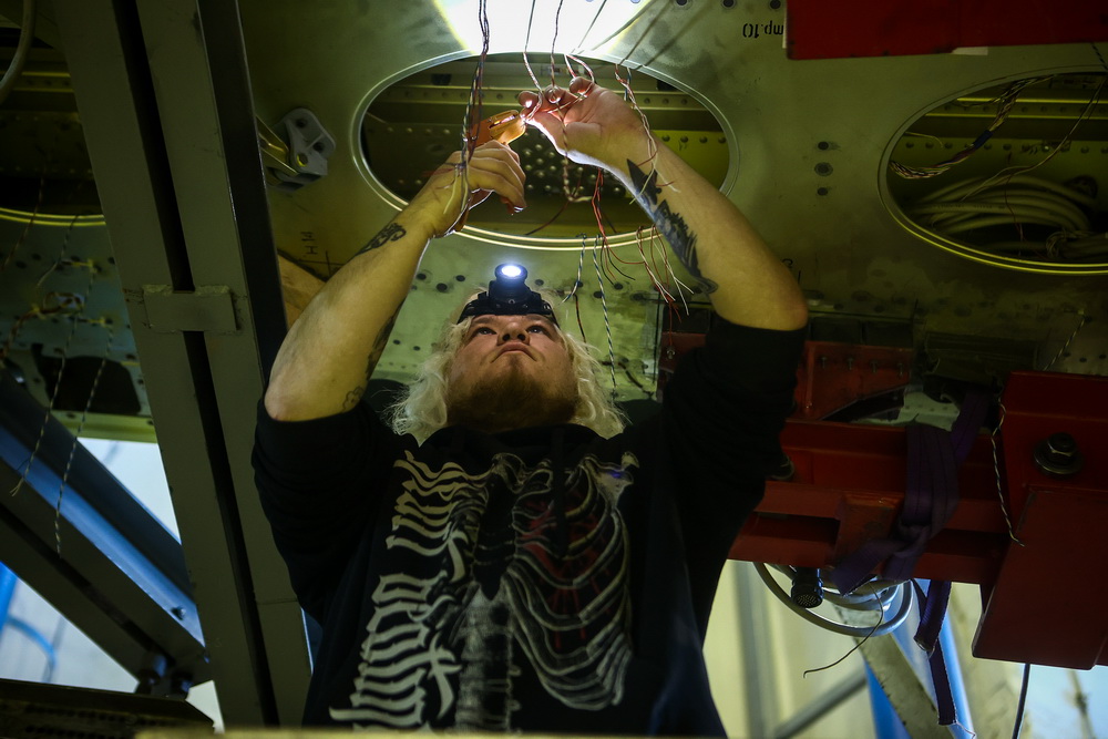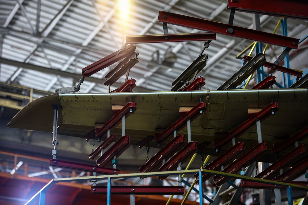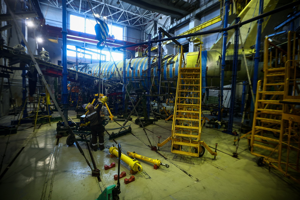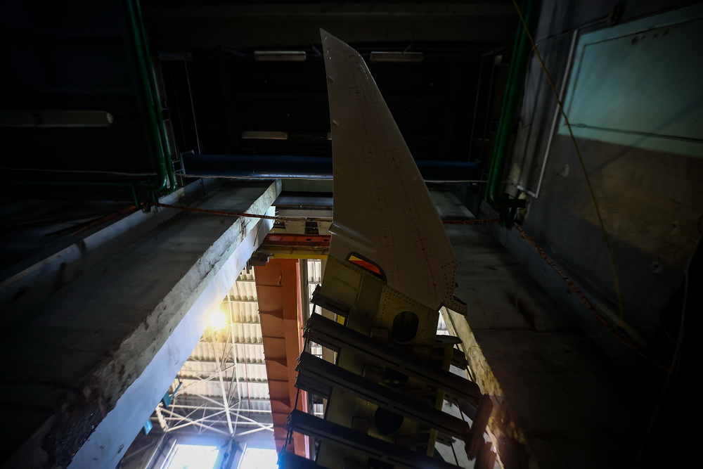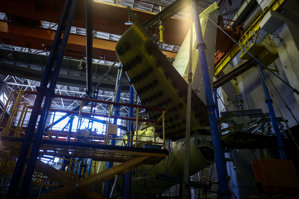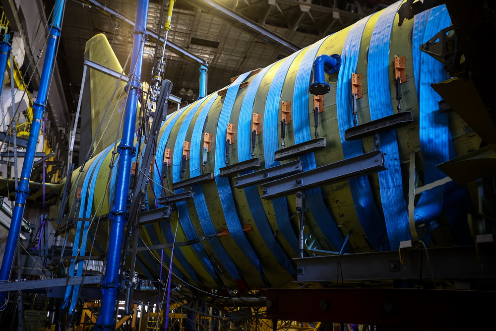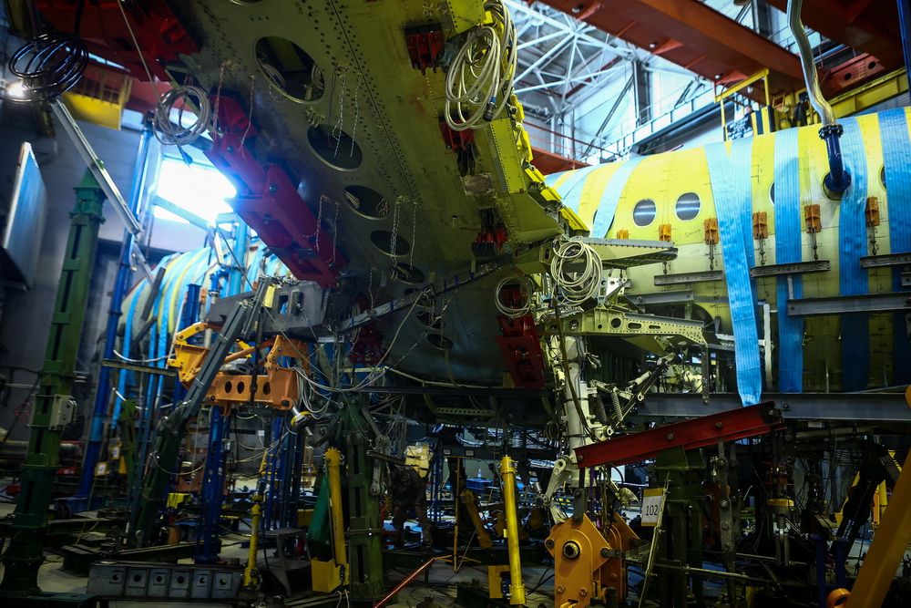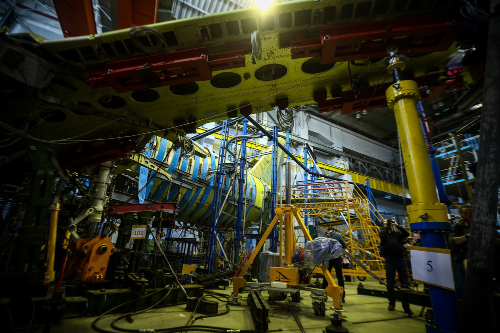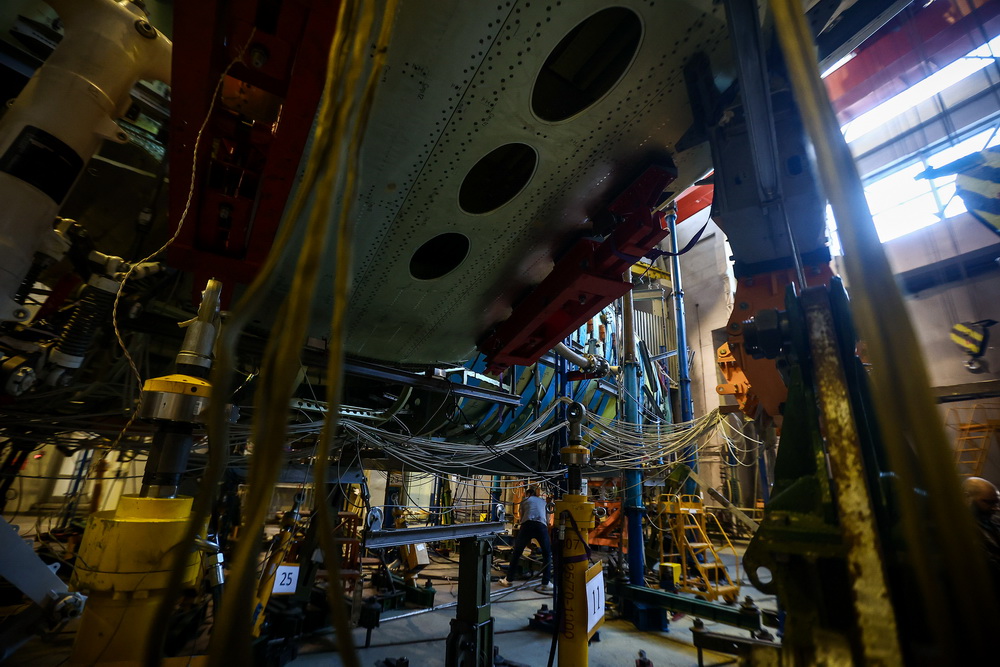 «На статической машине, которая находится в зале, мы должны приложить максимальные нагрузки, которые были заложены в этот самолёт. Могут появиться какие-то разрушения в конструкции. Иногда такие случаи бывают, но современные системы мониторинга, диагностика конструкции позволяют нам избежать каких-то катастрофических разрушений в процессе испытаний.
