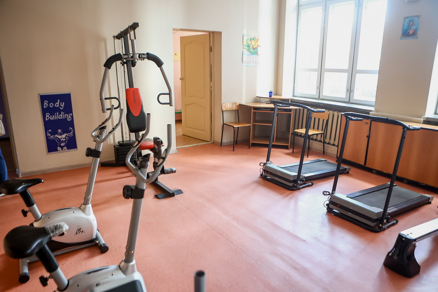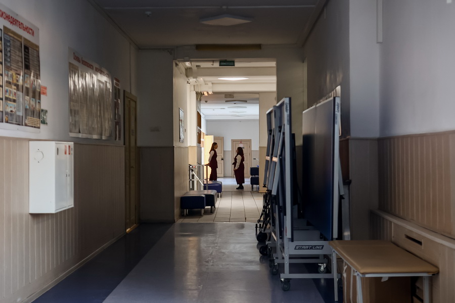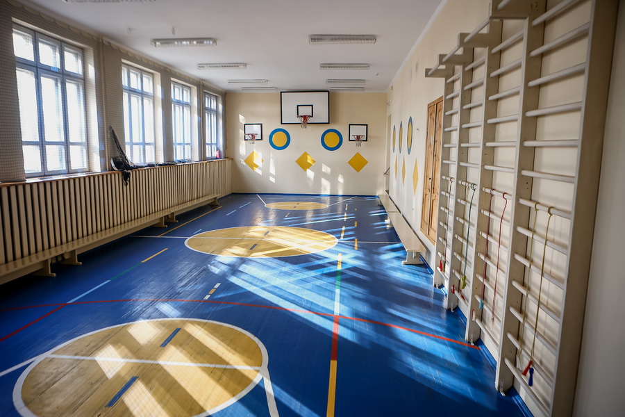 Занимаются школьники тхэквондо, плаванием, художественной гимнастикой и настольным теннисом. Столы для него стоят в коридоре рядом со спортзалом.
