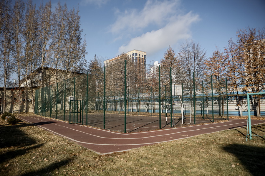 В здании имеется спортзал, а на школьной территории, кроме уютного сквера с цветниками, оборудованы площадка с тренажёрами, игровая зона для волейбола, баскетбола и мини-футбола.