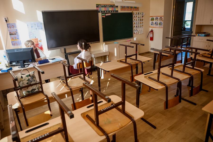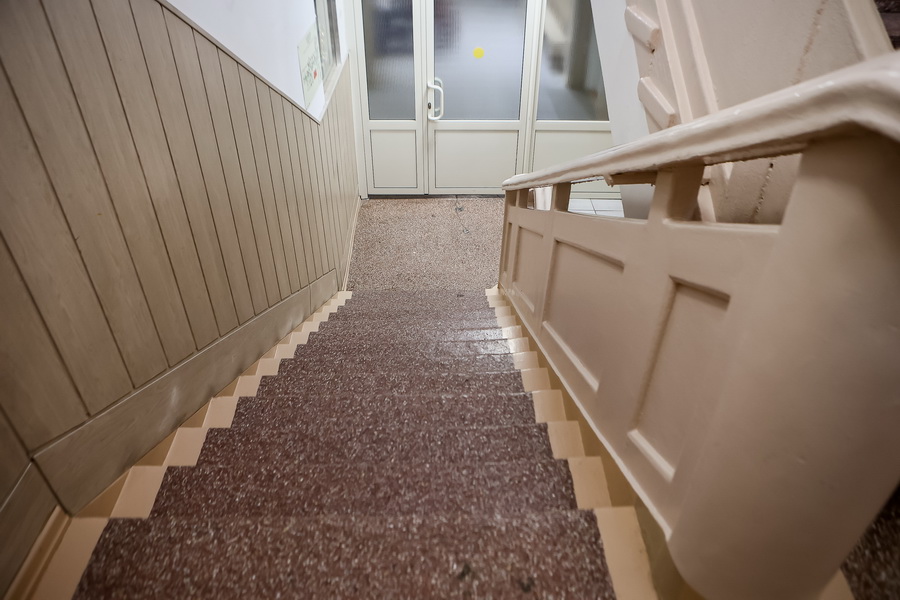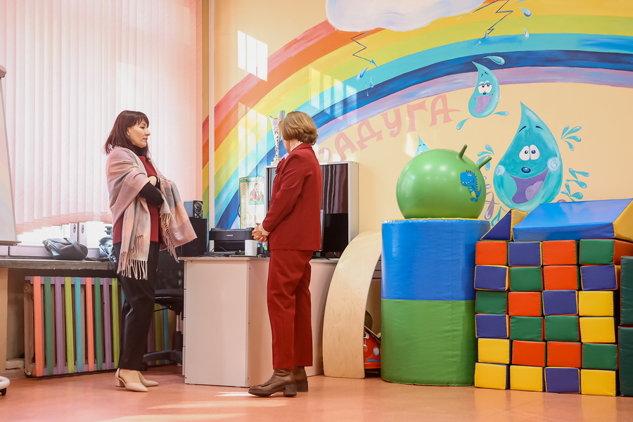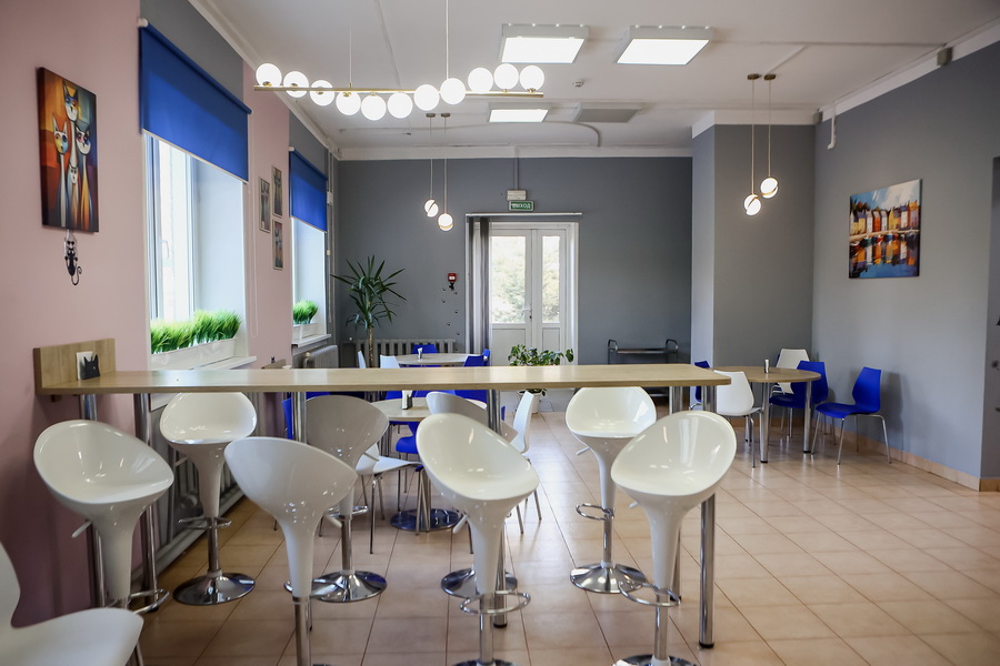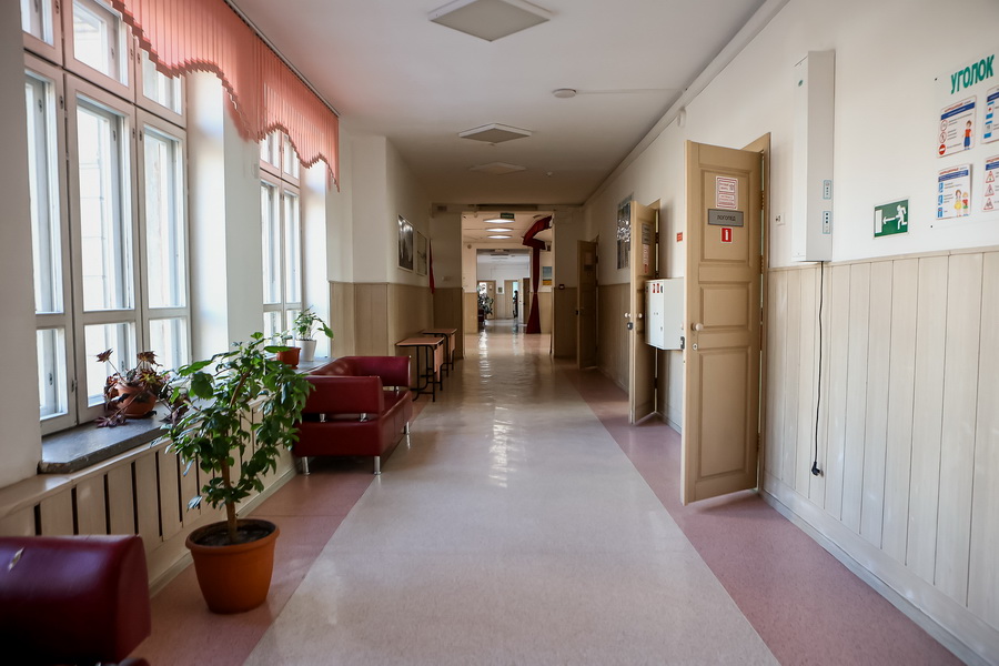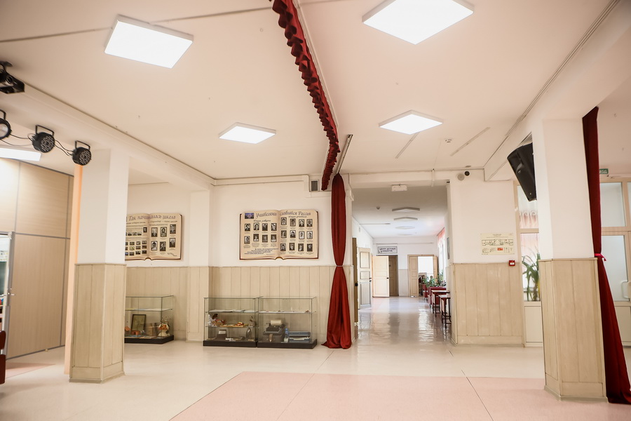 Классы в школе небольшие. По нормативу в одном должно быть 12 учеников, но по факту — 16. Первоначально в здании были предусмотрены просторные кабинеты. Во время капремонта их поделили на компактные — под норматив коррекционной школы. Актового зала, к сожалению, нет. Общие собрания и мероприятия проводят в фойе на втором этаже. Здесь смонтировали звуковую аппаратуру и проектор.