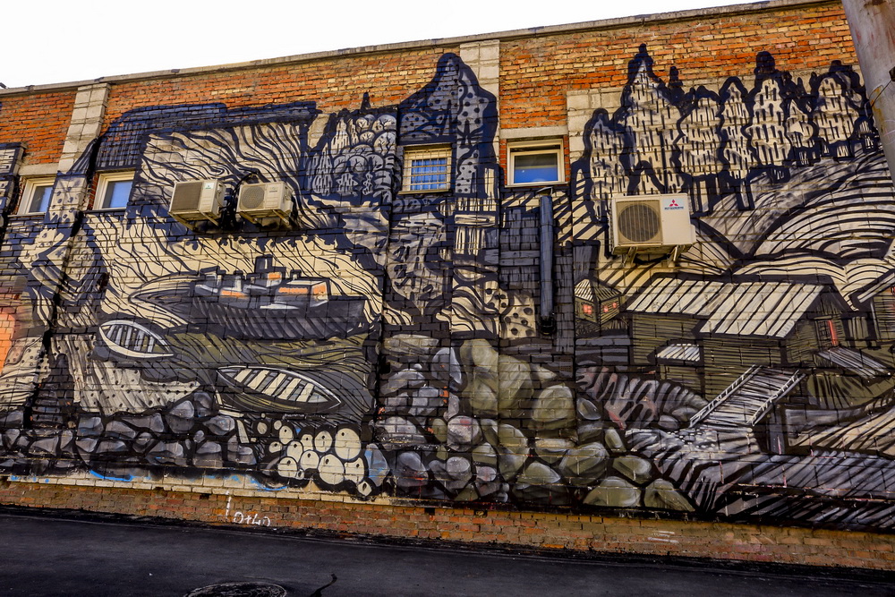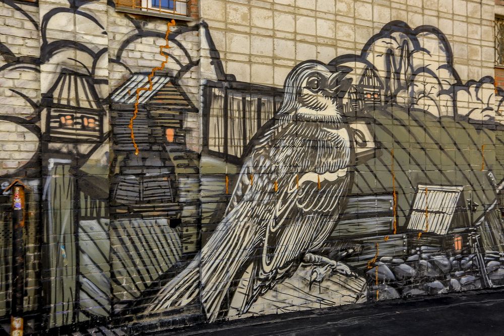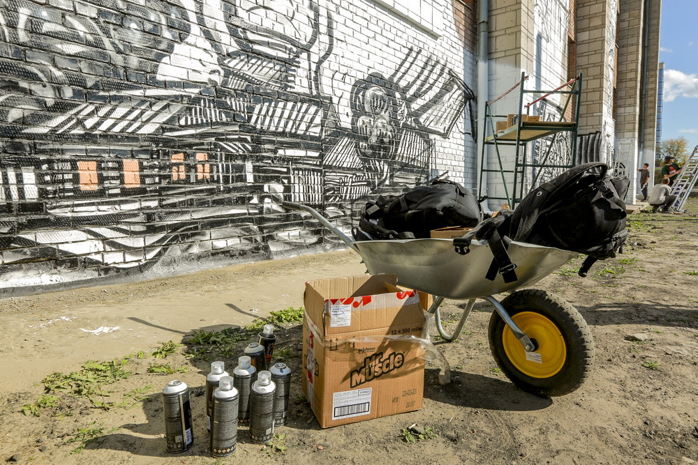 Огромный мурал об истории Новосибирска рисуют на Серебренниковской