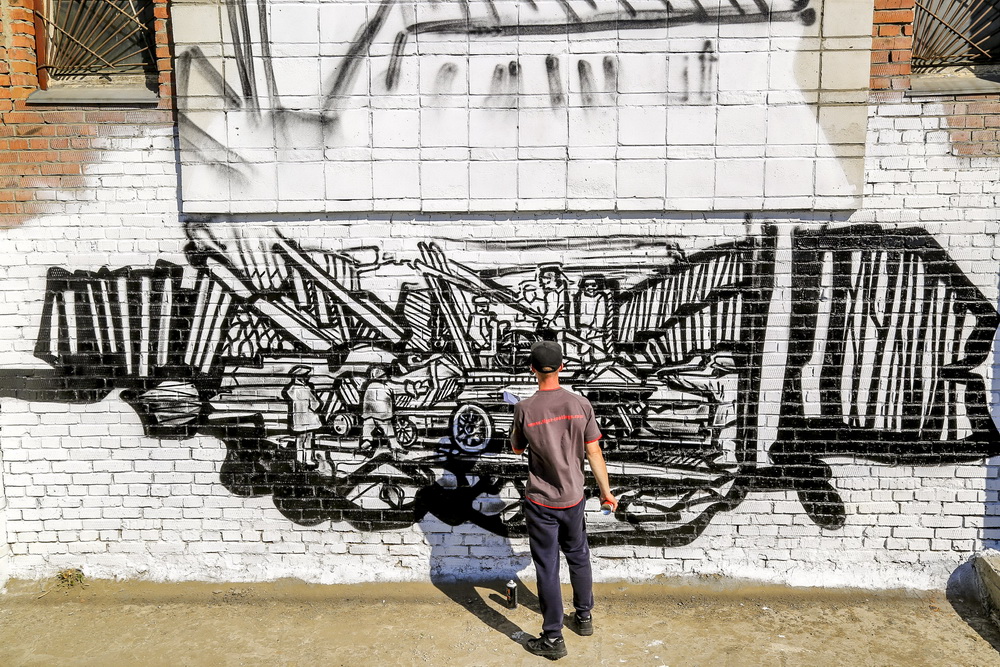 В Томске есть автор, в чьём стиле используются постоянно наличники, любит он рисовать деревянную архитектуру. Сразу родилась идея позвать его, чтобы он на основе исторических фотографий этого места сделал эскиз и сделал роспись, посвящённую истории нашего города», — рассказывает куратор галереи уличного искусства «100 квадратов» Роман Есин.